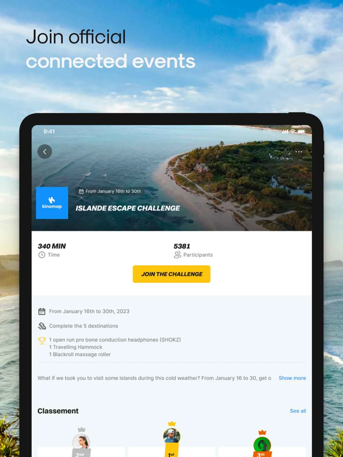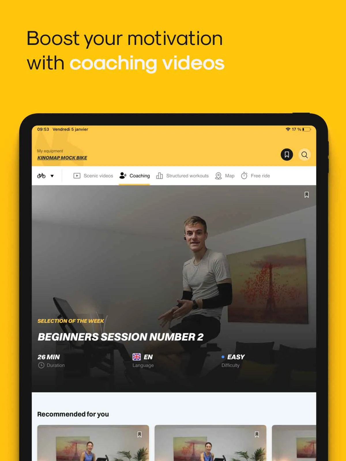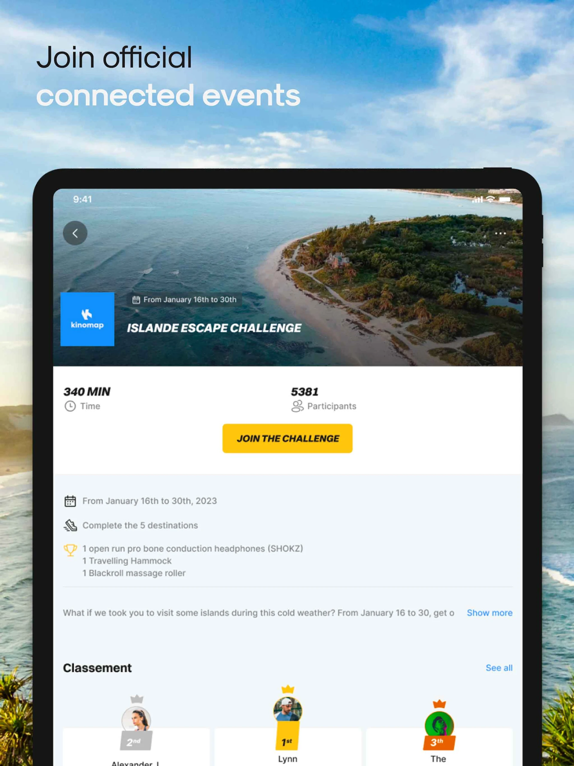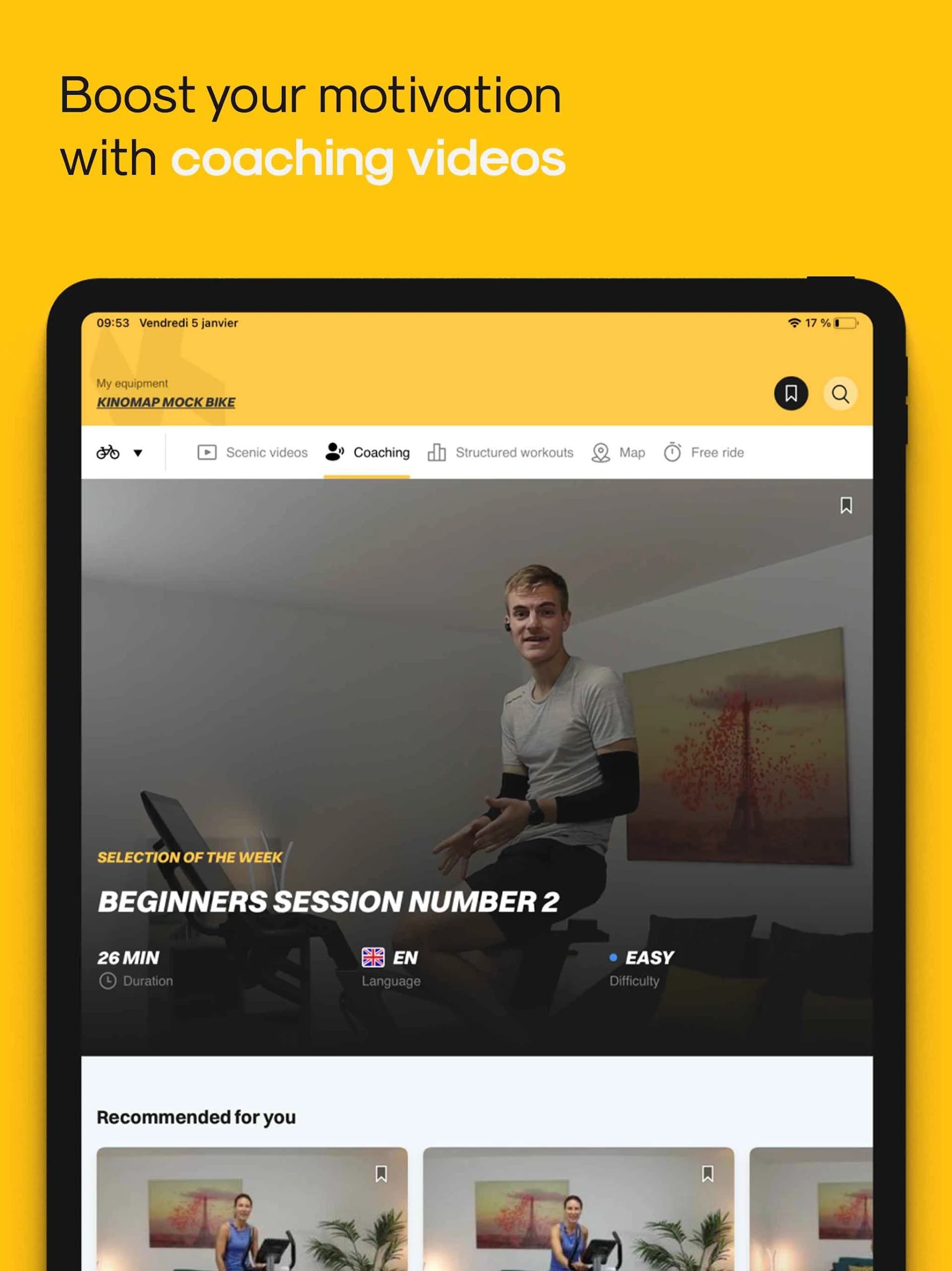 - Sync your Kinomap activities with partner apps like Strava and adidas Running.
