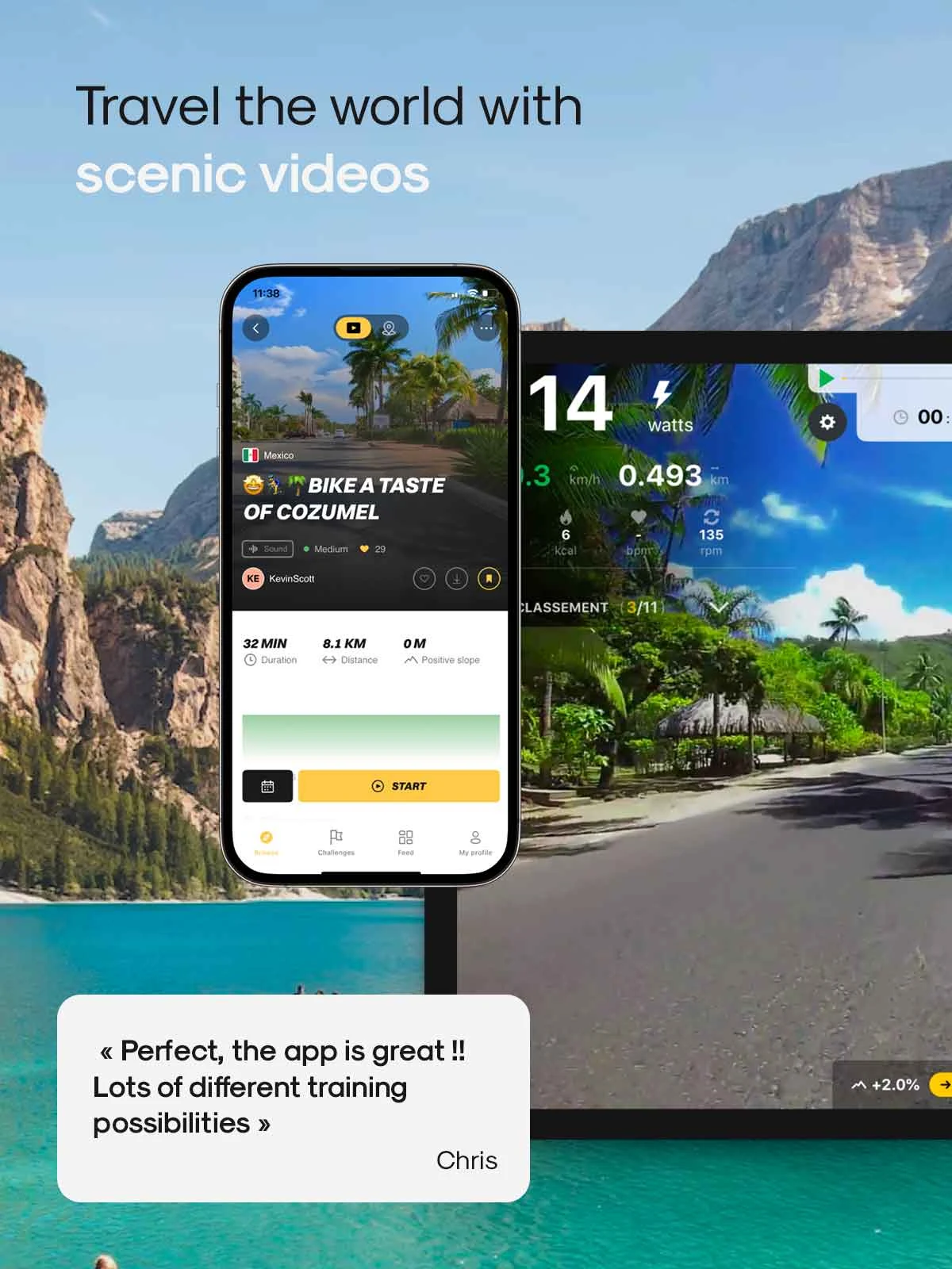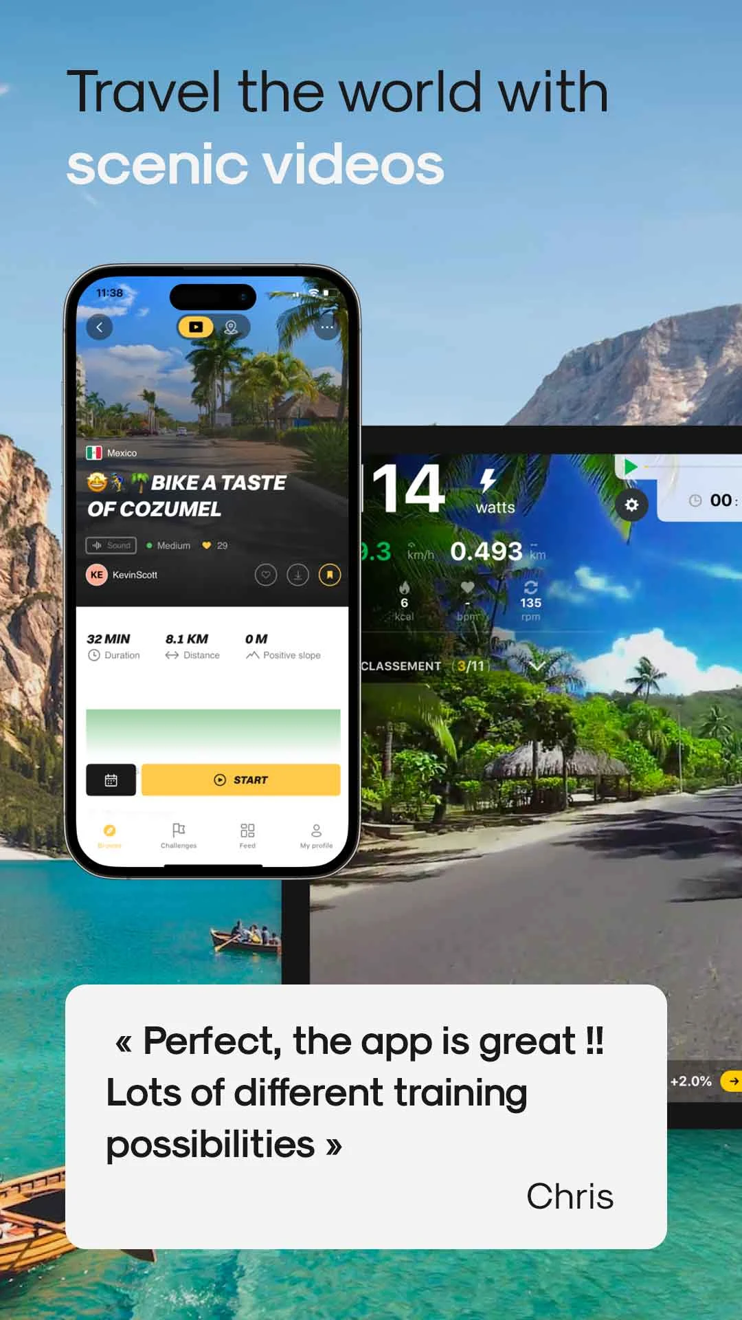 With a vast library of real-world videos, you can explore some of the most beautiful stages across the globe. Experience scenic paths and exotic scenery, or challenge yourself on more difficult courses.