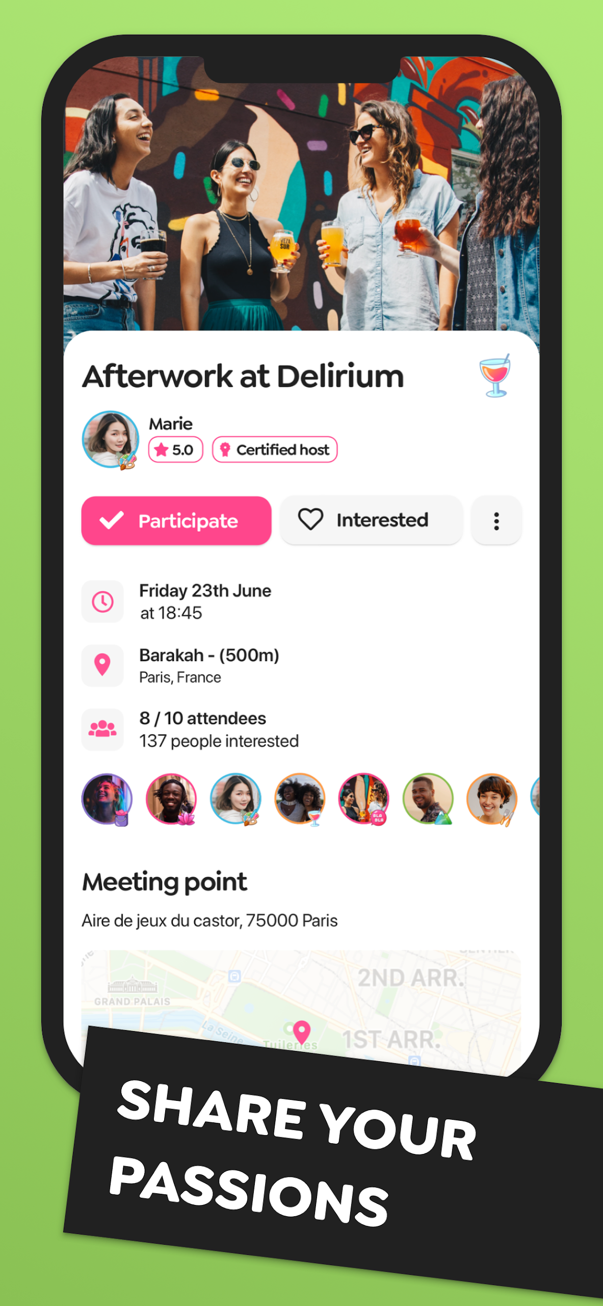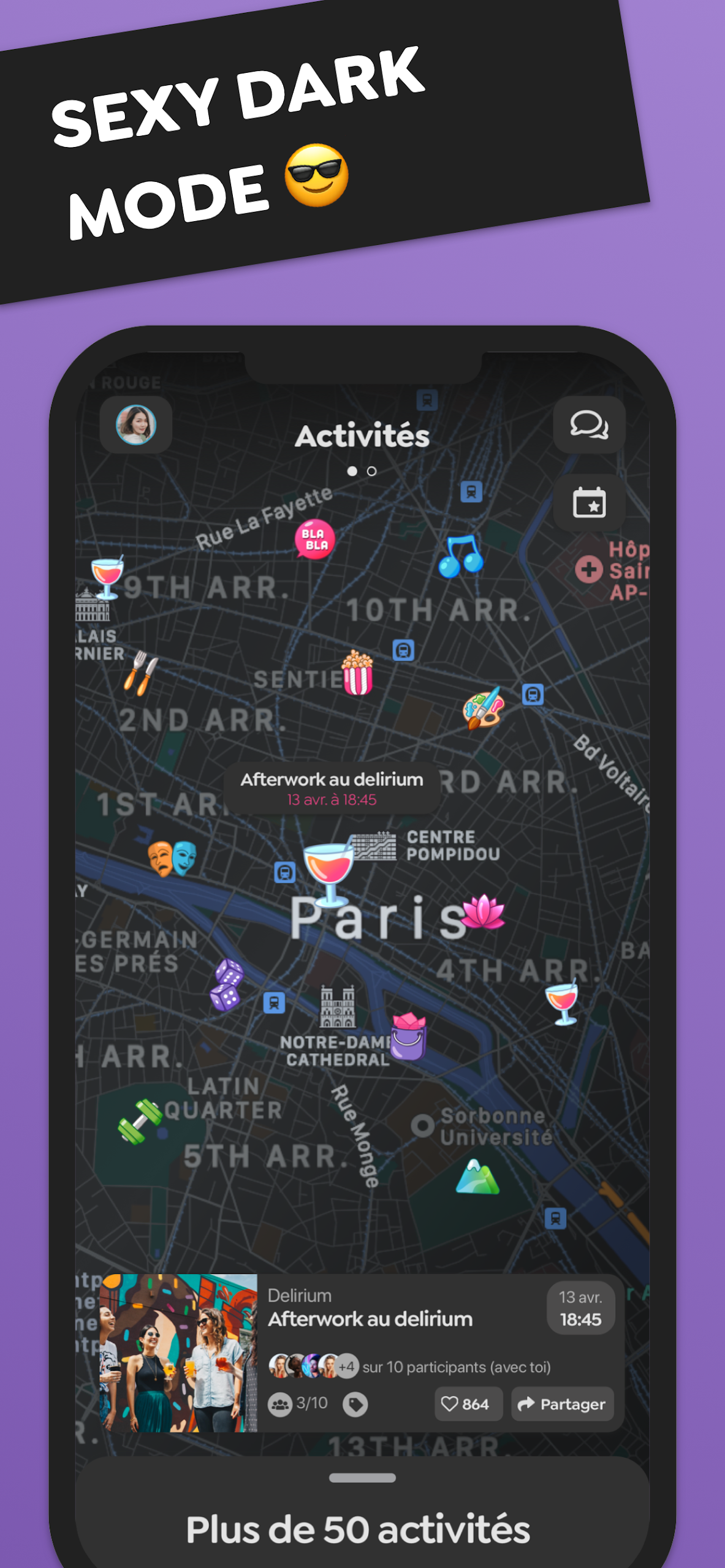 Connect with new friends and share your interests within your city, whether it’s Paris, Marseille, Lyon, Toulouse, or even Geneva in Switzerland and Brussels in Belgium.
