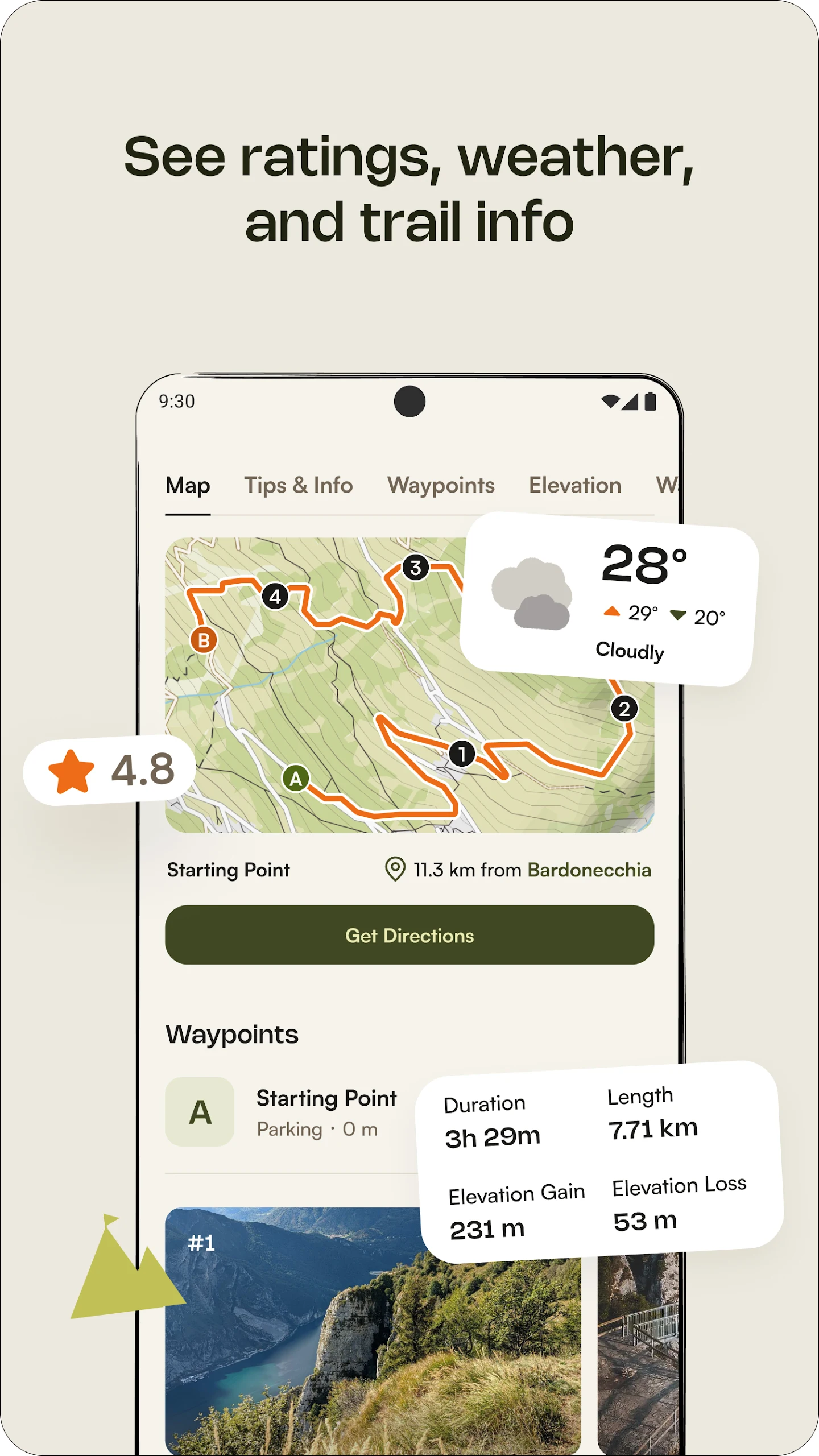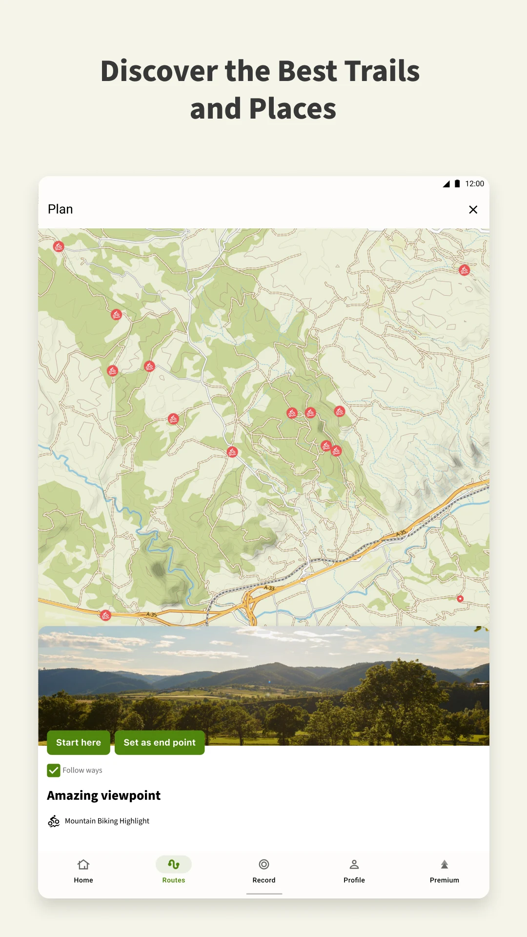 Quickly decide on your next adventure destination by viewing trail Highlights on the map. Discover peaks, parks, points of interest, single tracks, mountain biking trails, hikes, and more recommended by fellow users. Share your own favorite spots with the community, inspiring others to explore them as well.