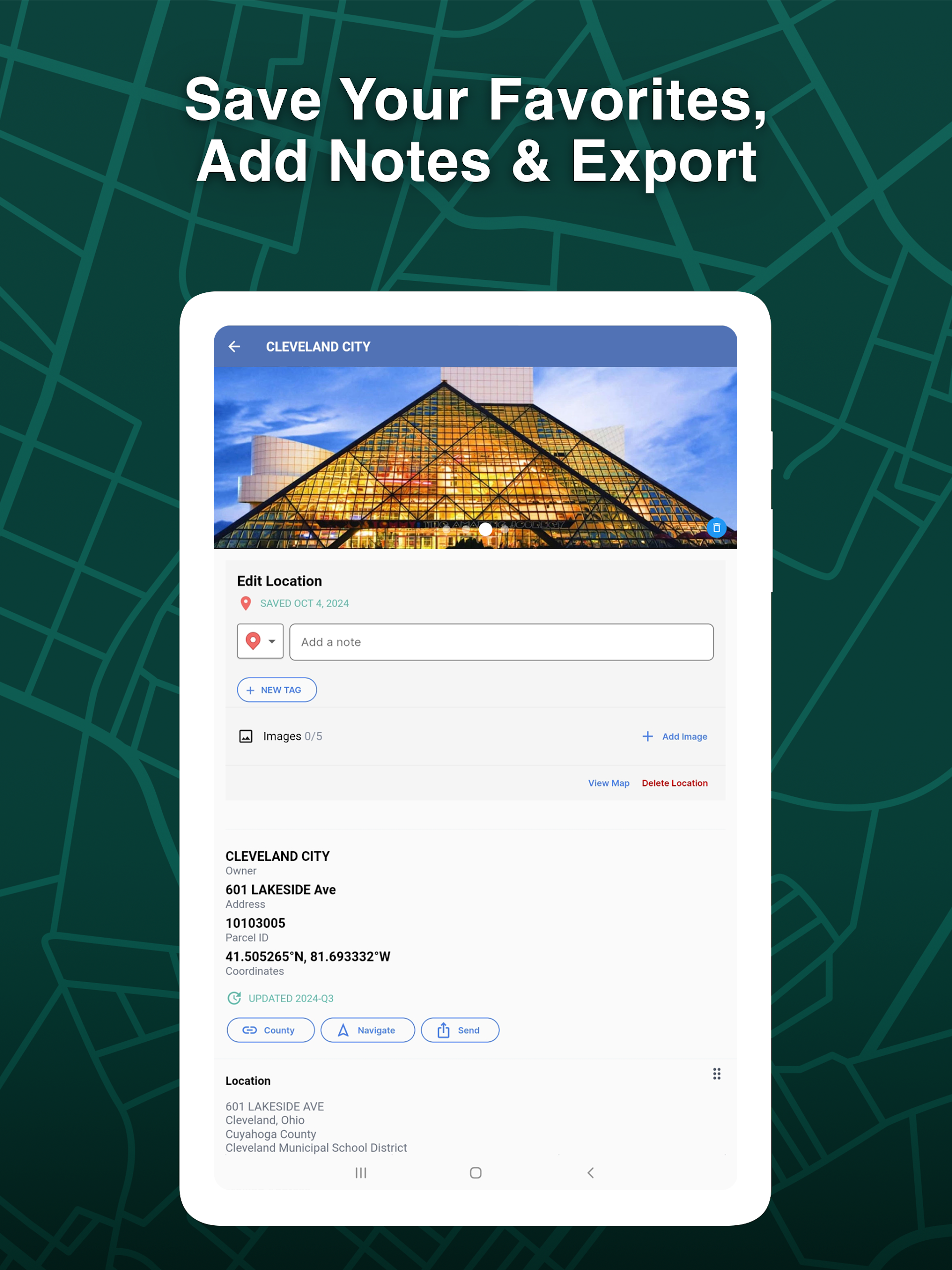 Utilize GPS technology to locate yourself precisely, obtain vital parcel information, and determine property lines from any location. You can easily look up properties by owner, address, or parcel number, and by hovering over any property, you can immediately view relevant details. Additionally, LandGlide enables you to save favorite locations, make notes, upload photos taken either in the field or office to specific properties, and export all necessary property data. Searching for a property or home has never been more convenient when using LandGlide across any device.