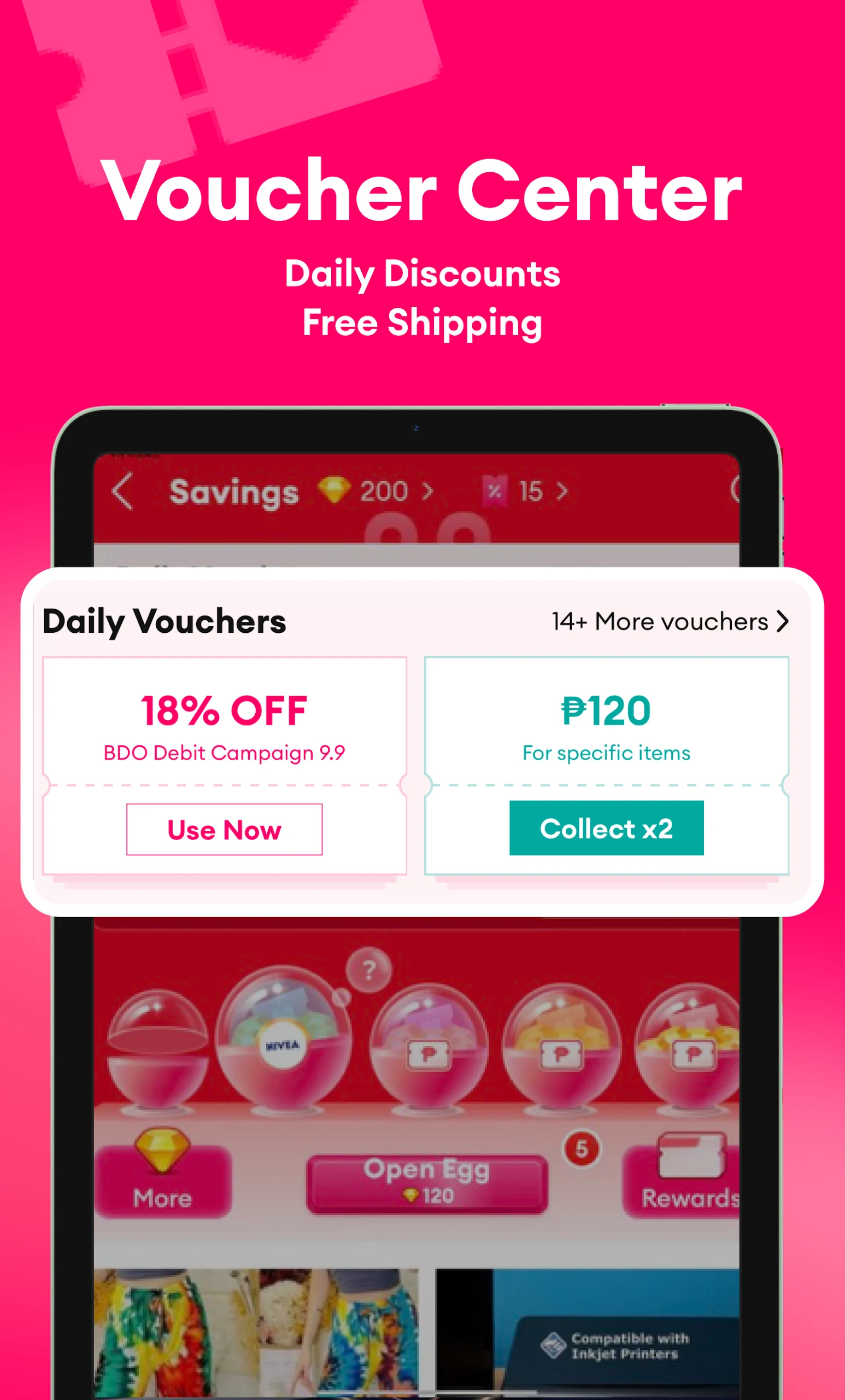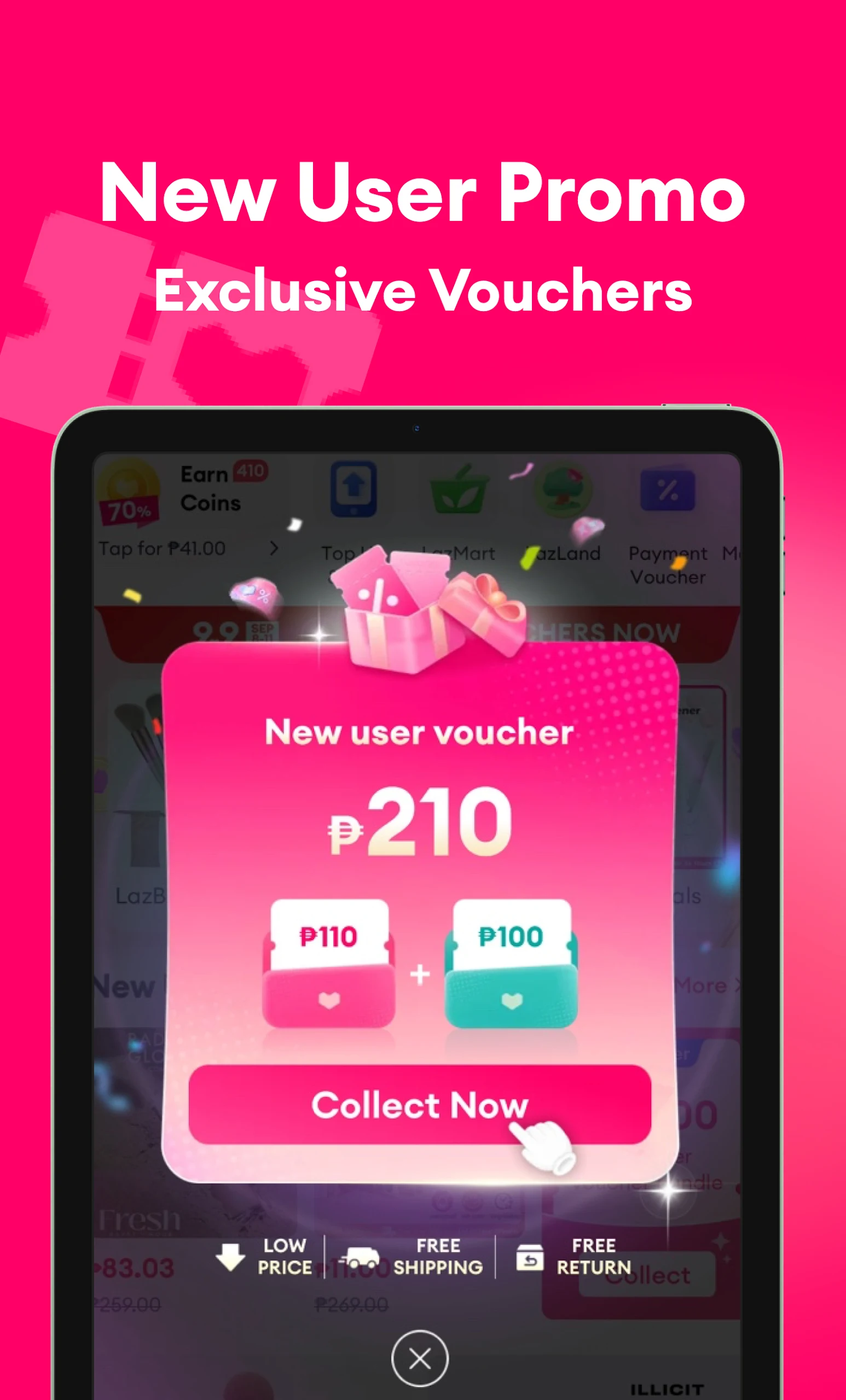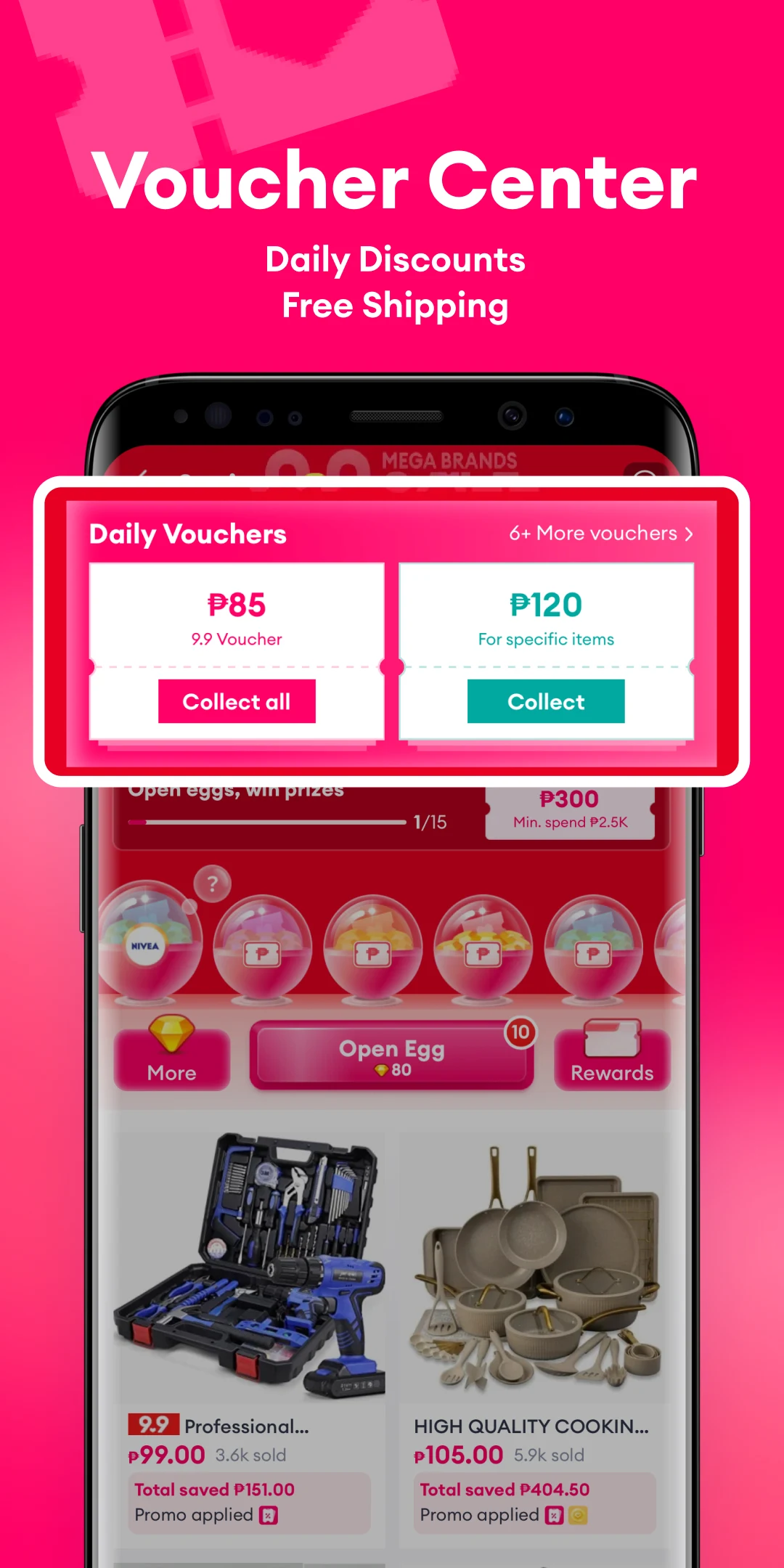 Receive exclusive discount vouchers on your first purchase, earn coins by daily check-ins, and collect vouchers from both Lazada and Sellers whenever you use the app! *T&Cs Apply*