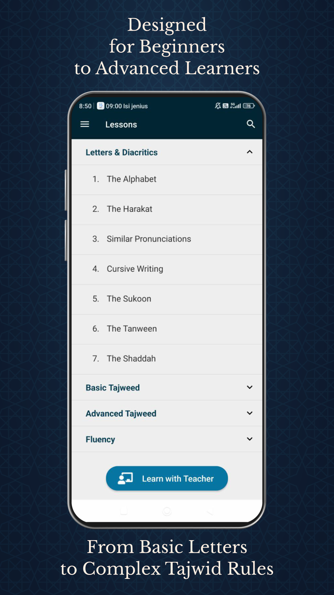 This all-inclusive app for learning the Quran is designed to teach you to recite the Sacred Text effectively. Thanks to modern technology, mastering the art of Quranic recitation with correct Tajweed has become more accessible and quicker than ever before!