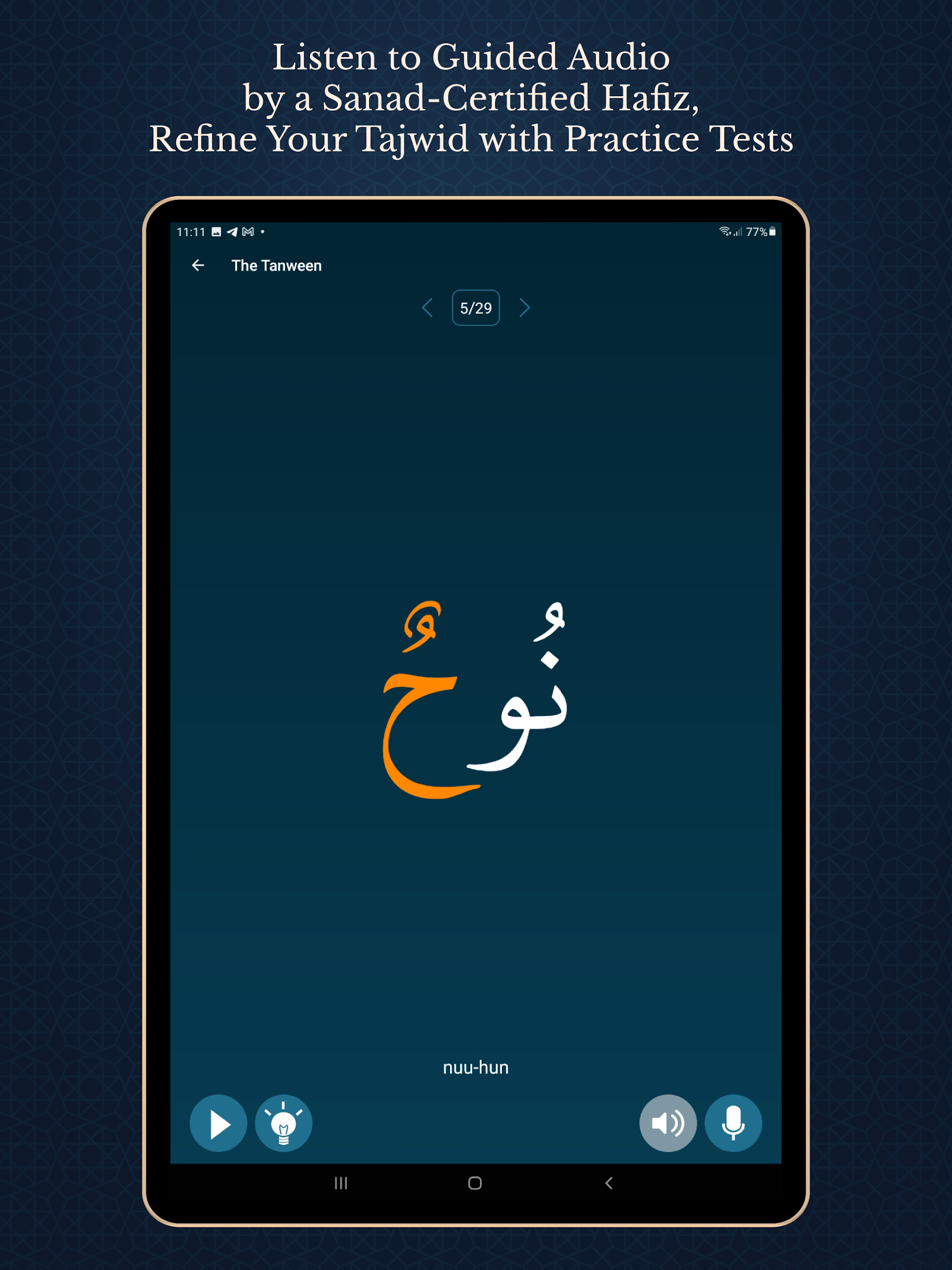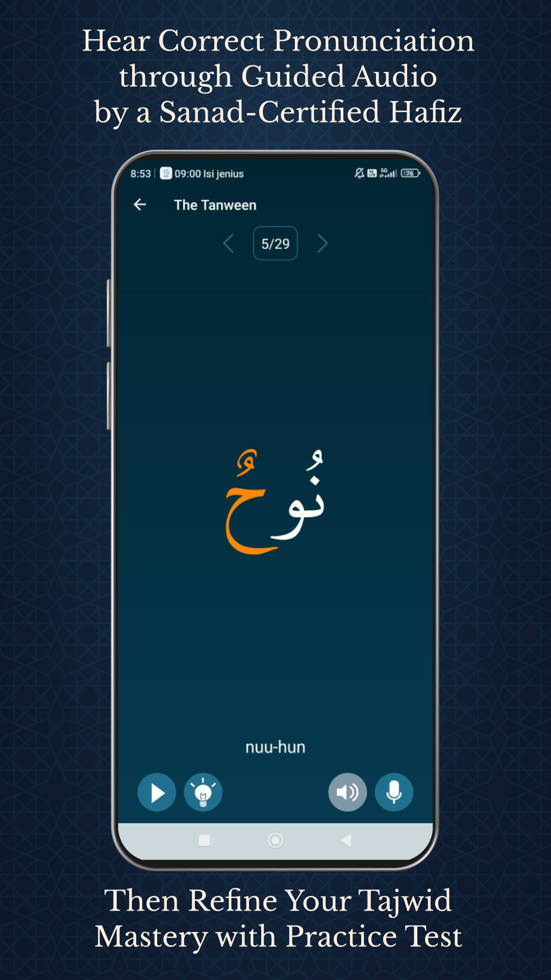 The Learn Quran Tajwid app allows for both guided study with a teacher and independent learning. Crafted with a strong emphasis on quality, our goal is to provide the Muslim community with the finest resources for learning how to recite the Quran accurately.