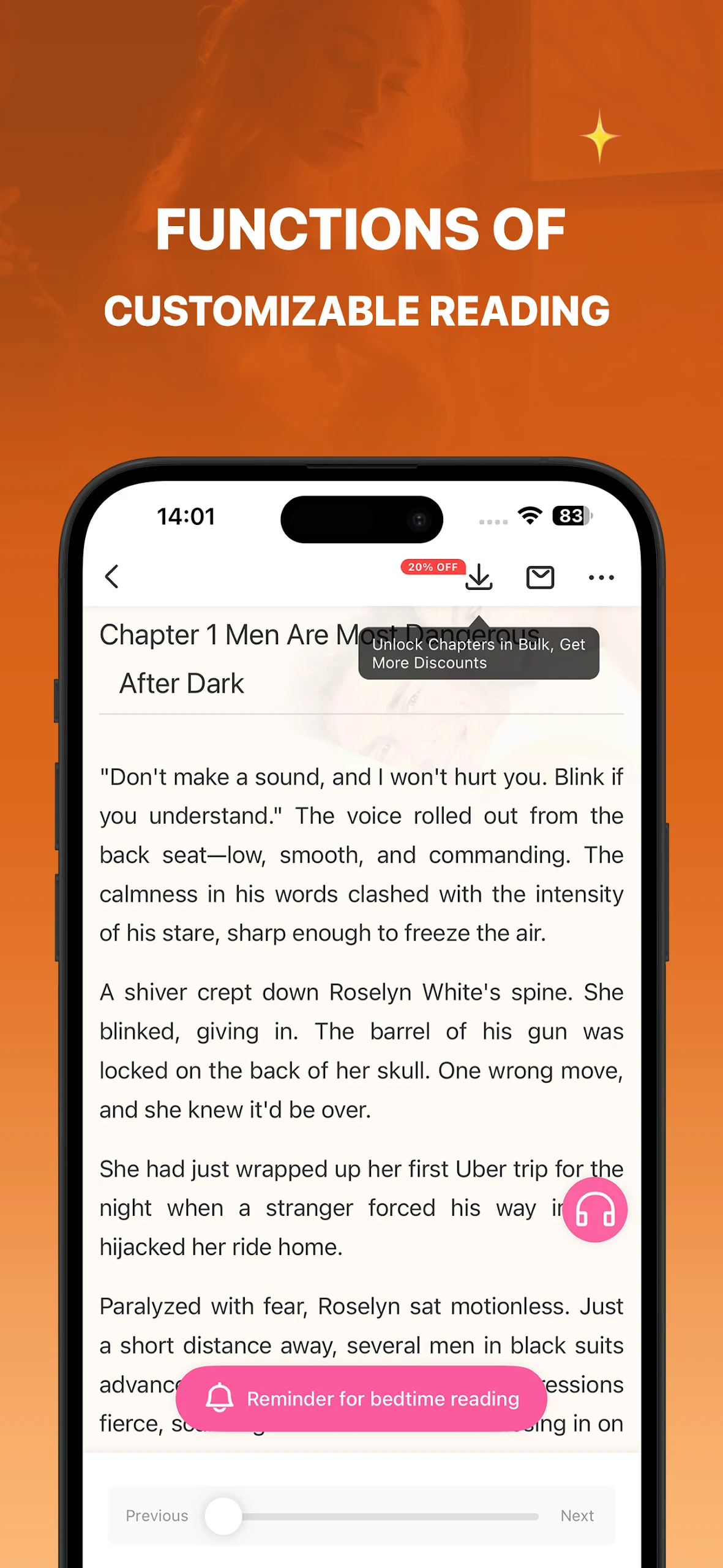 Easily modify text size, font, color, background, and other settings on the mobile book reader to optimize your reading experience.