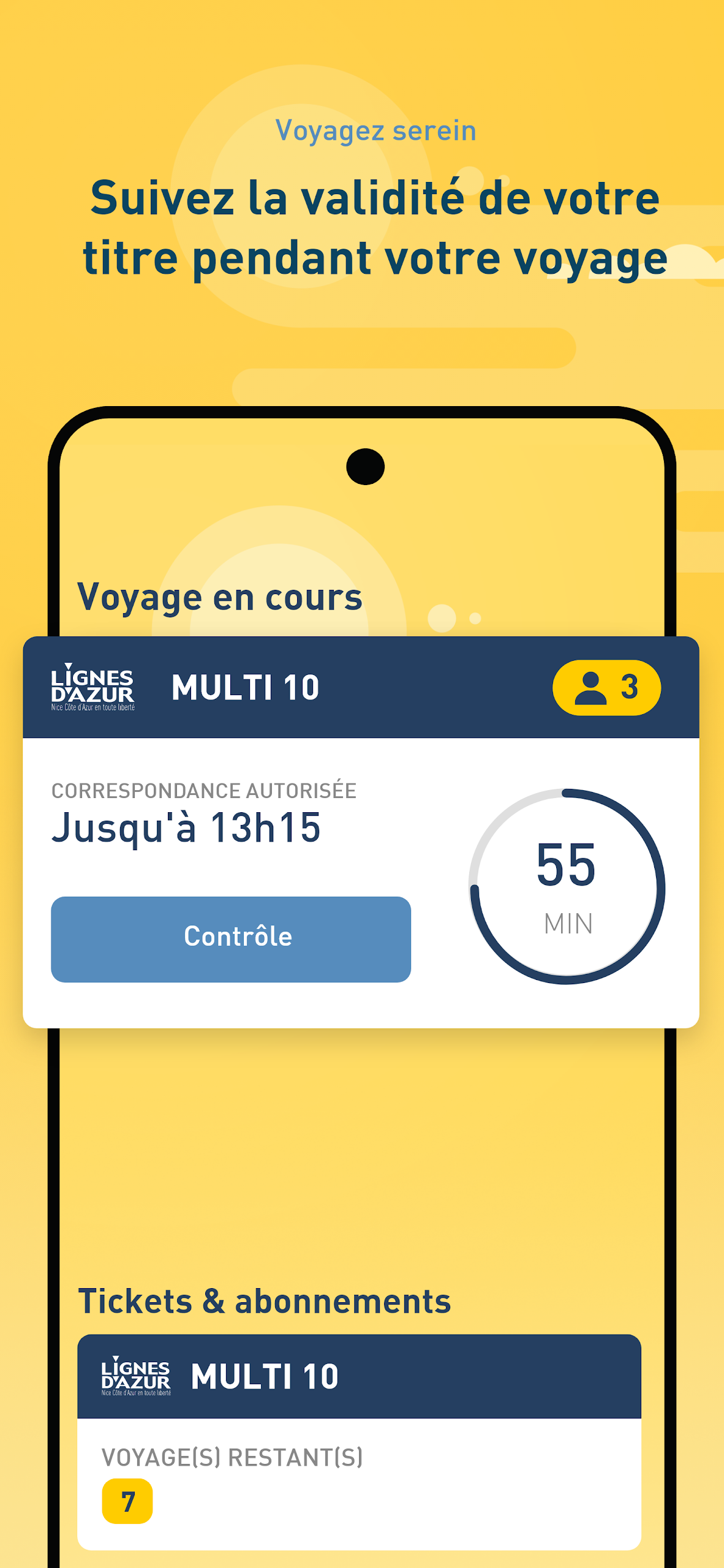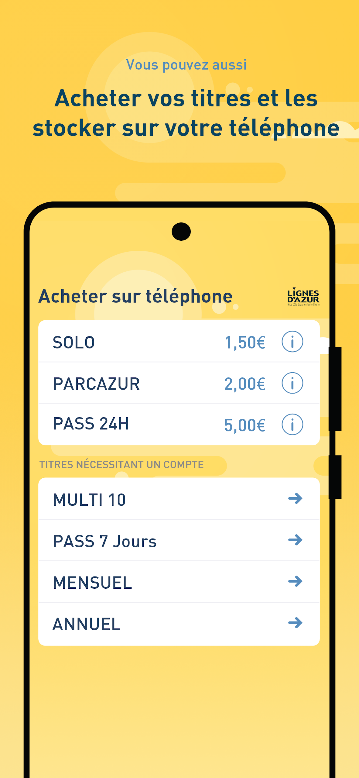 Your transport tickets are now saved within the “Carte Lignes d’Azur Mobile” extension. This means you won’t lose tickets even if you uninstall the Lignes d'Azur Tickets application. When you make your first purchase on your phone, you’ll receive guidance on installing this extension.
