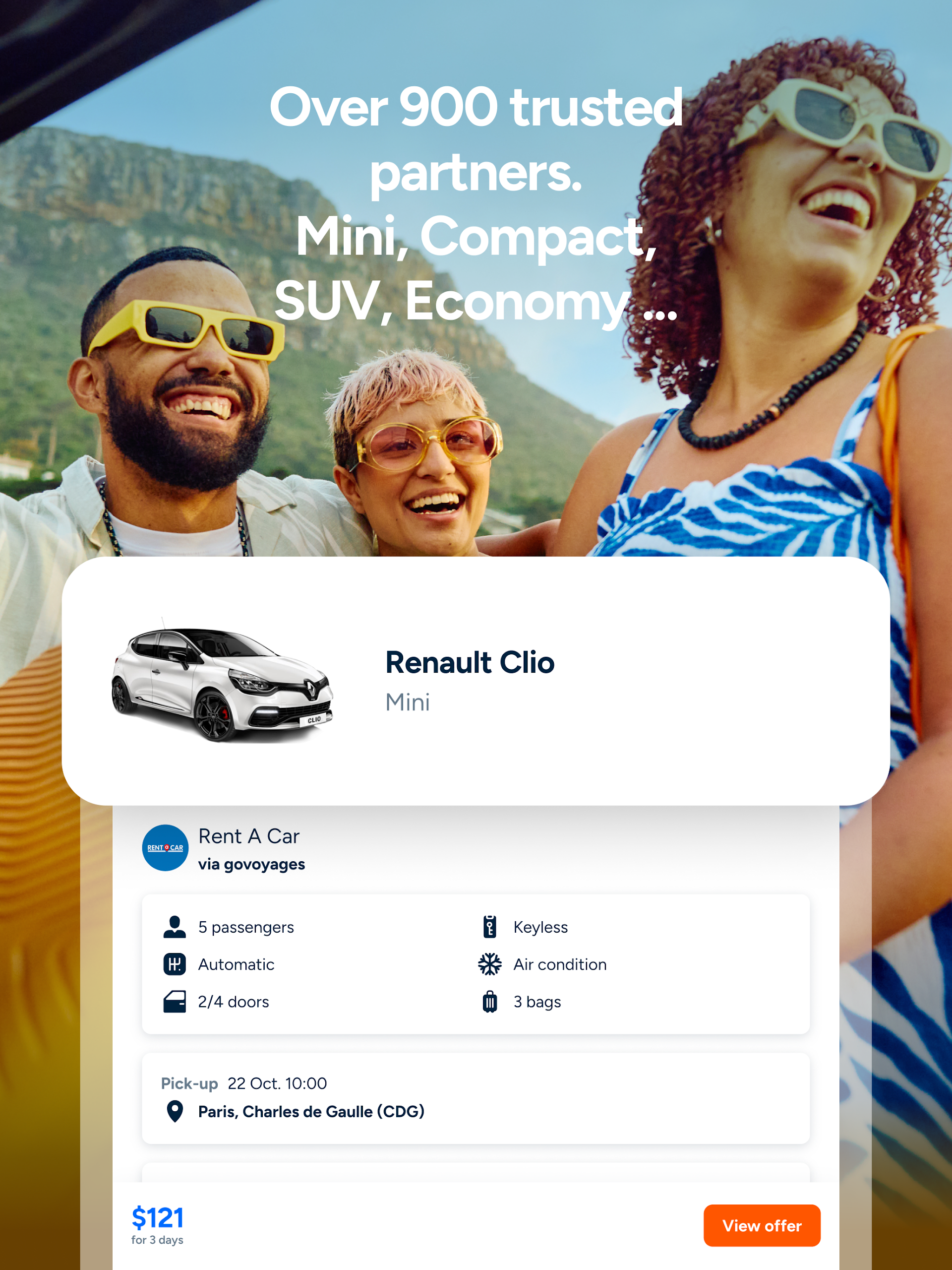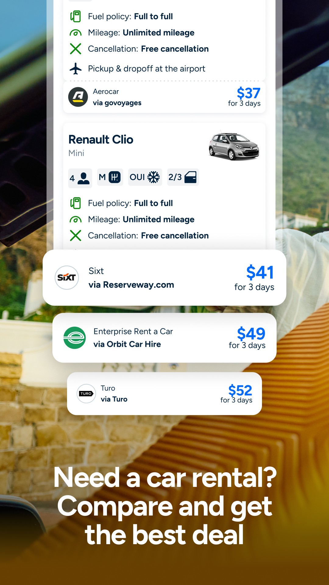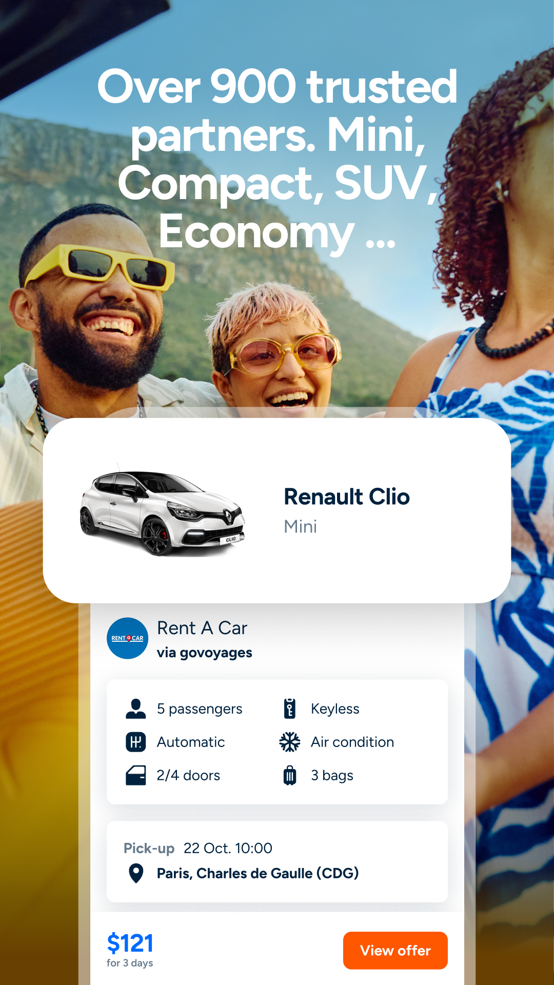 - Take advantage of innovative solutions like Virtuo and Getaround, integrated into your search results for convenient car rental management directly from your smartphone.