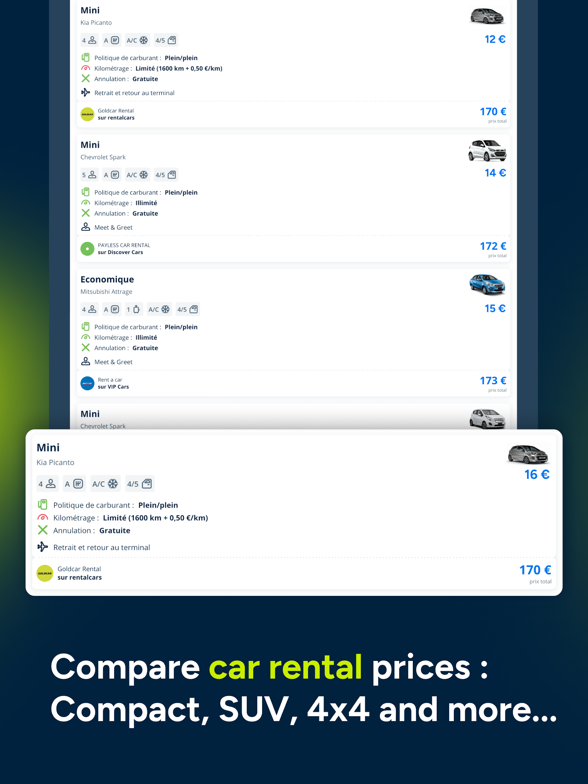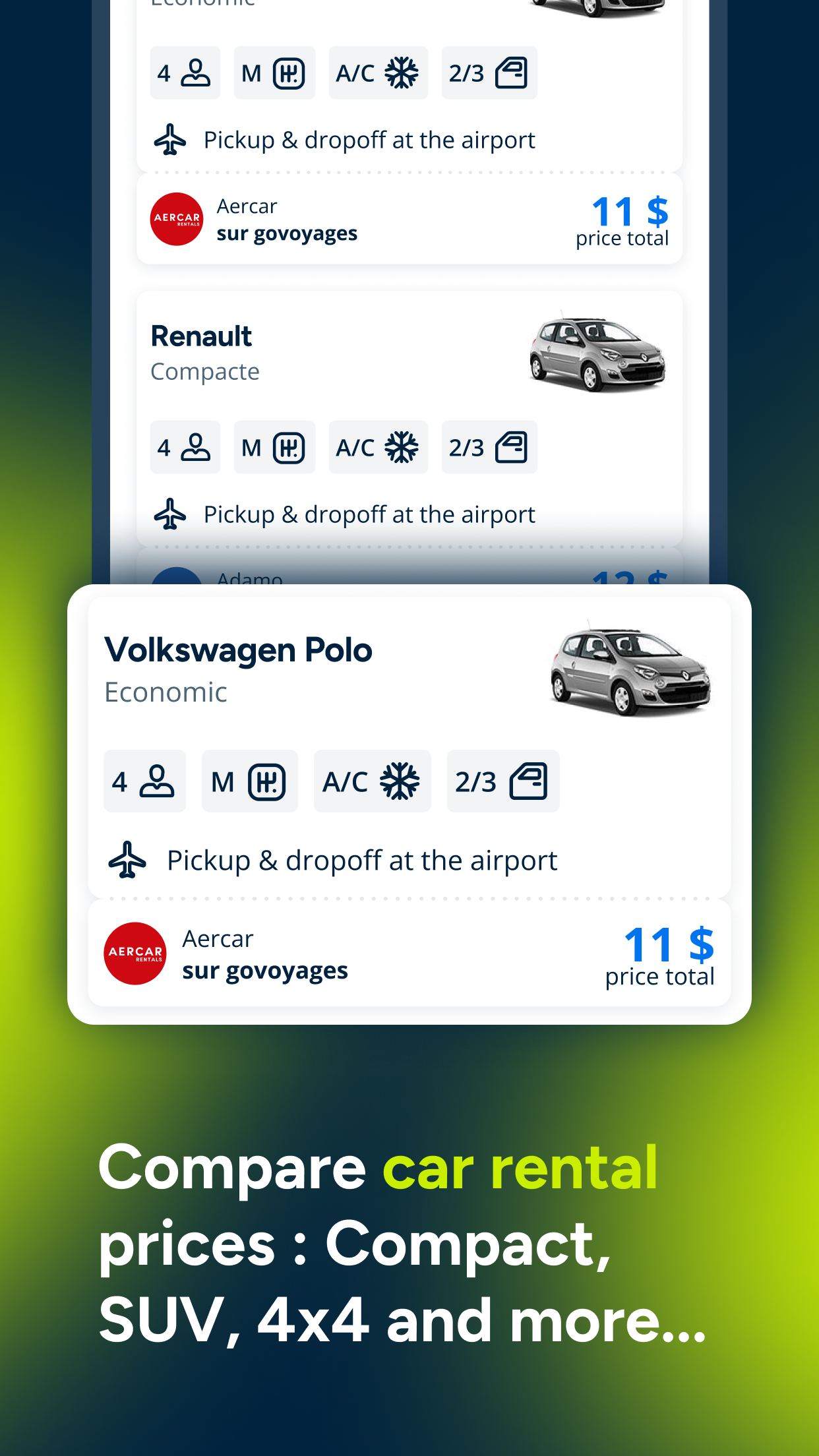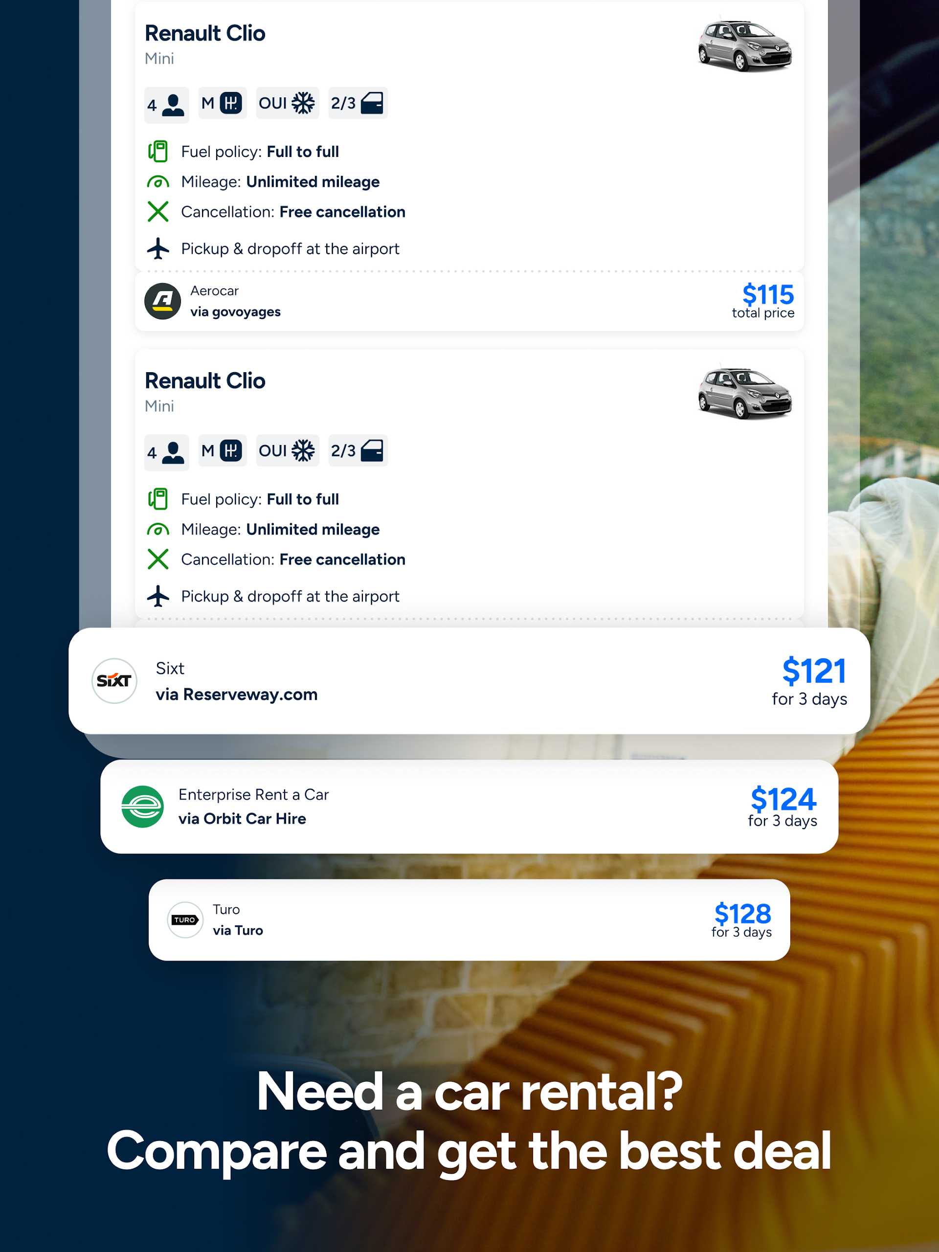 - Take advantage of innovative solutions like Virtuo and Getaround, integrated into your search results for convenient car rental management directly from your smartphone.