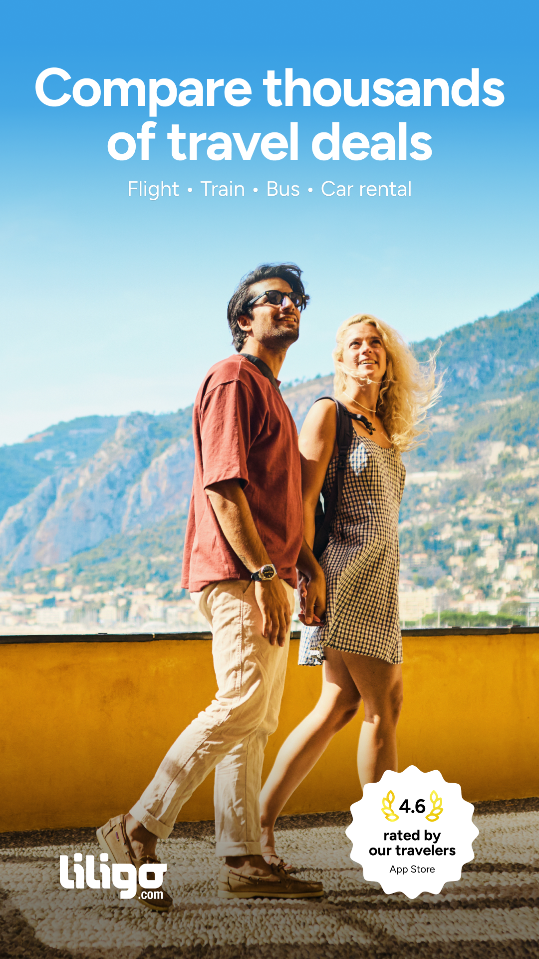 Liligo, your all-in-one app to compare the fastest and most affordable travel options by plane, train, or bus, and car rental prices. Save time and money by comparing offers from hundreds of travel sites in real time with the Liligo app and find the best prices and combinations. Monitor price changes and book at the right moment with our price alerts. Use our 'Explore' feature for travel inspiration or to adjust your trip to your budget.