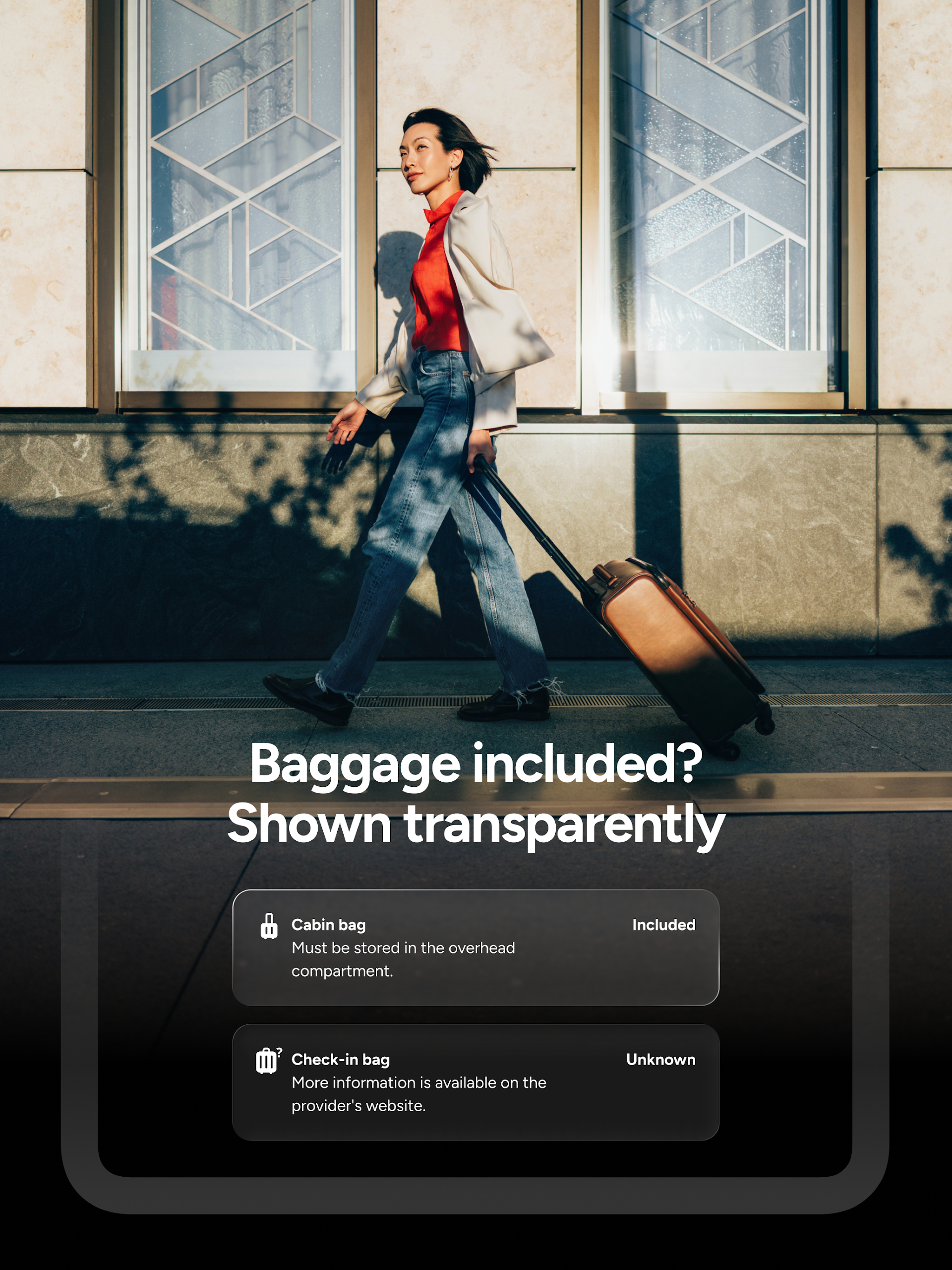 The final price provided by the app includes airport taxes, security fees and applicable service fees, and users can clearly understand all fees when booking