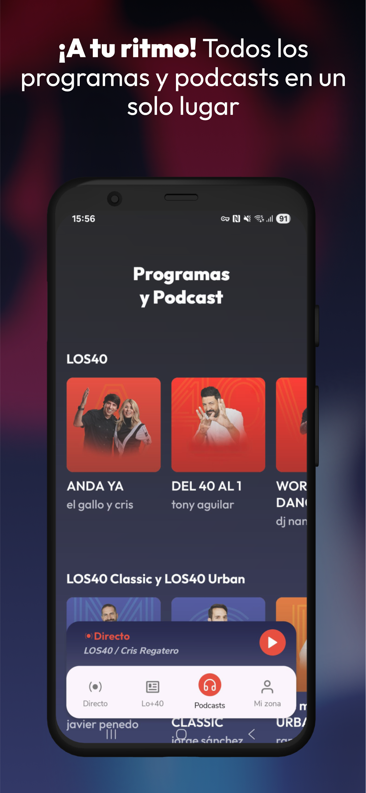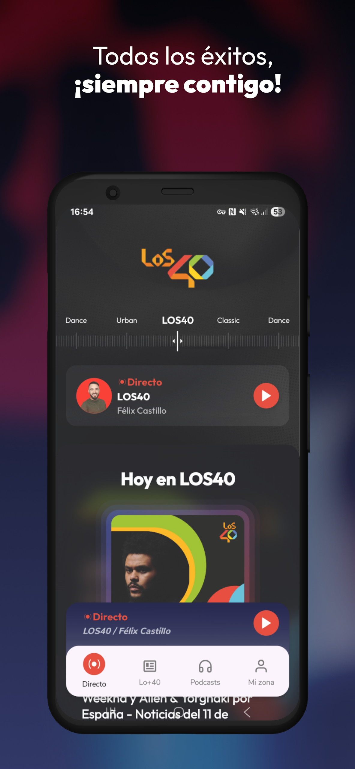 Get on your mobile the Superrr...RADIO! In 1966, LOS40 was born and today we continue to break the mold with our new app. This is because, in addition to listening to our radio stations, you can now enjoy our playlists, on-demand shows, podcasts, exclusive content, the most-watched videos...