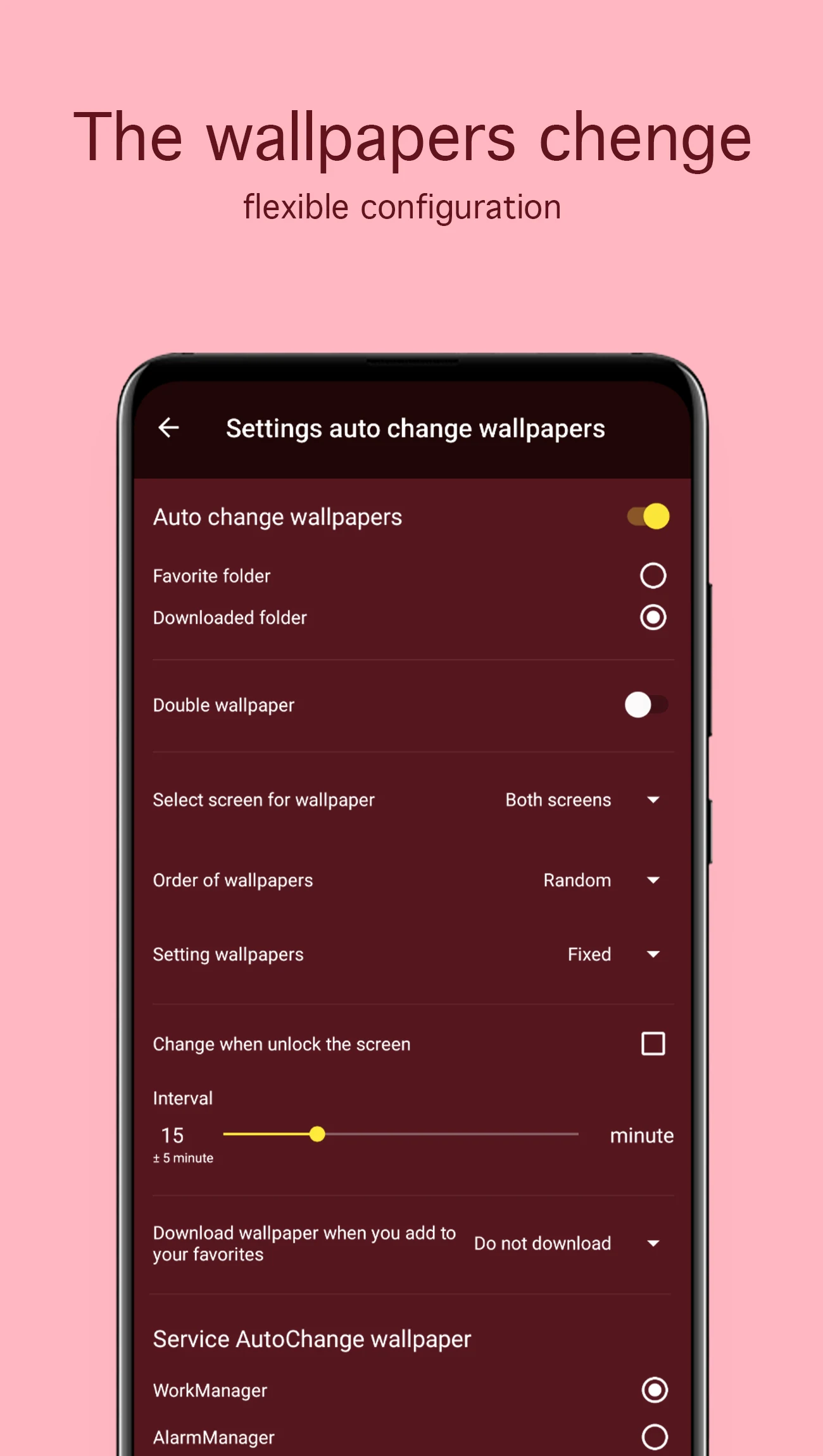• Automatically change backgrounds at custom intervals (live love wallpapers)