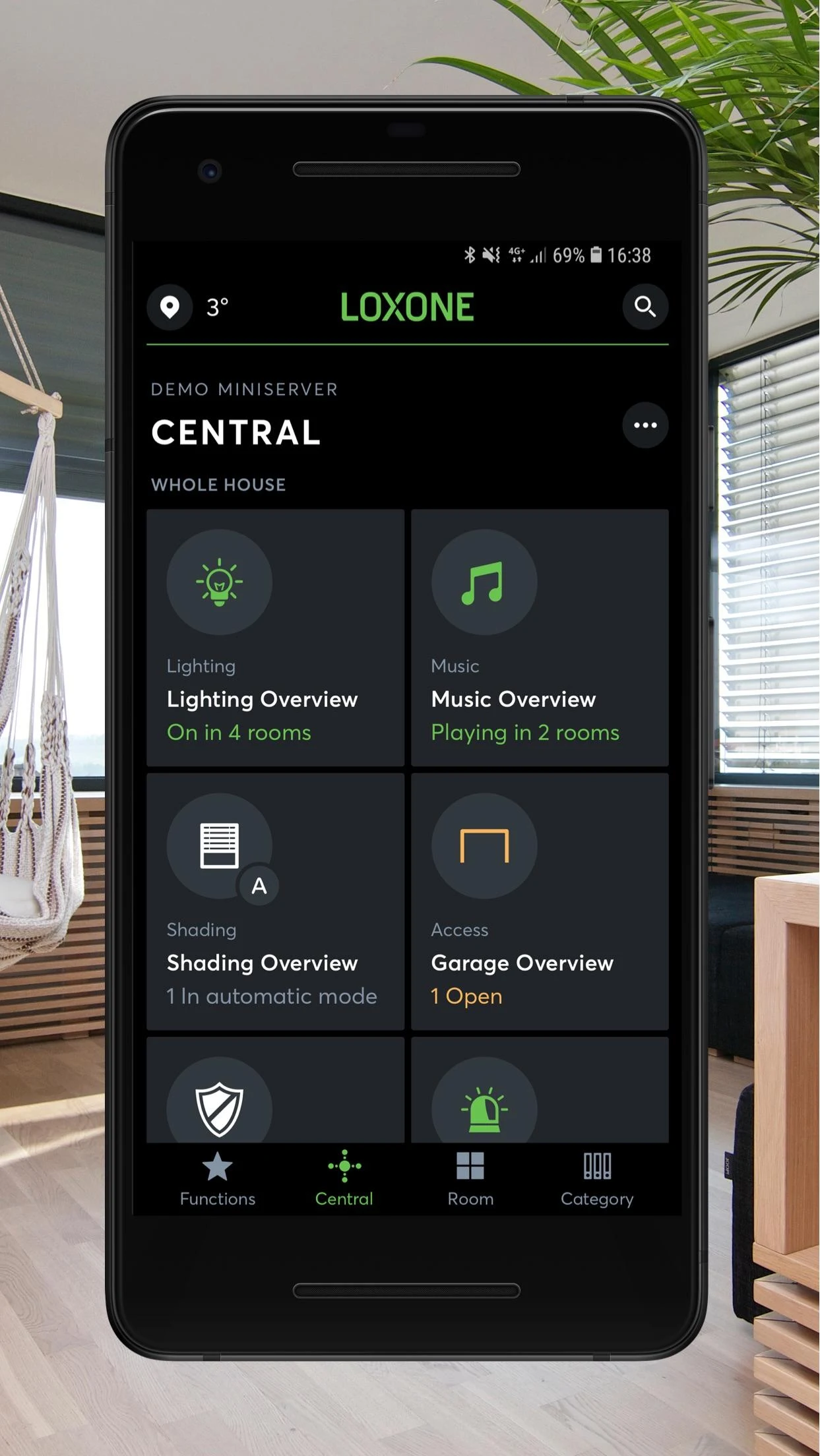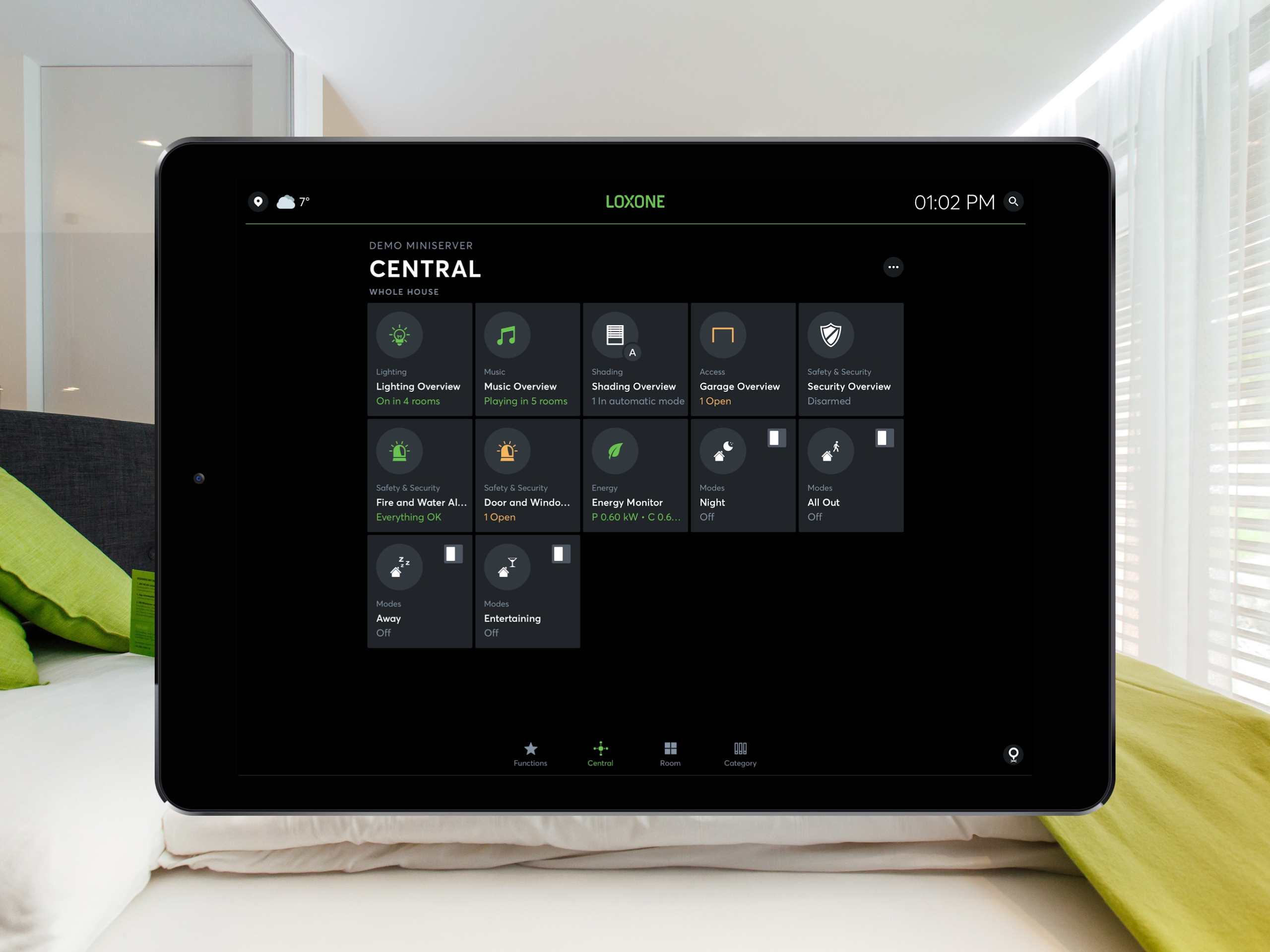The Loxone App requires integration with a Loxone Miniserver. It is advisable to have a professional handle the installation and configuration of both the Miniserver and the Loxone App. Additionally, specific settings must be established by a professional to enable external access to the app.