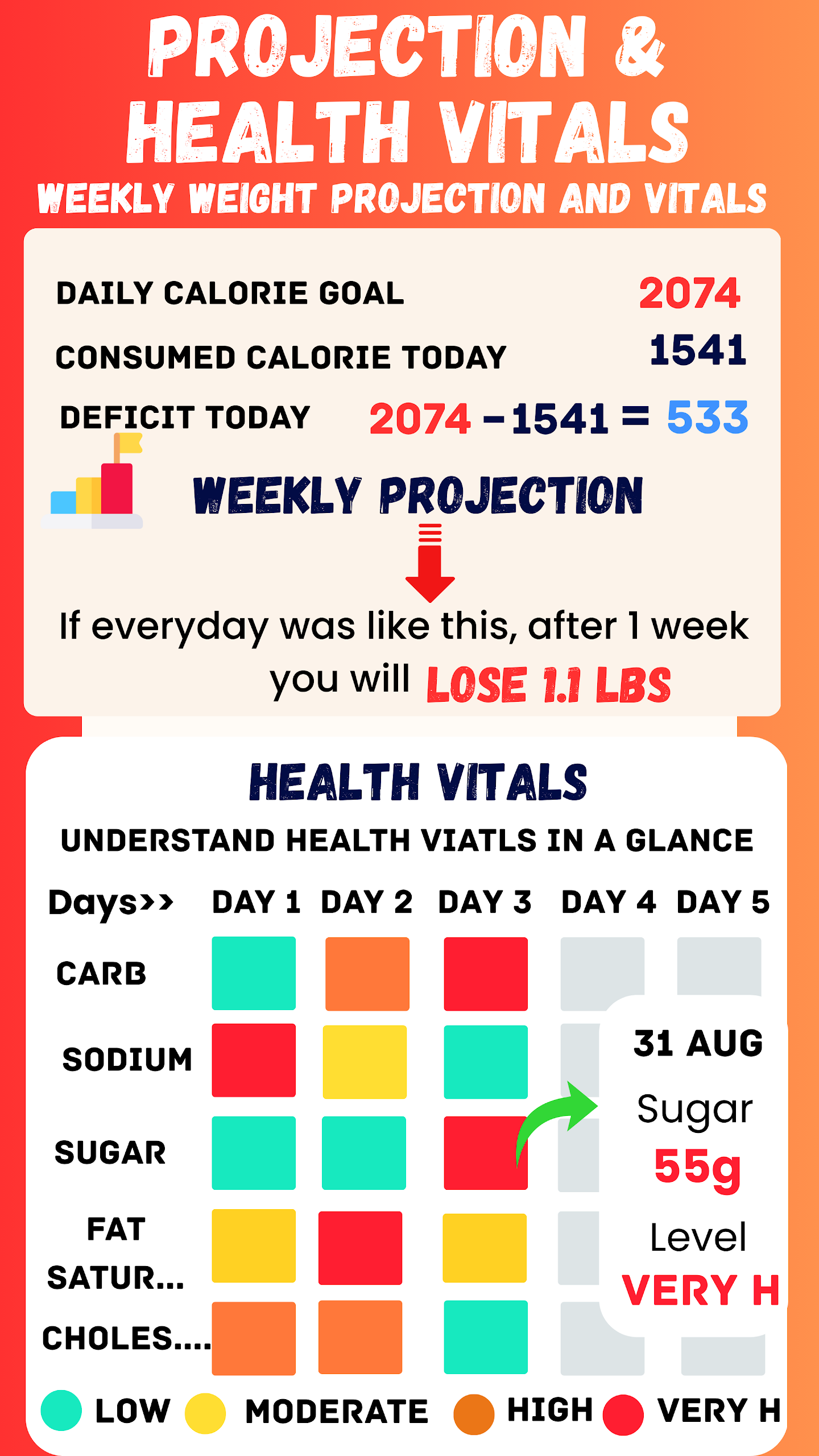 🥗Diet & Health Metrics: Access clear food information with smart ratings and labels related to diet and health.