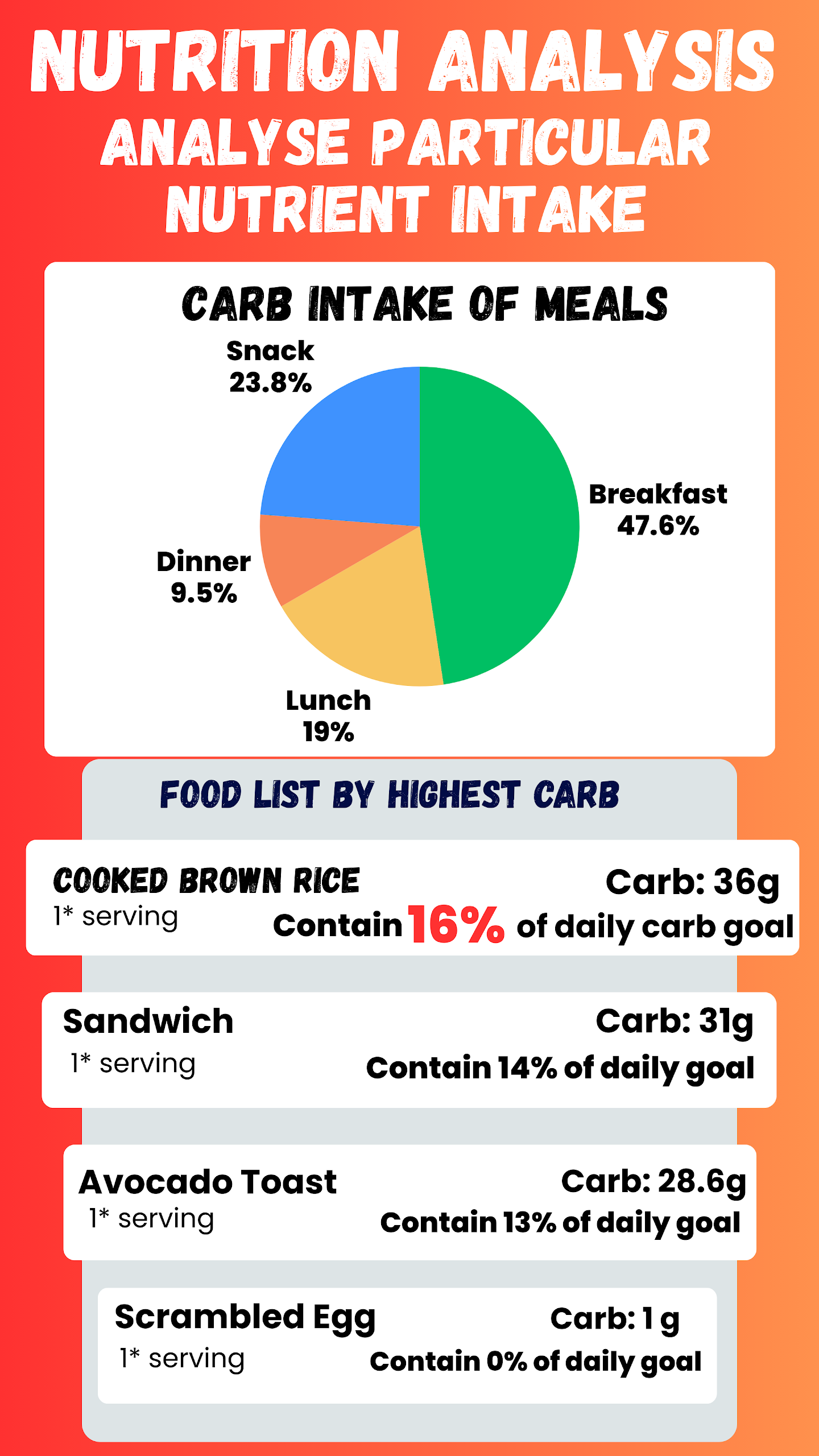 🍎Nutrient Tracker: Receive an in-depth analysis of your daily intake of proteins, carbohydrates, fats, vitamins, and minerals to support a balanced diet.