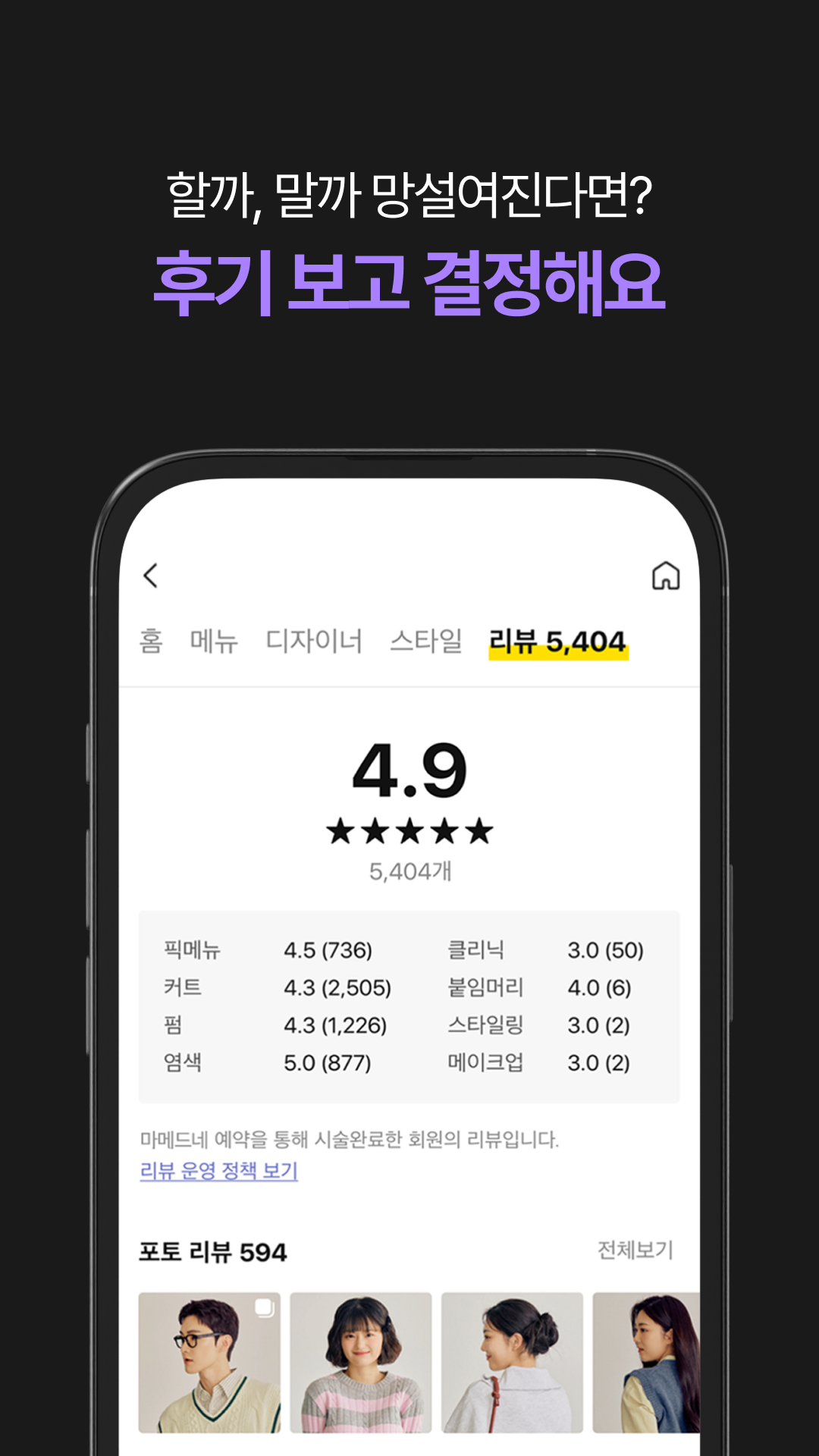 Based on treatment statistics, easily check recommended nearby stores and designers with high rebooking rates in each area.