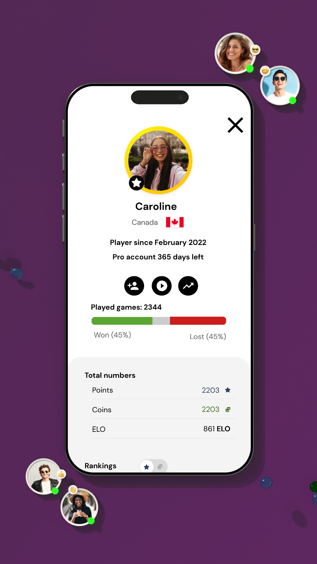 Assess your skills and game statistics in comparison to other players. Obtain a comprehensive view of your skill progression.