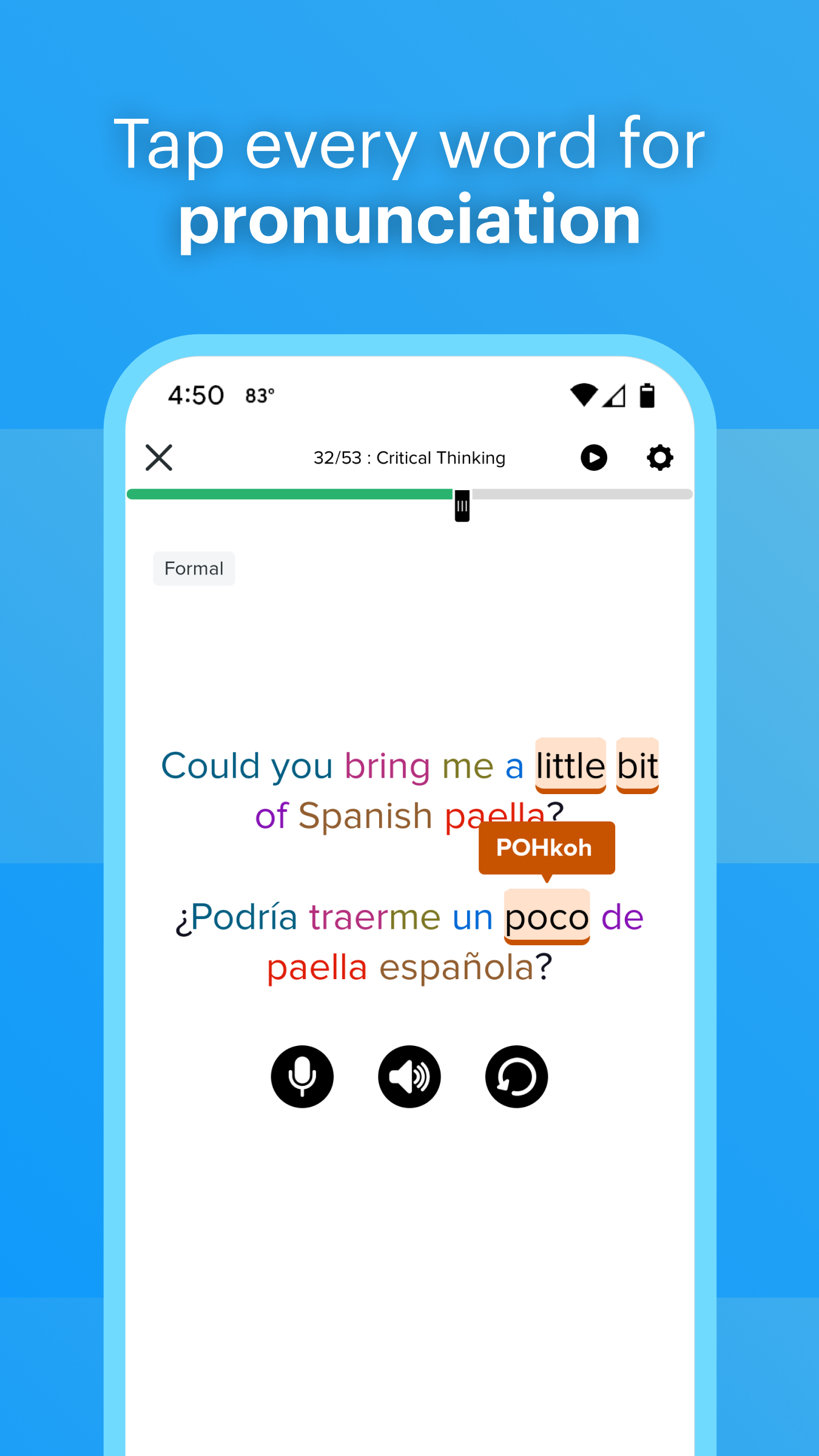 Users can record their own pronunciation and compare it with native speakers to help improve pronunciation accuracy