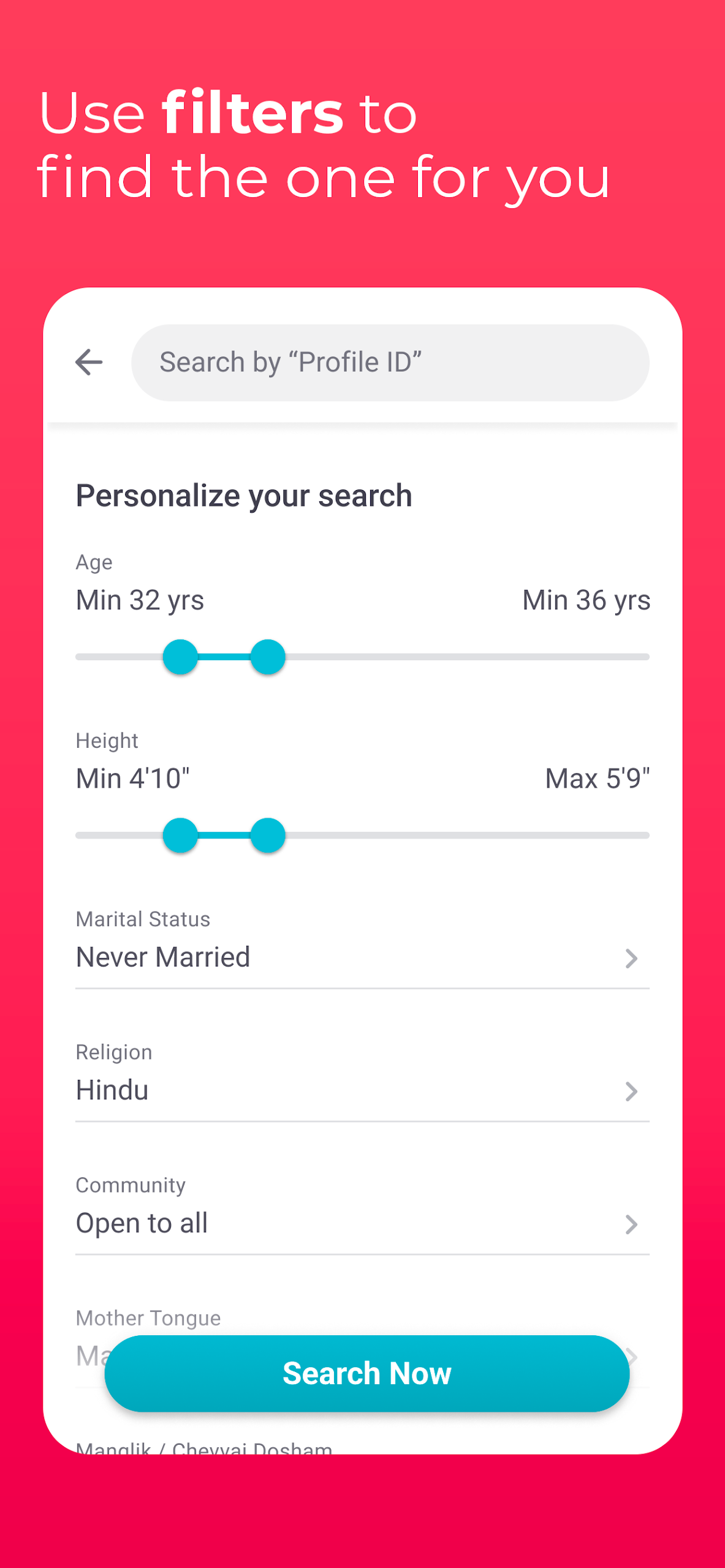 Using this app, you can also connect with NRIs residing in UK, USA, Canada, Australia etc., or search for profiles by religions like Hindu, Muslim, Christian etc.