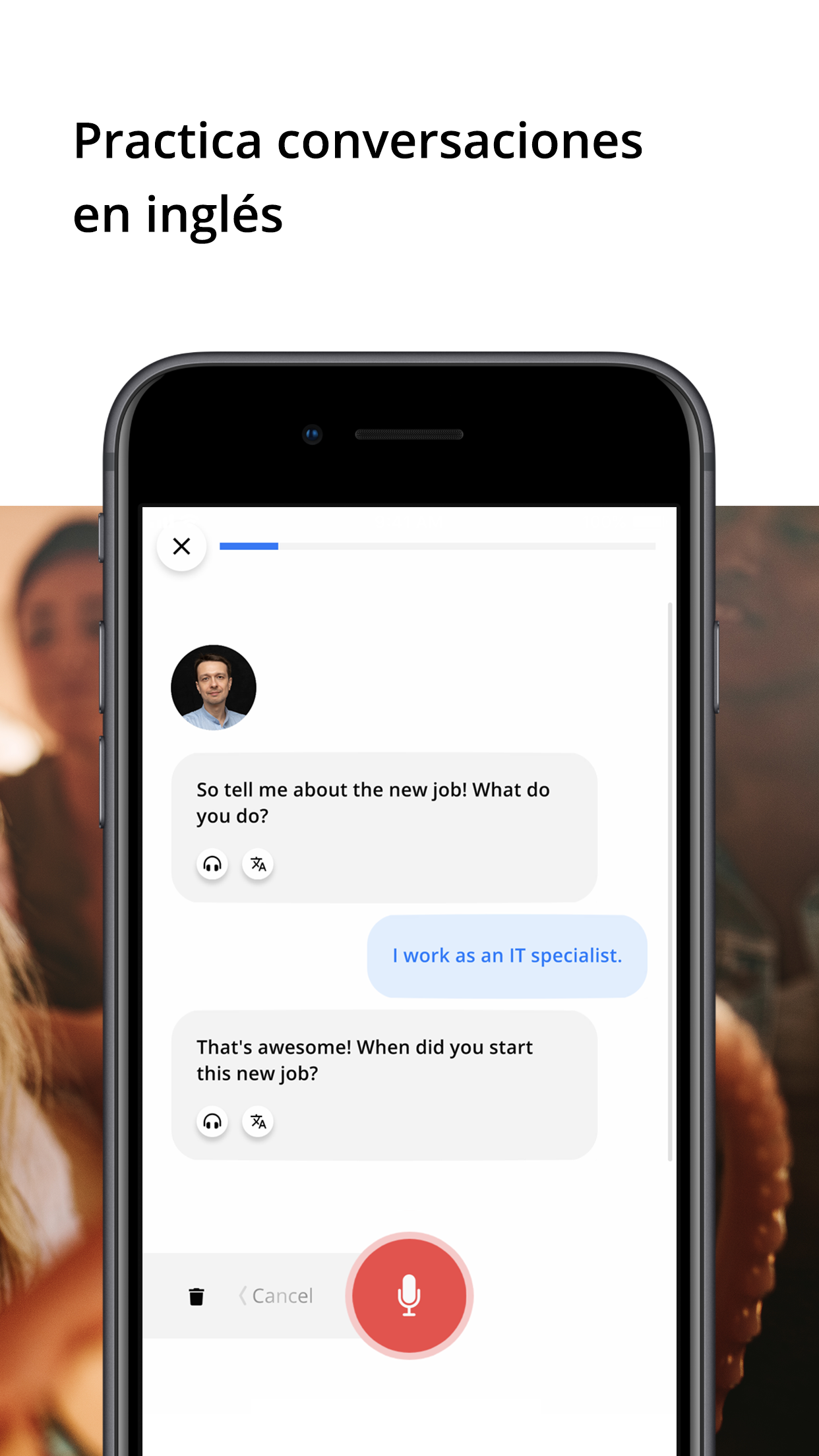 Master English is an application tailored for Spanish-speaking adults aiming to reach a proficient level of English for their professional aspirations. Upon installation, the app will generate a custom program that caters to your specific level and requirements. This program allows you to practice all facets of the English language, emphasizing pronunciation and conversation skills.