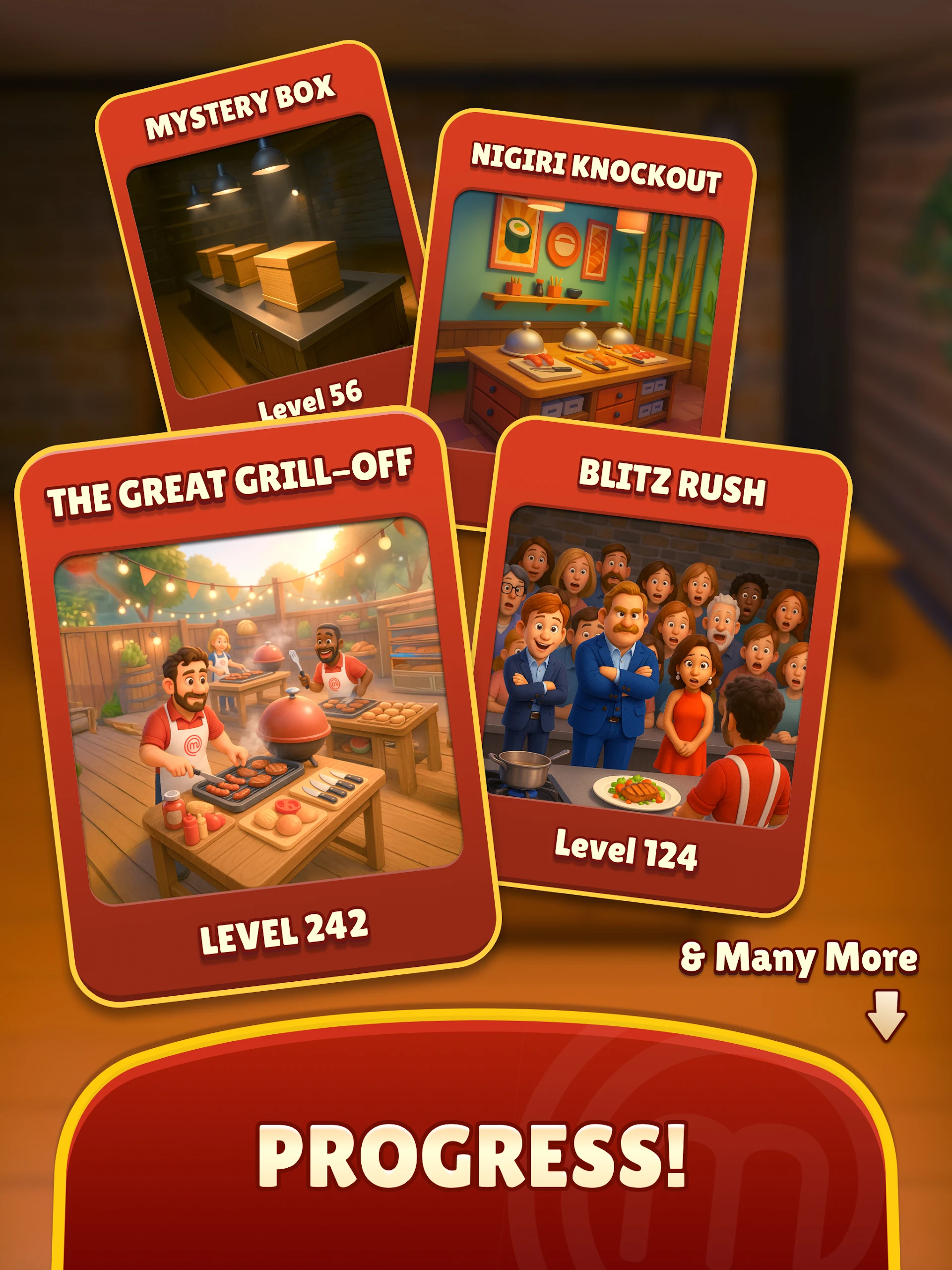 I like the idea of this game and I enjoy playing. However, I wish that the match 3 element was taken out and it was just the cooking and the Masterchef competition aspect of it because that I feel is the best part of the game and it's kind of annoying to go through so many match 3 rounds to get to that. Otherwise, I think it is enjoyable to play