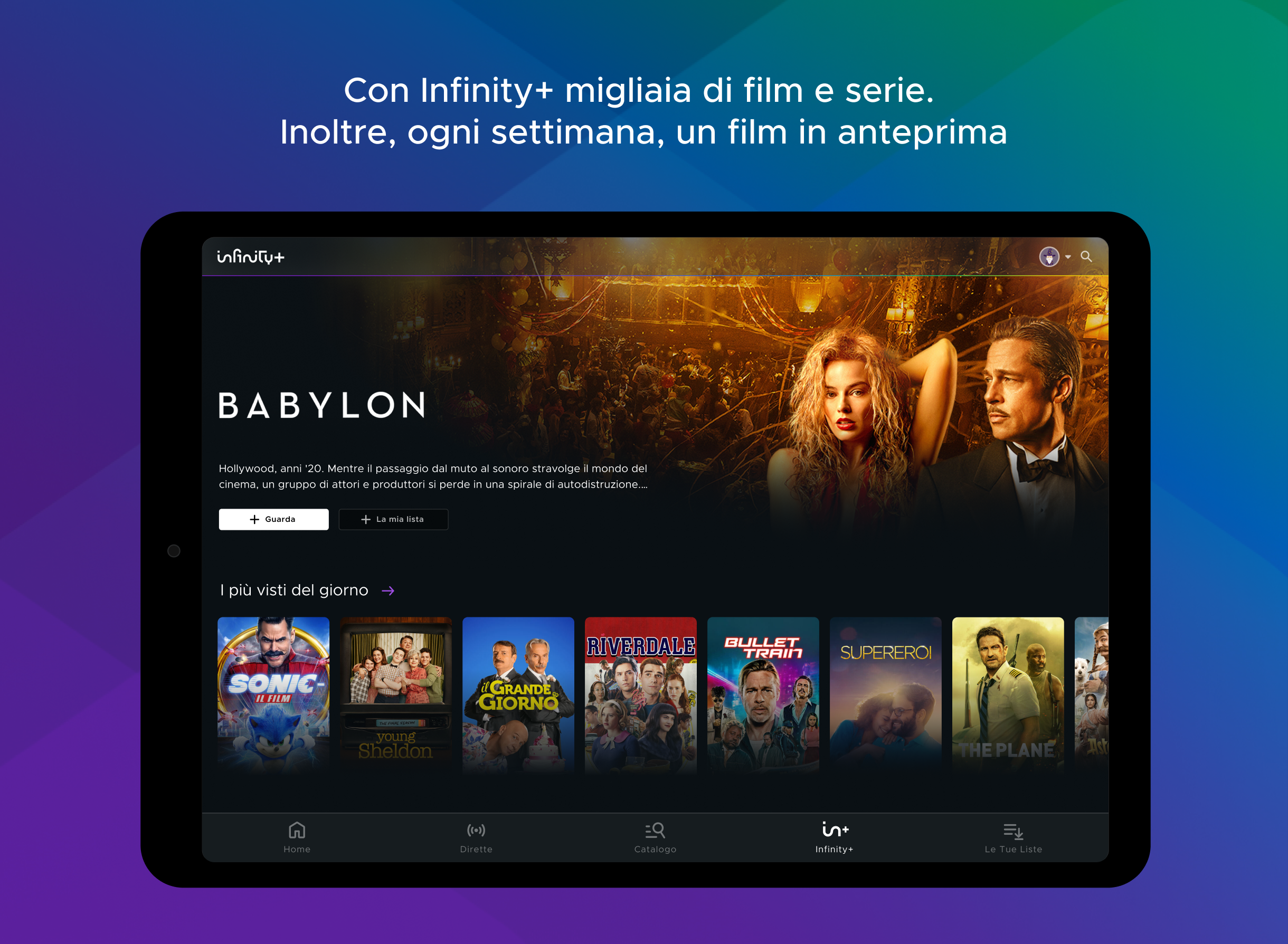 Moreover, you can activate Infinity+ for a vast collection of Italian and international cinema and exclusive TV series.