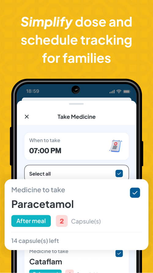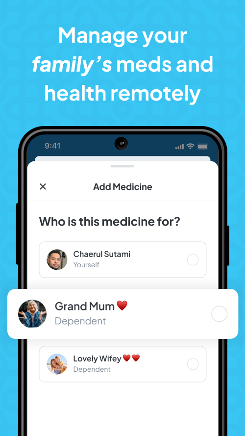 • Add dependents to supervise their medication needs and connect with friends for additional reminders if doses are missed.