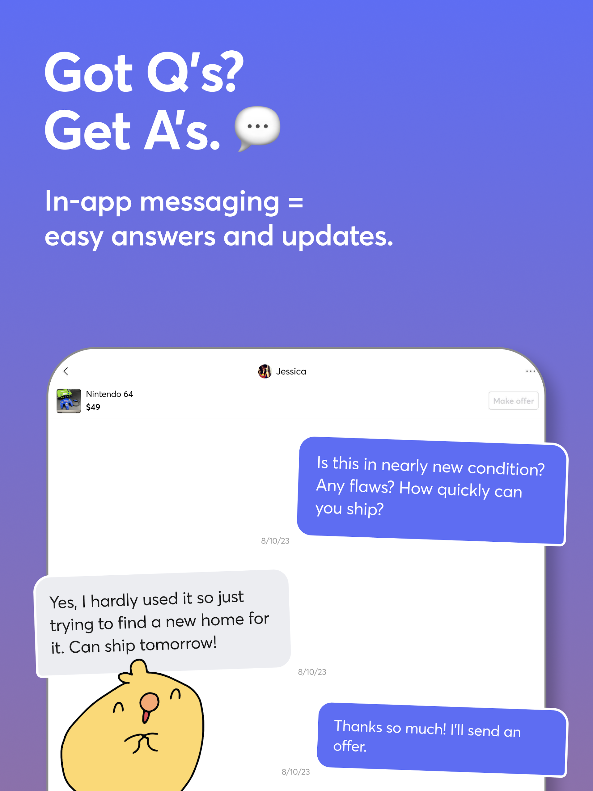 Whether you’re decluttering your home or looking to make some money, selling your stuff on Mercari is fast and easy. We recommend opting into messages from our team to stay up-to-date on your listings and orders.