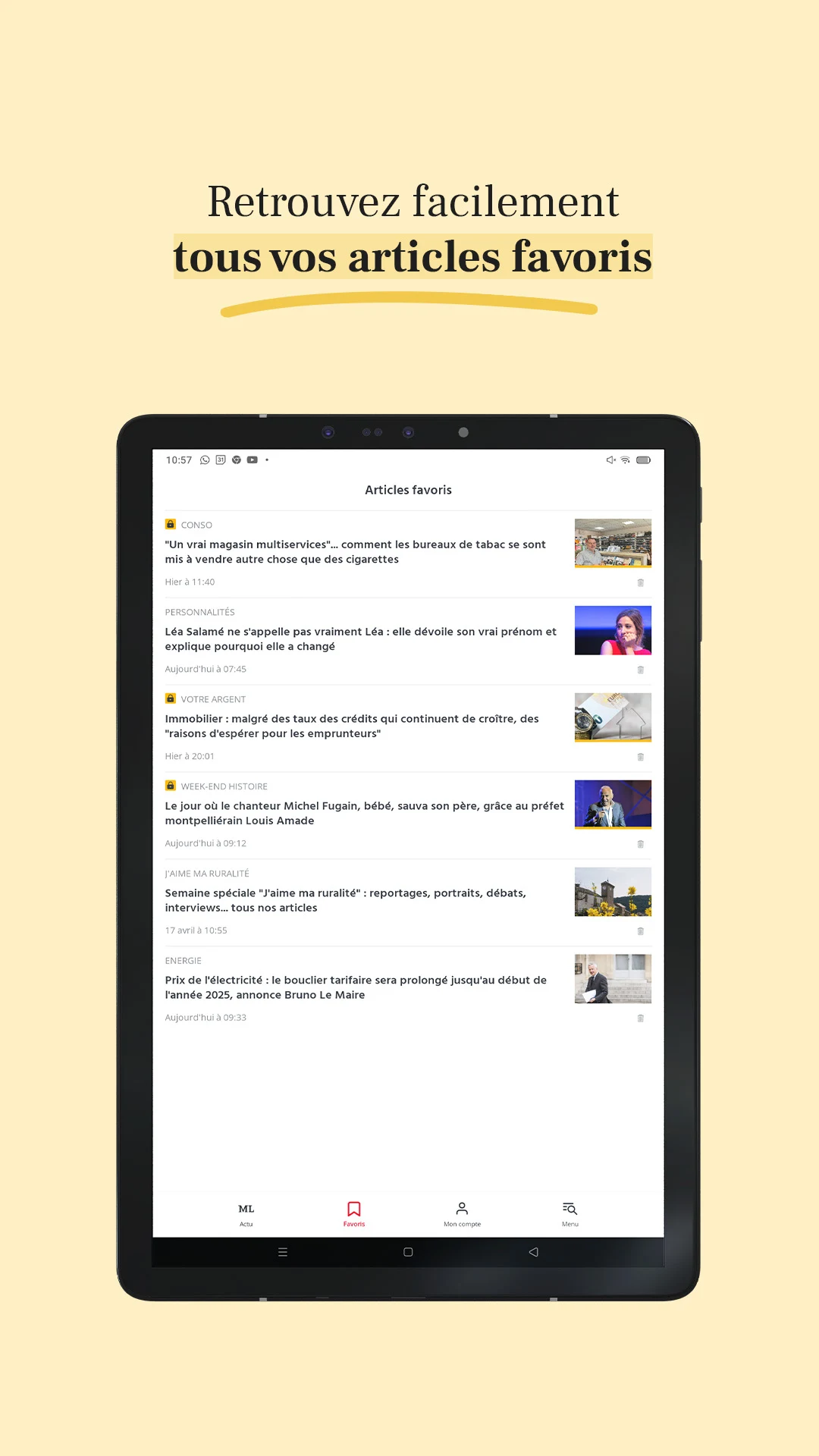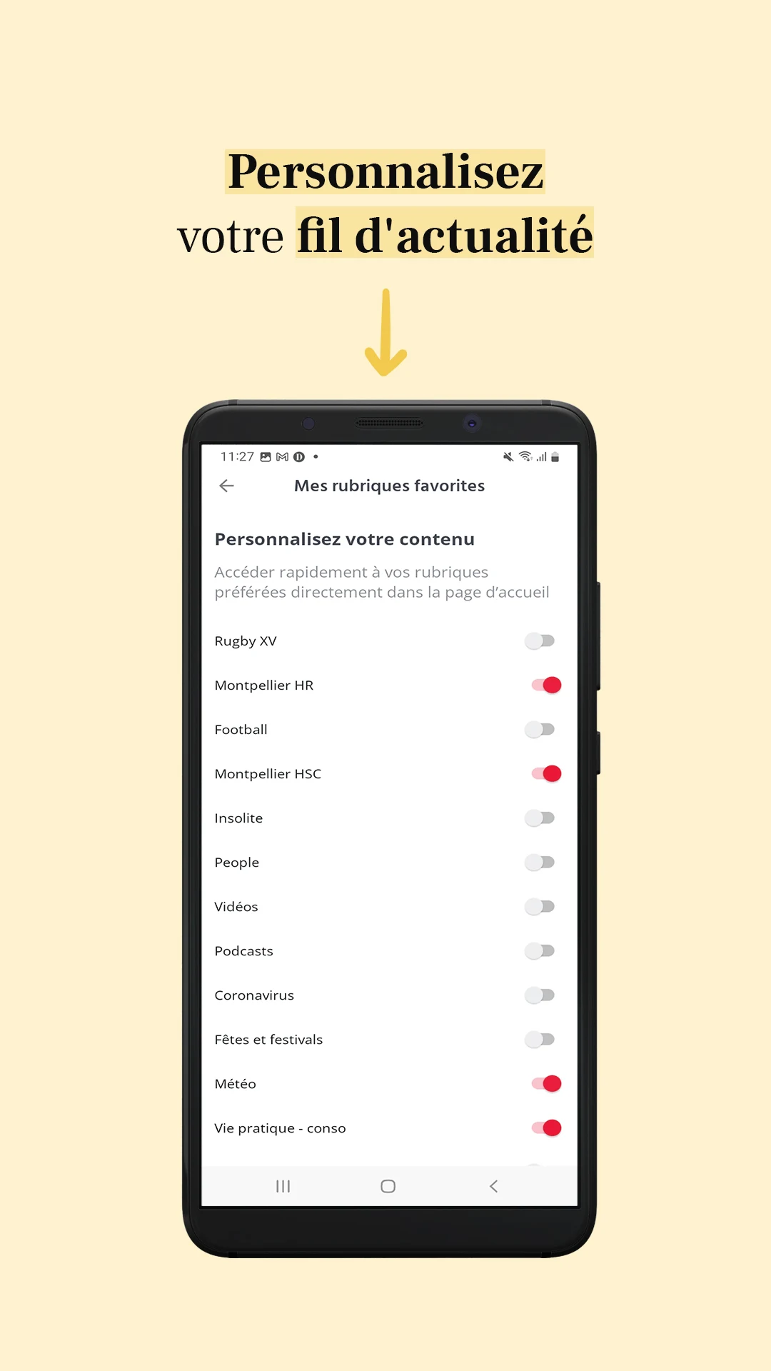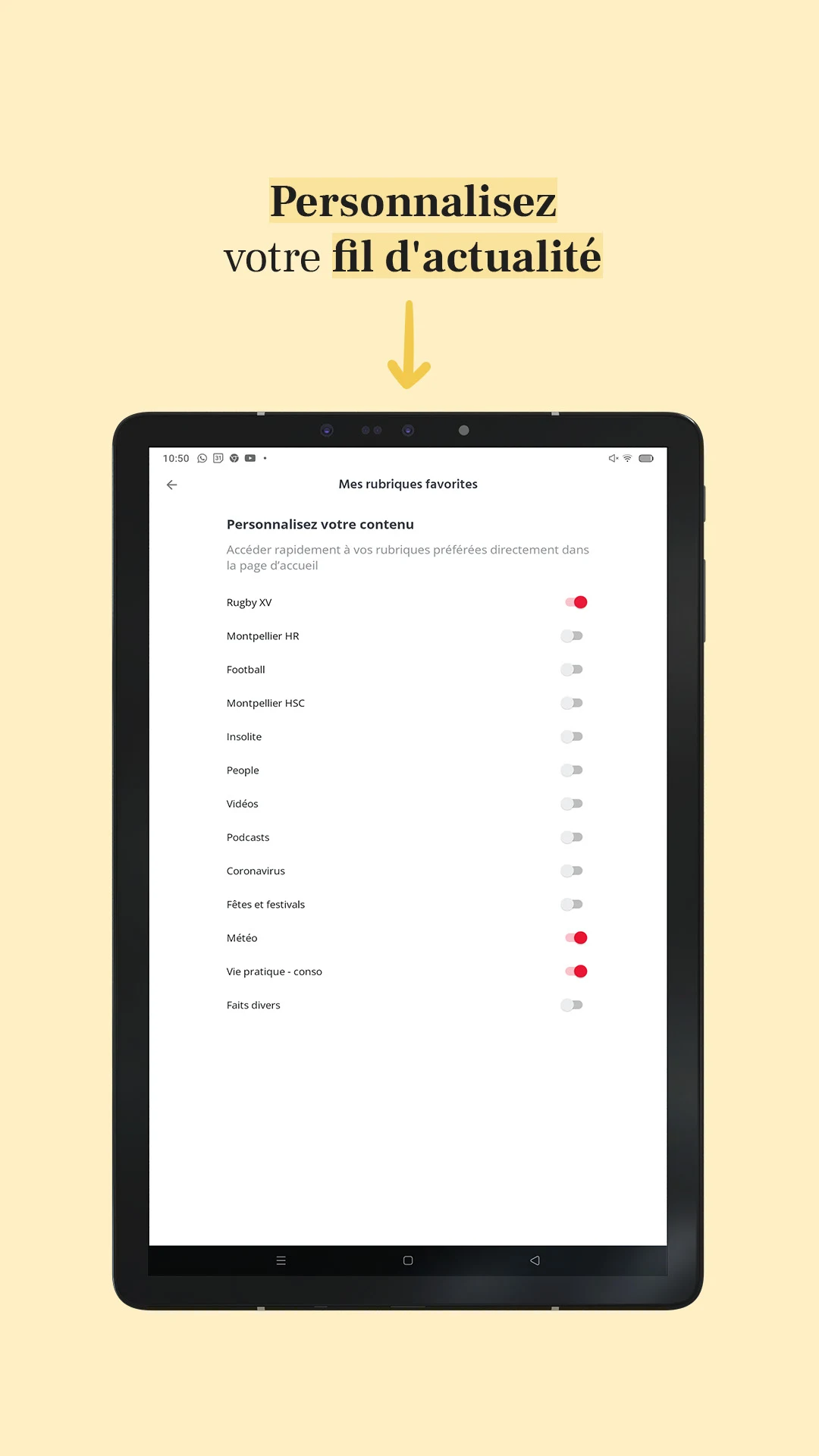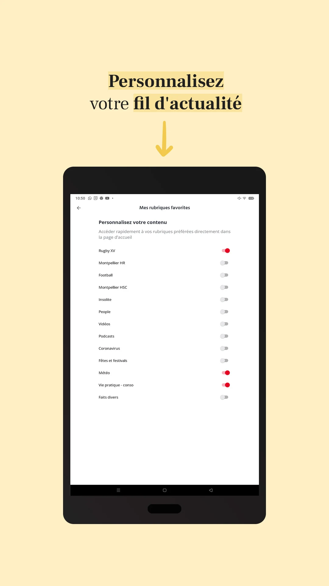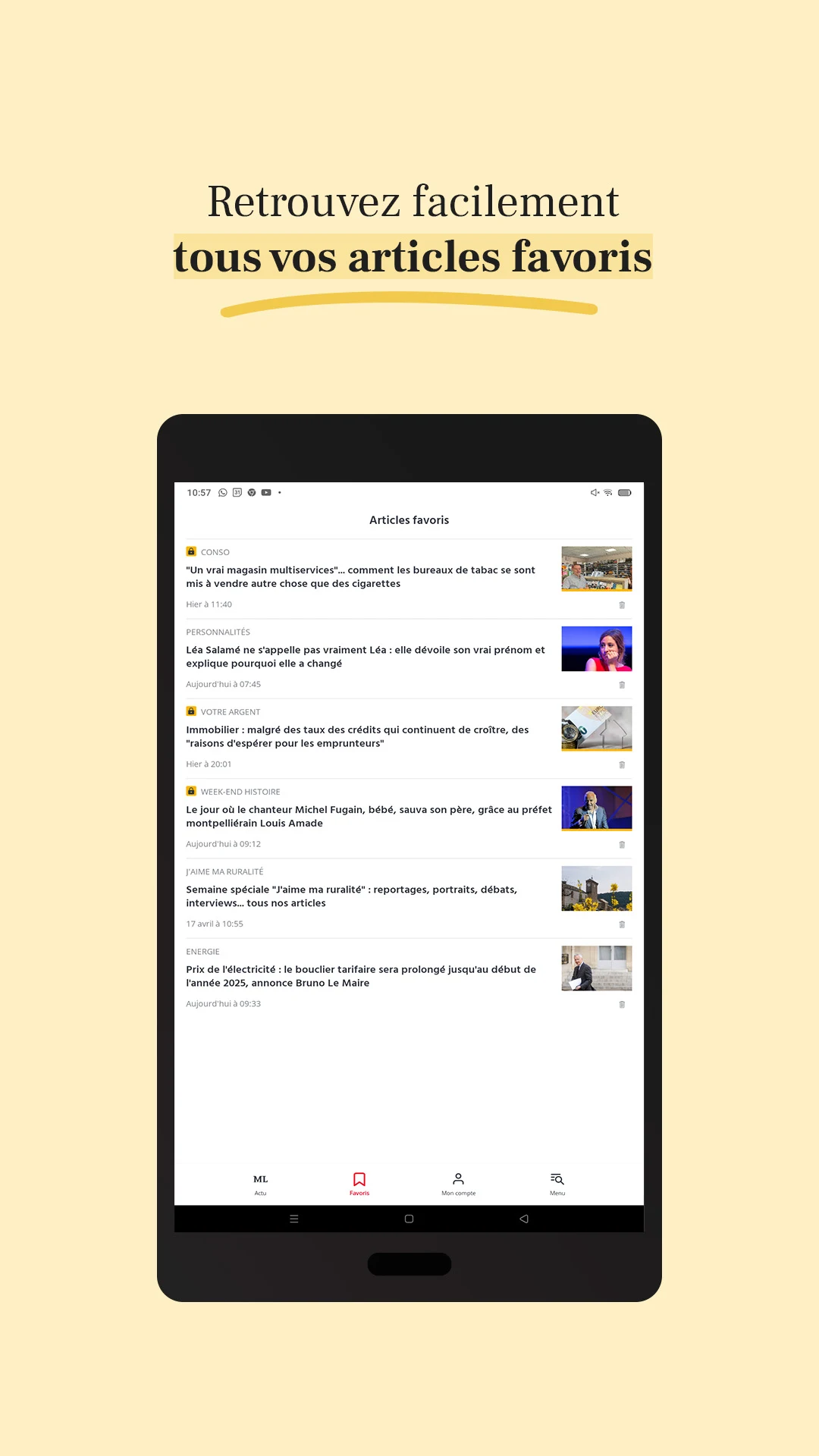 - Create a personalized home screen featuring your selected sections: Economy, Sport, Health, France-World, etc.