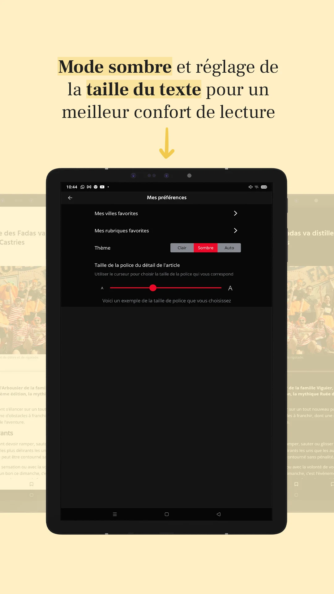 - My Account: to customize subscription preferences, notifications, newsletters, and settings (including preferred cities, sections, application theme, and font size).