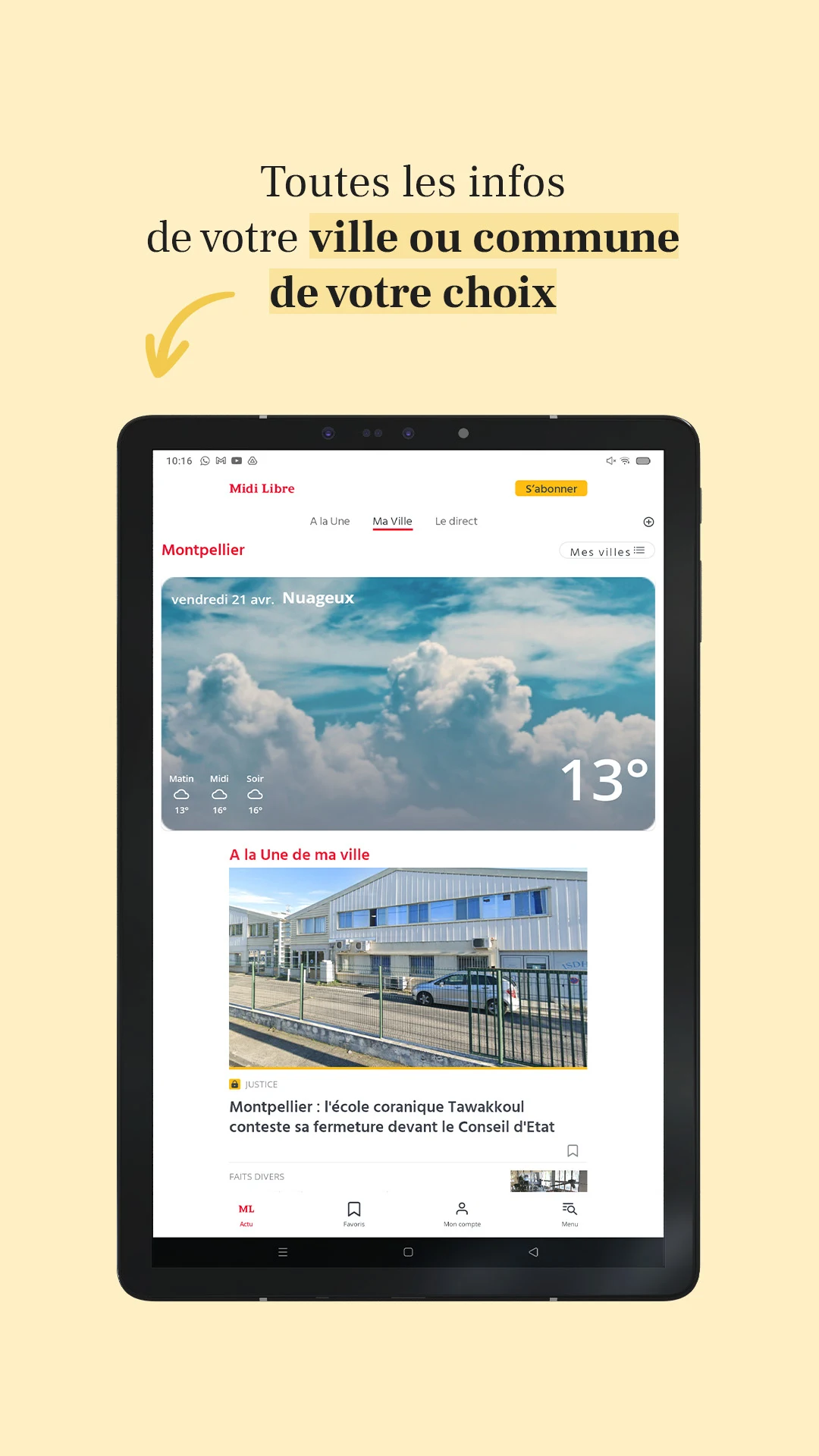 Midi Libre – Actus en direct brings the Midi Libre newsroom to your phone with a stream of headlines from Occitanie and beyond. Open the app to browse regional reports, national and international items, sports and culture, then opt in to alerts so major developments reach you immediately. It complements the publisher’s e-paper product—available as a separate “Le Journal” app for reading the full print edition with all local versions and Sunday extras. Together, the two apps cover quick daily updates and edition-style reading, letting you follow what’s happening around you in the format you prefer.
