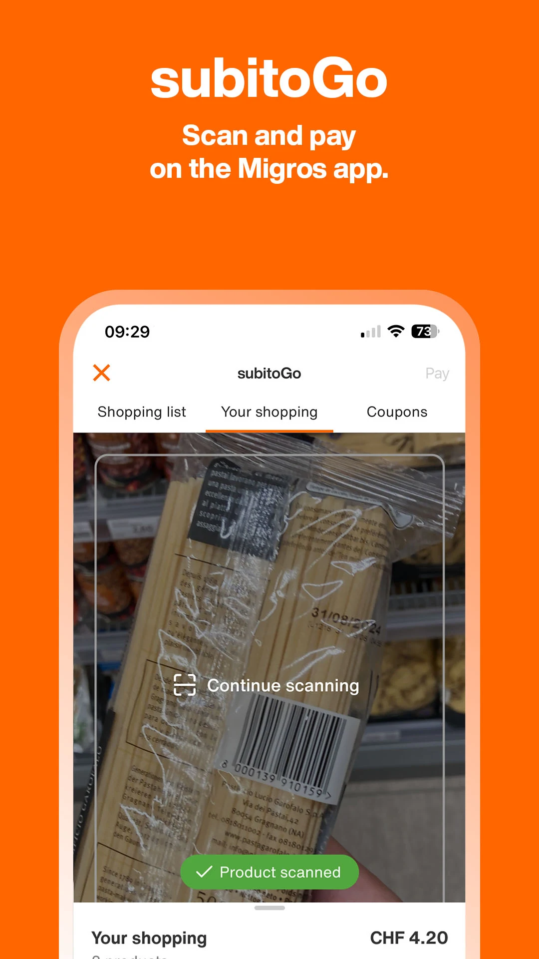 Scan, pay, and go! With subitoGo, shop directly through your mobile device - scan items, make payments, and exit the store promptly without queuing.
