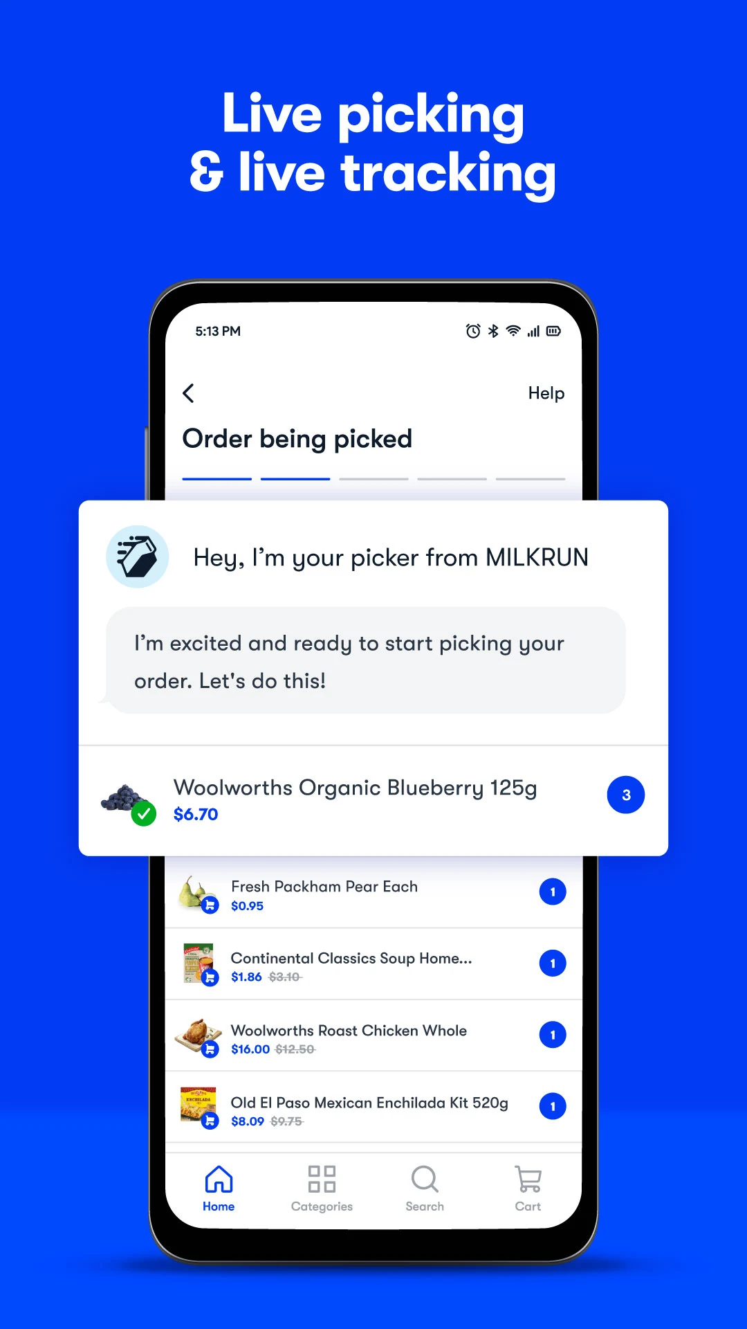 It's easy. MILKRUN has live picking and live tracking so you can know where your order is at all times. Once your order is picked and packed, you can follow the tiny blue car on the map as it makes its way to you!