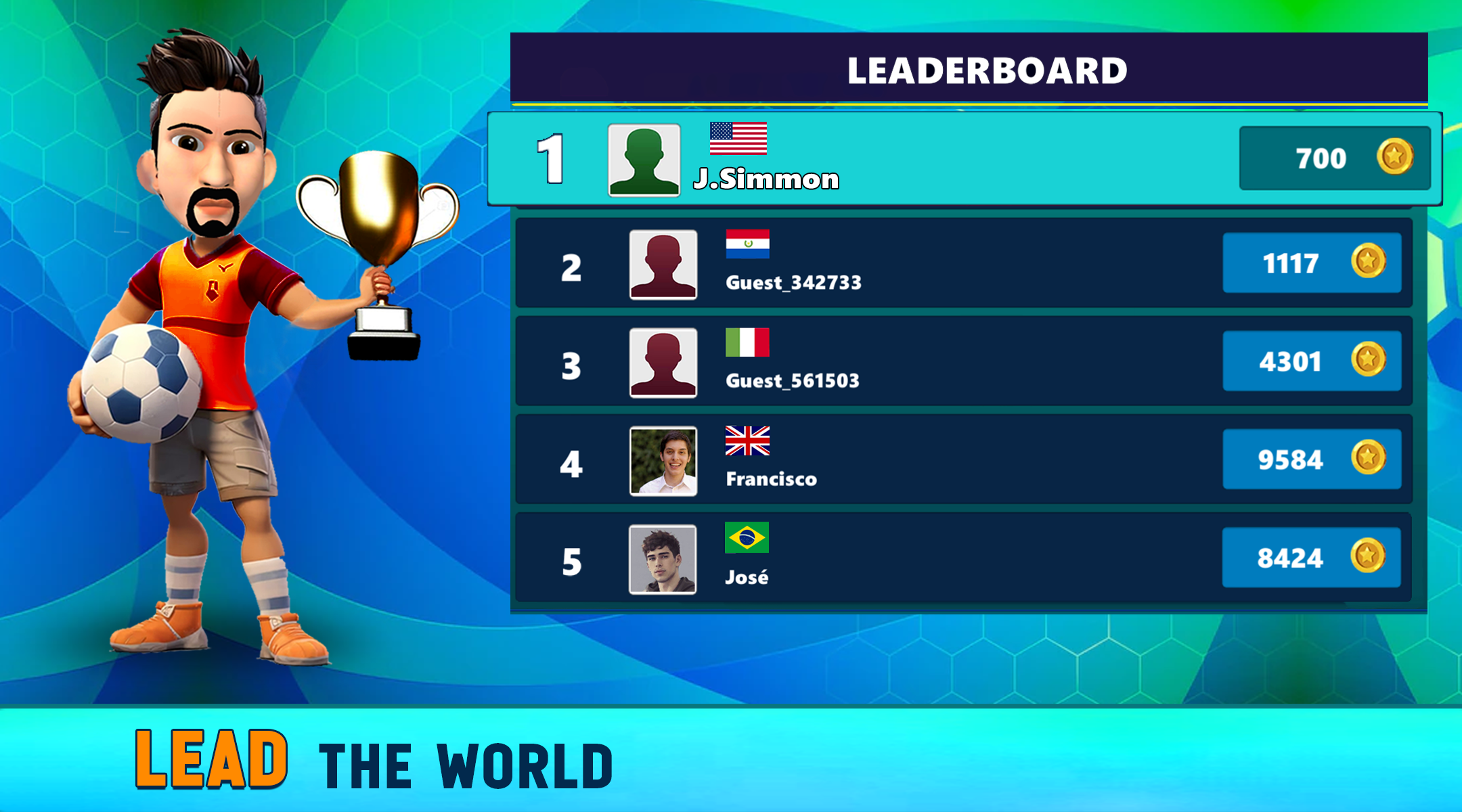 "Warning:this game is show only his best reviews, but the game is truly copy of mini football I was just playing a match after I win the match my name automatically changed My name is guest0345 but after match it shows guest0789."