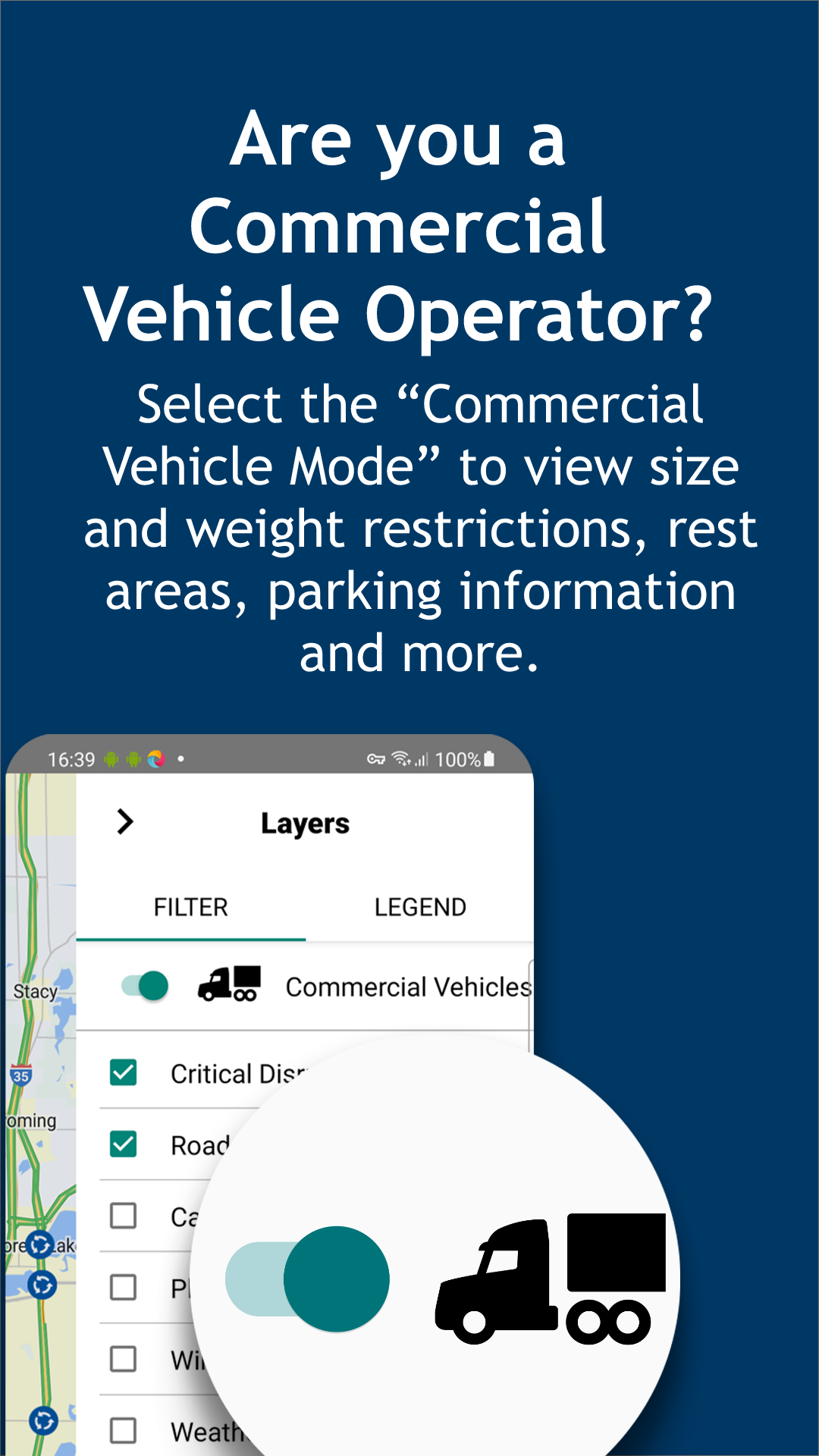 - Near real-time information regarding winter road conditions, traffic incidents, and road closures