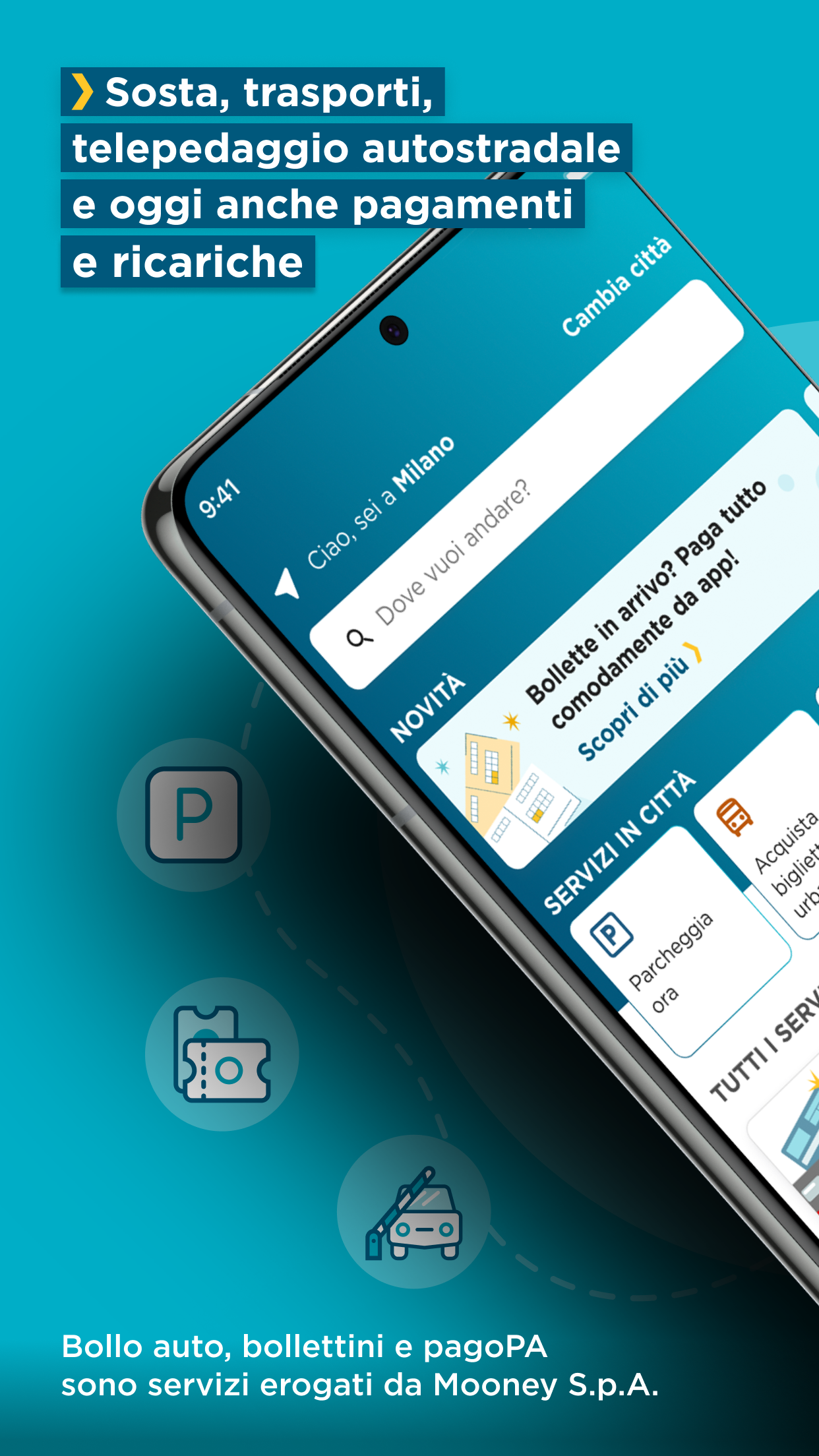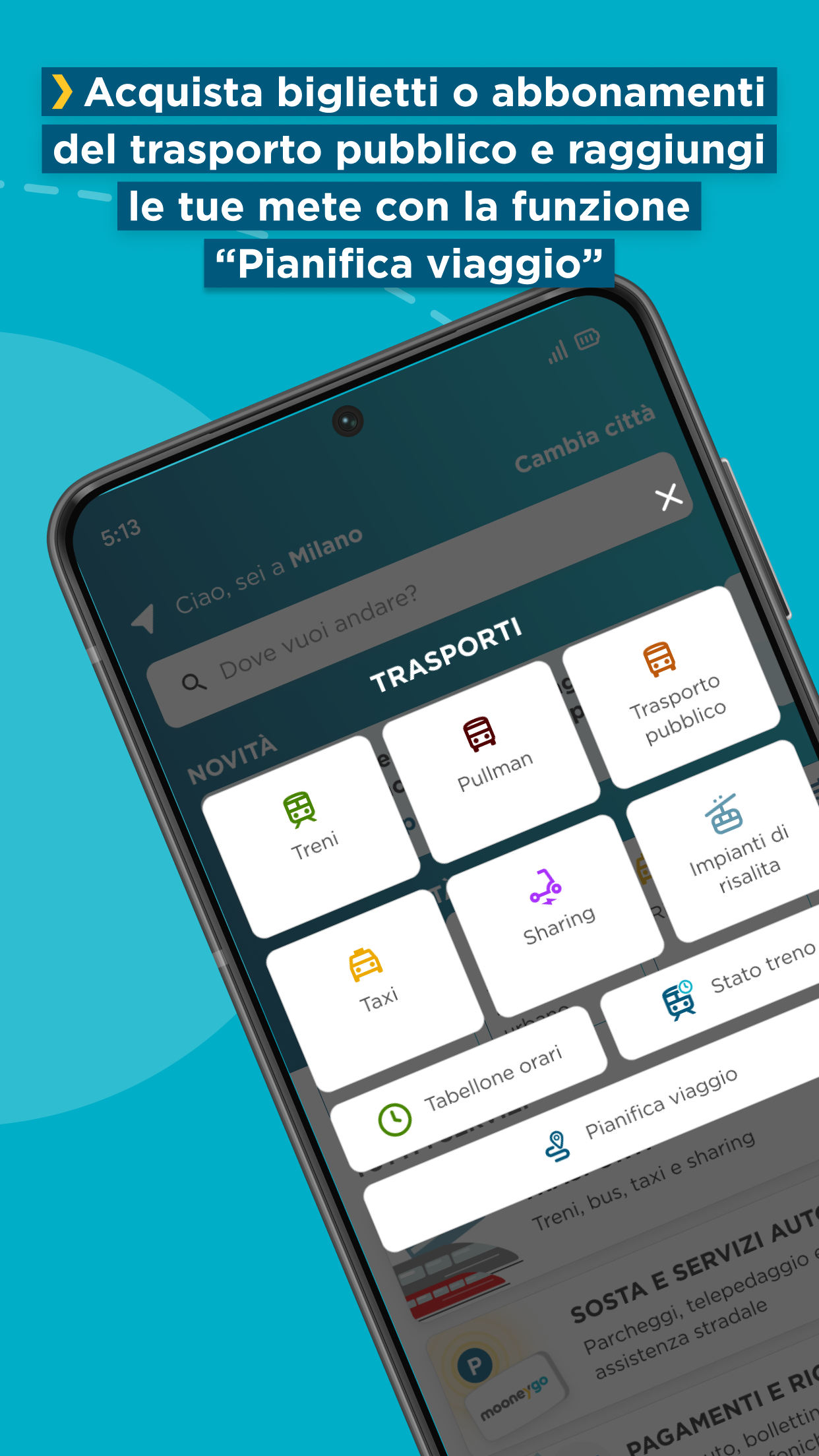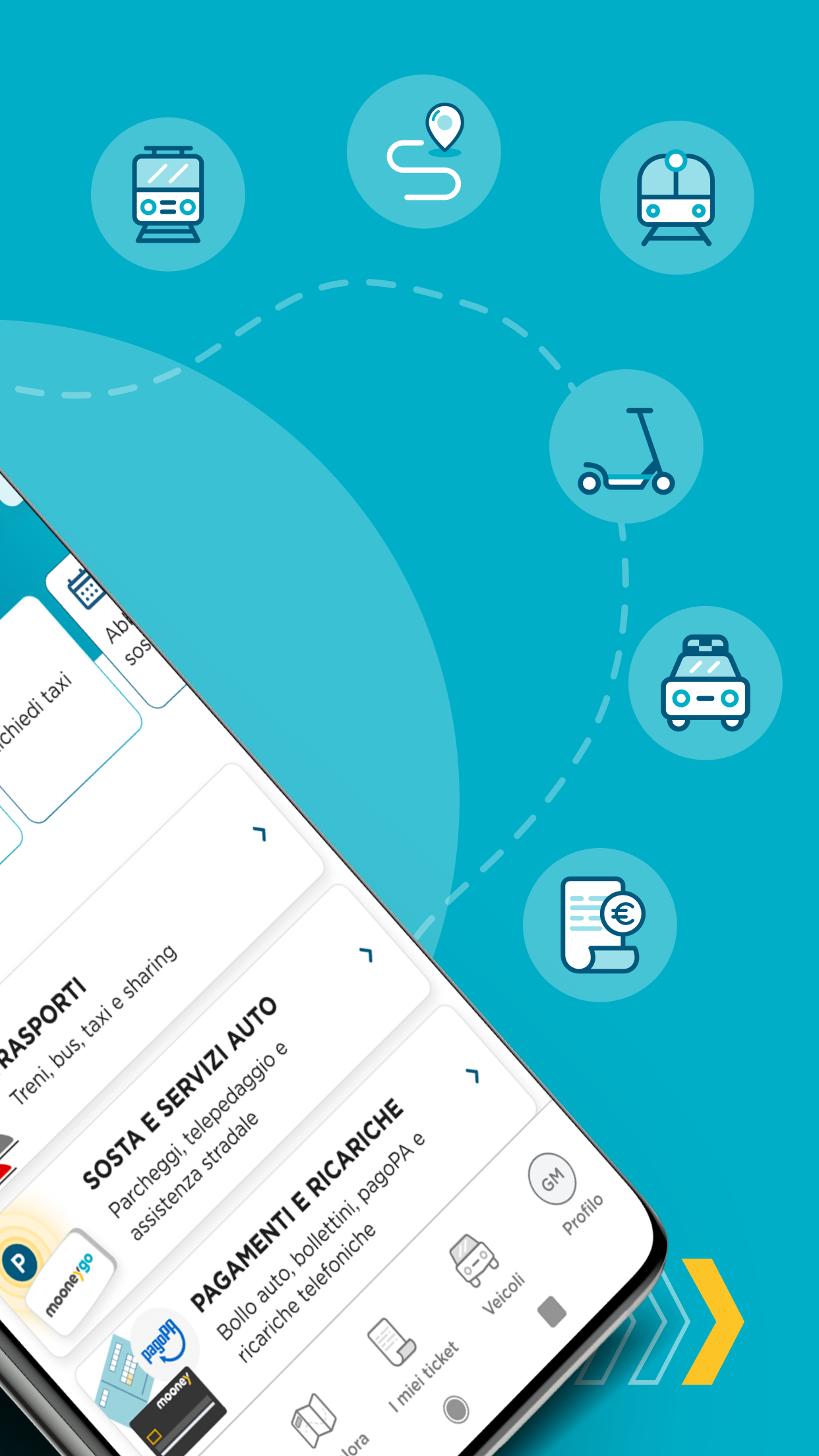 MooneyGo is the free app with the widest range of mobility services in Italy. Move, travel, and pay securely with MooneyGo - your app for convenient daily city and out-of-city transportation using your preferred mode of transport. Now you can even use our new tele-toll service on highways for seamless journeys.