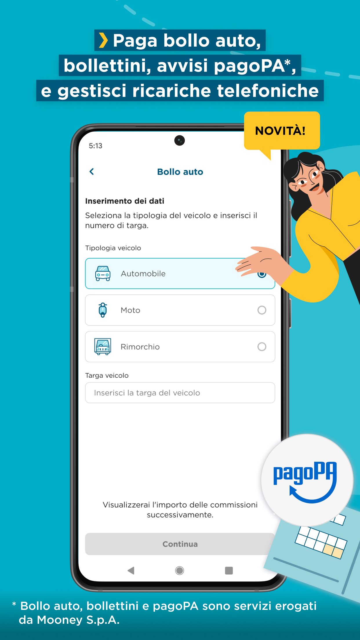 Yes, download and create a MooneyGo account for free: once the account is activated, you can associate one or more payment methods with your MooneyGo profile and you will only pay for the services you use.