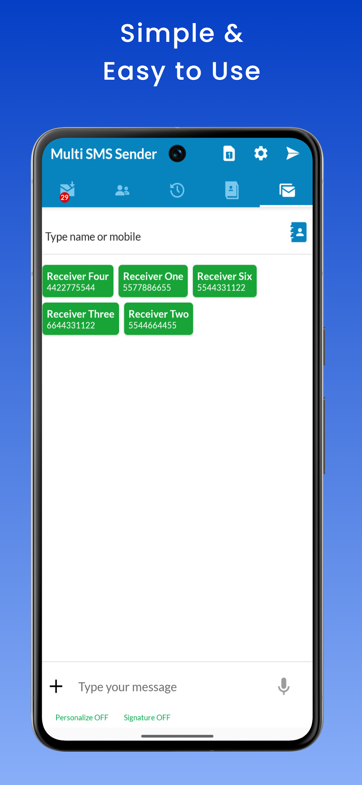 Effortlessly send messages to groups, manage contacts, & personalize texts with this all-in-one multi SMS sender.
