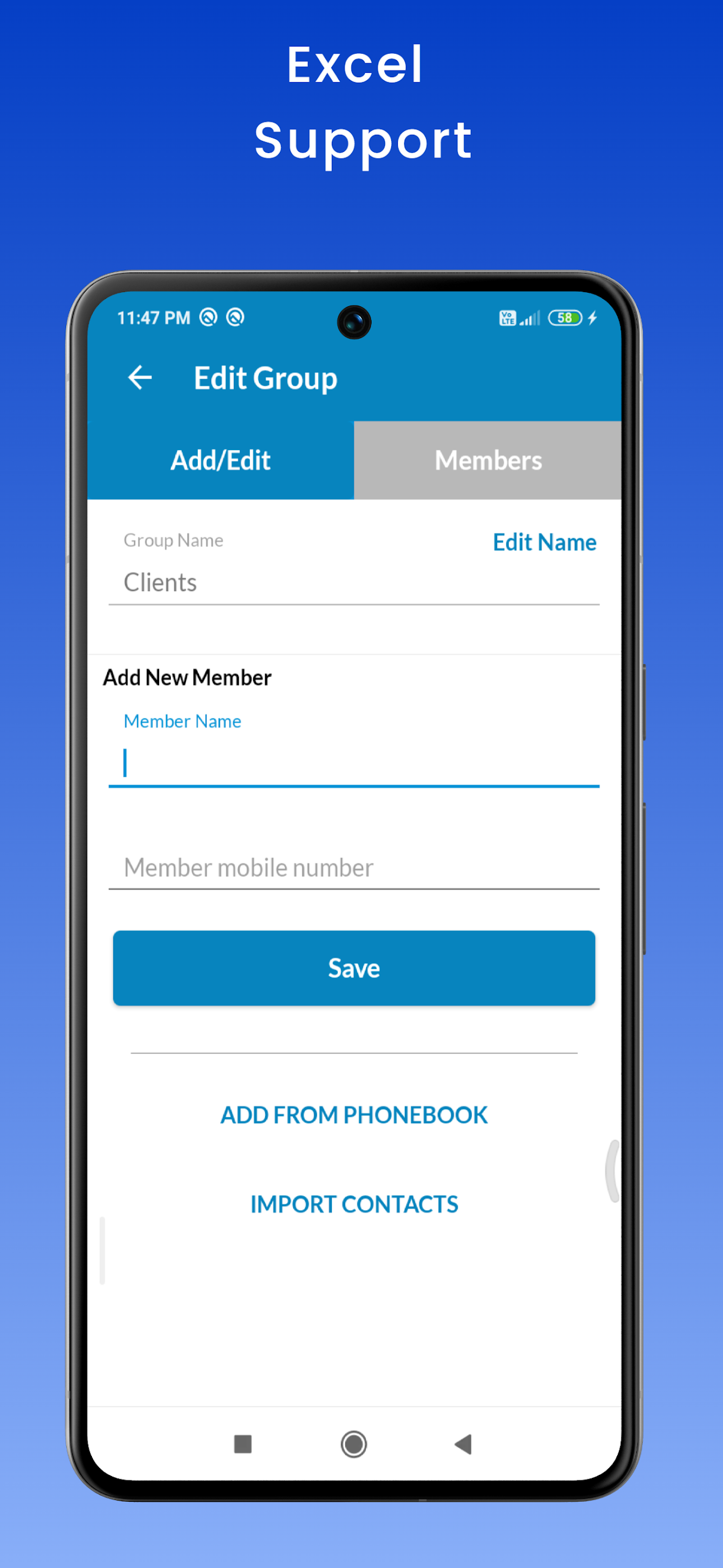 ● Users have the ability to back up their groups into an Excel file and restore them on another device if they switch phones.