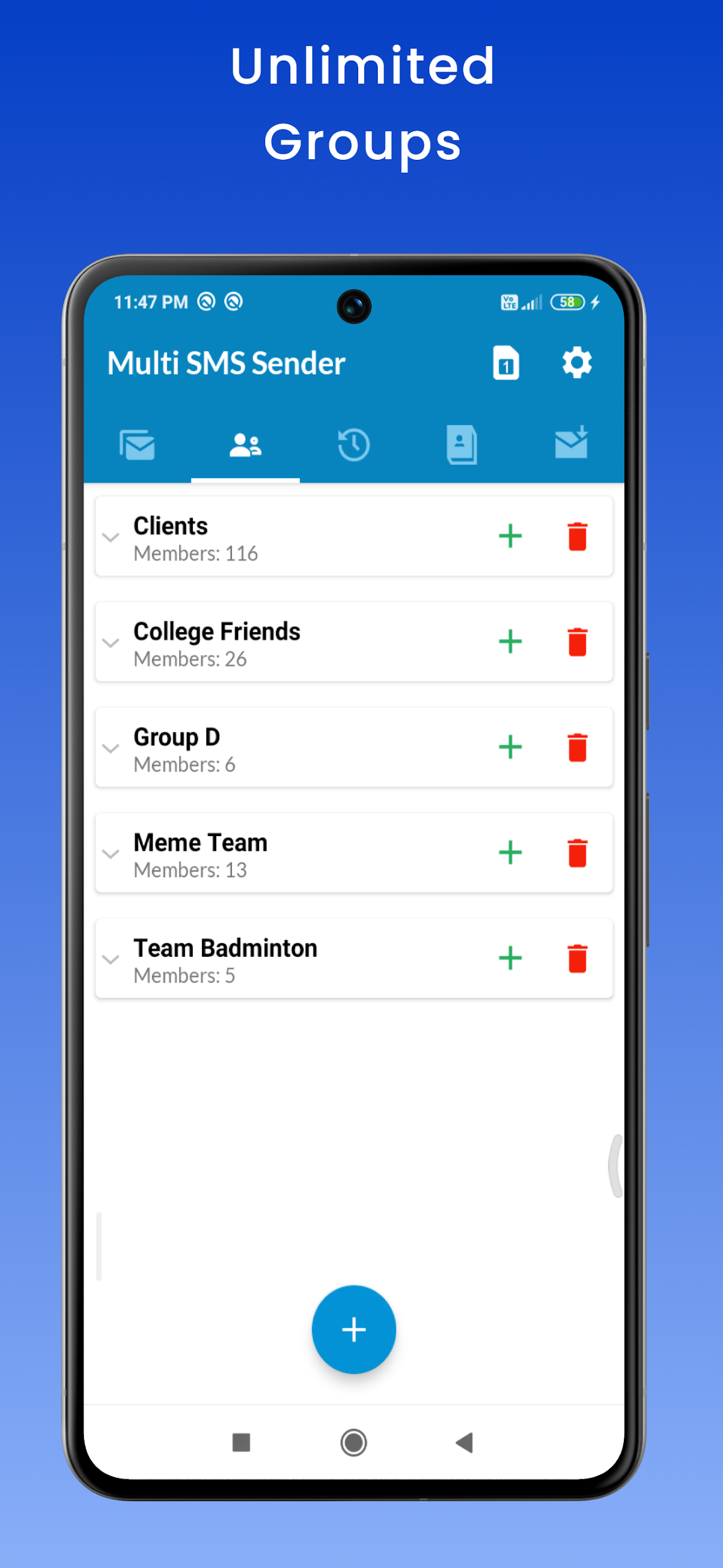 ● Send messages without needing to save recipient numbers to your contact list; simply create groups instead.