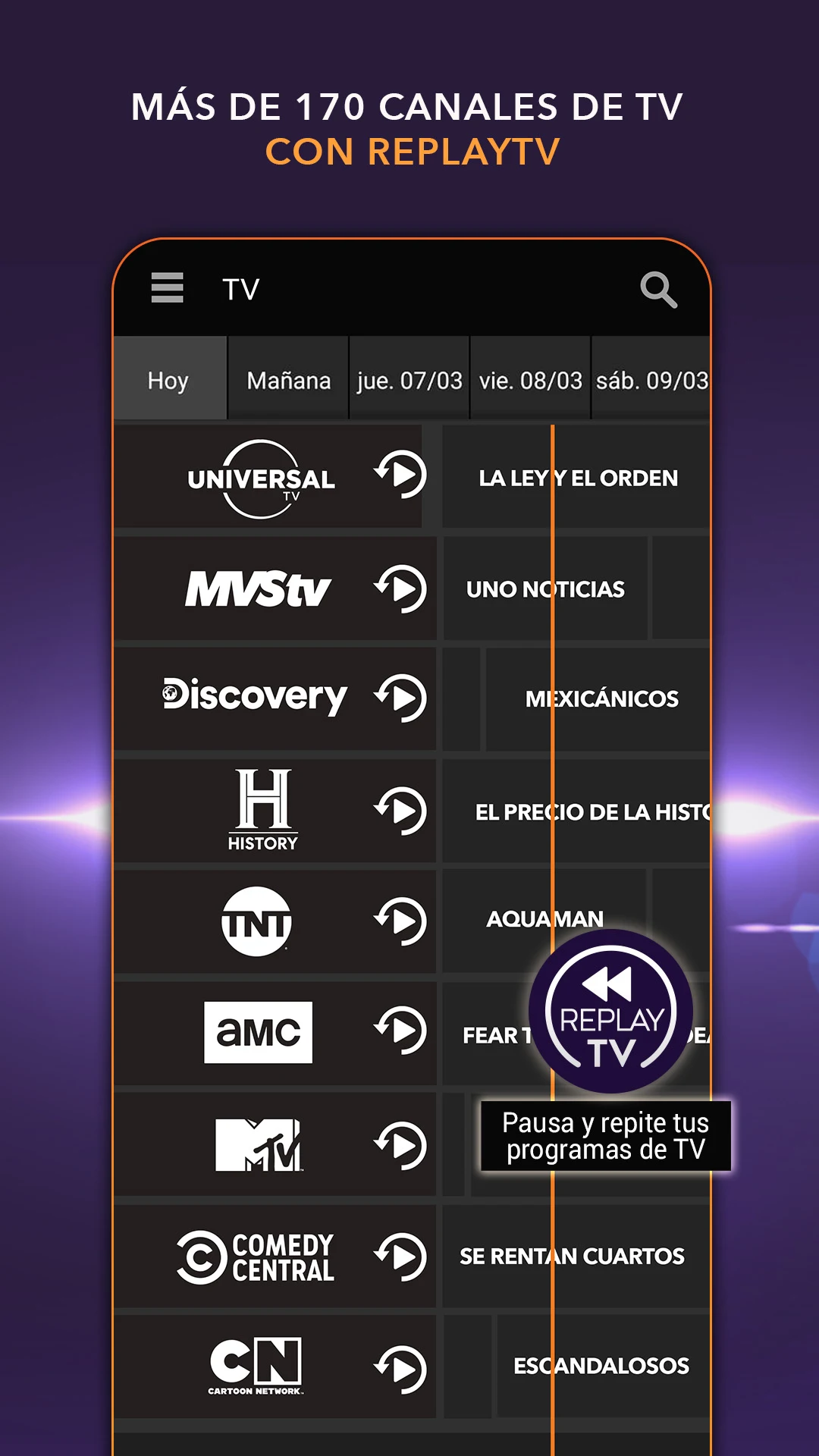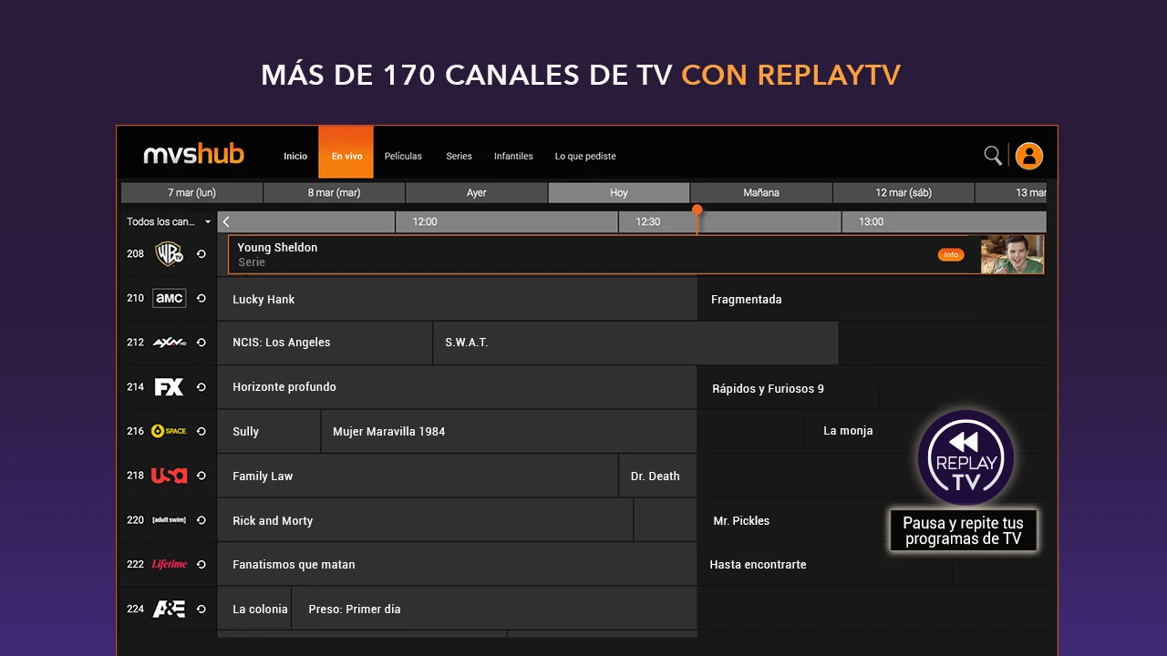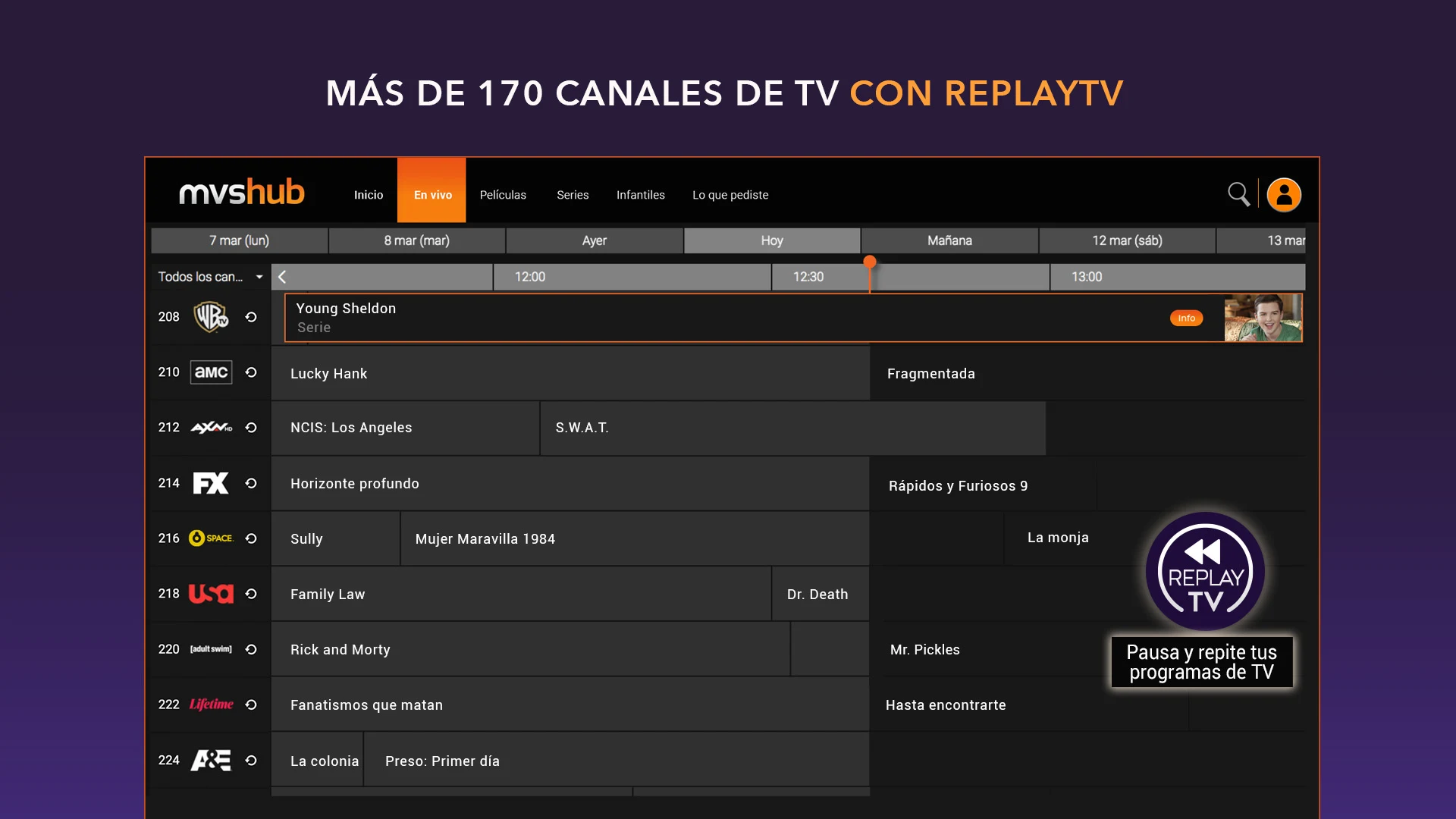 At mvshub, you have your streaming platforms and TV channels with ReplayTV all in one place and with great discounts. Save up to 50% on packages or choose a la carte the platforms you like the most. Enjoy over 150 TV channels with ReplayTV, so you can watch your shows as many times as you want up to 7 days after they aired and on multiple devices at the same time. Additionally, you have a single sign-in and a single payment for all your streaming needs, personalized recommendations, and best of all, free TV channels just by registering.