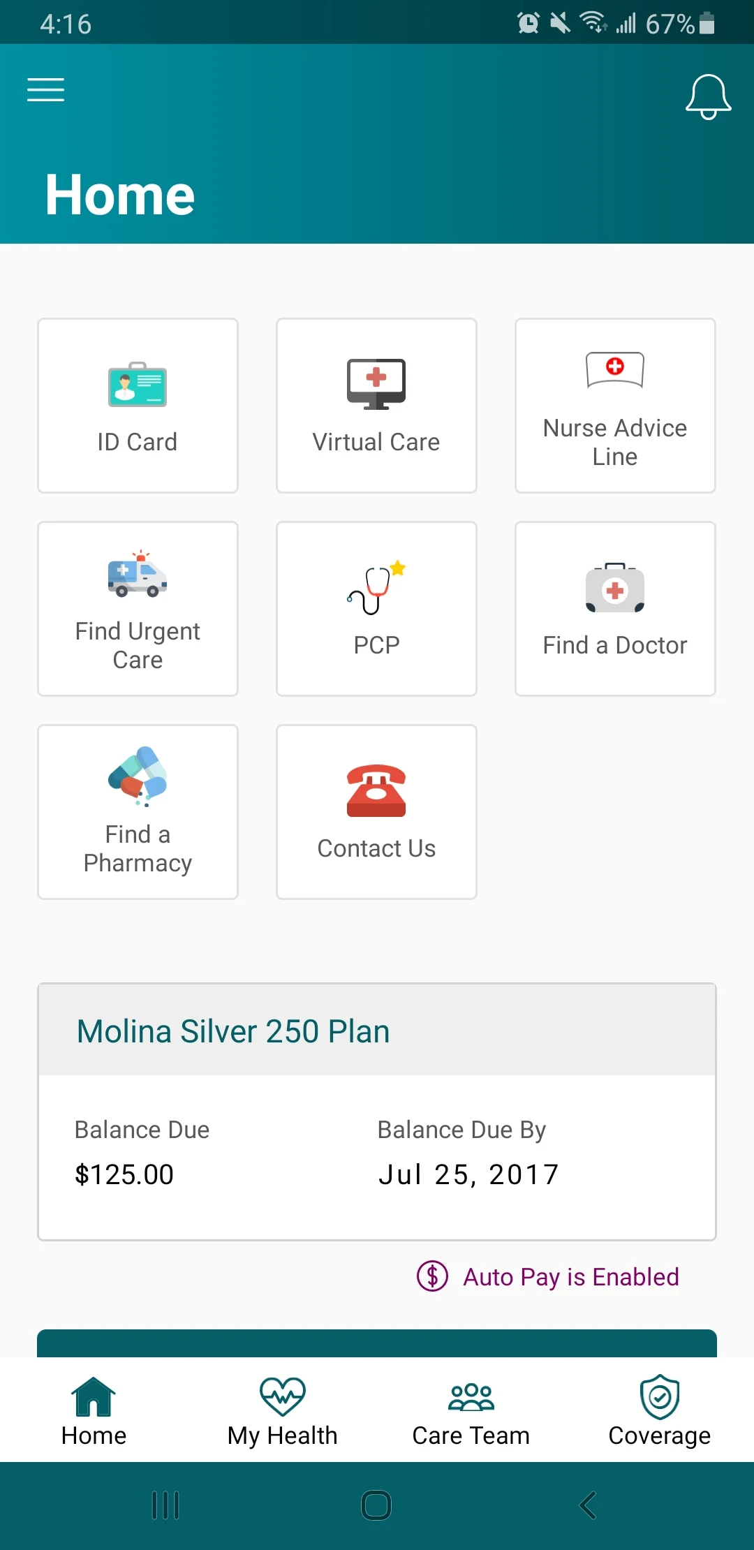 Some features, such as making premium payments, are specific to Marketplace plan members. Your available features within the app are tailored to your specific Molina health plan. If a function seems unavailable, it may not be part of your particular plan's offerings.