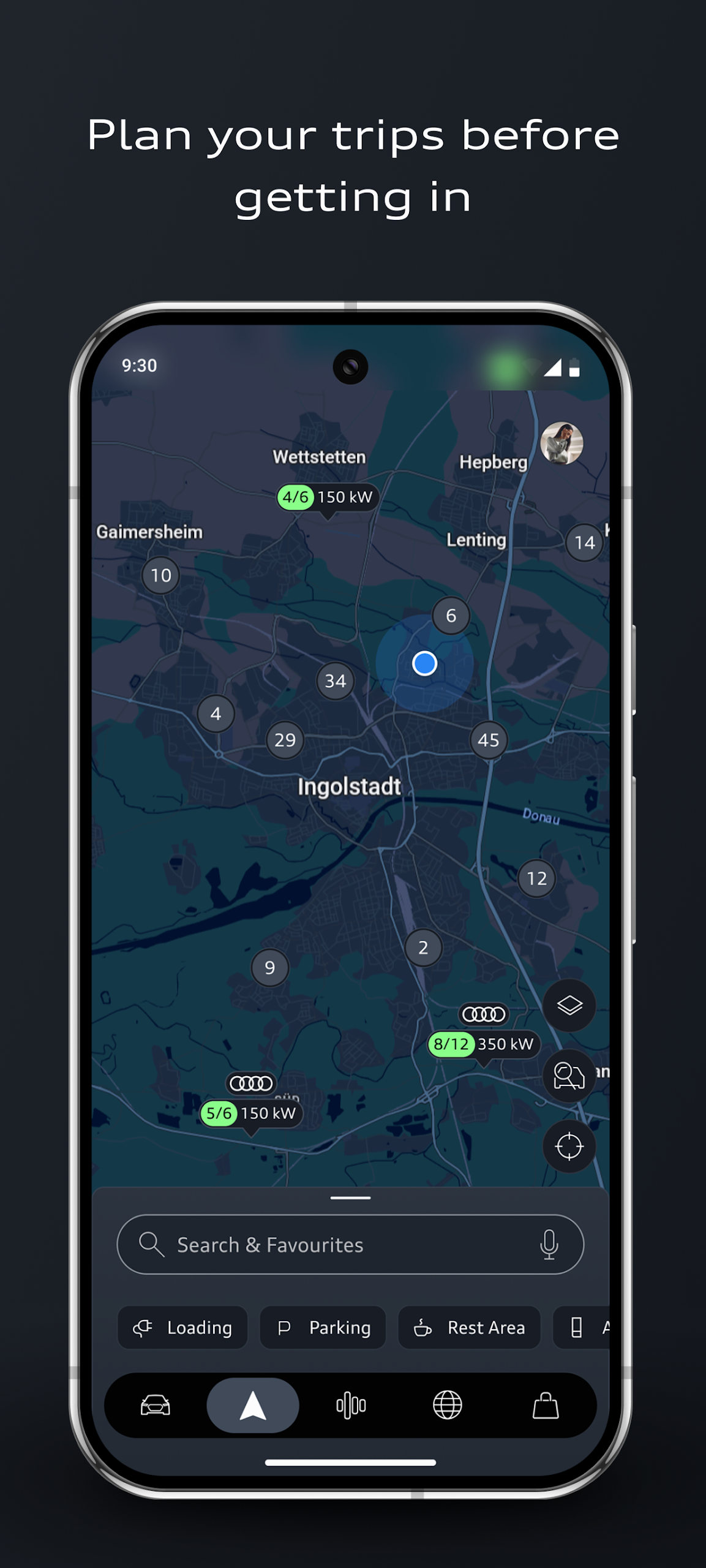 The myAudi app helps connect your Audi with your daily routine and can bring more driving comfort into your life through innovative functions and services. With an active Audi connect trial or subscription on eligible vehicles, you can access your vehicle's real-time information and help keep abreast of your vehicle's status, fuel level, estimated driving range, and more. Use the app to conveniently plan trips and send routes and destinations directly to your vehicle. Even climate control, as well as locking and unlocking your vehicle doors, can be operated via the app. (Depending on the model and the equipment packages of your Audi, availability of features and services may vary.)
