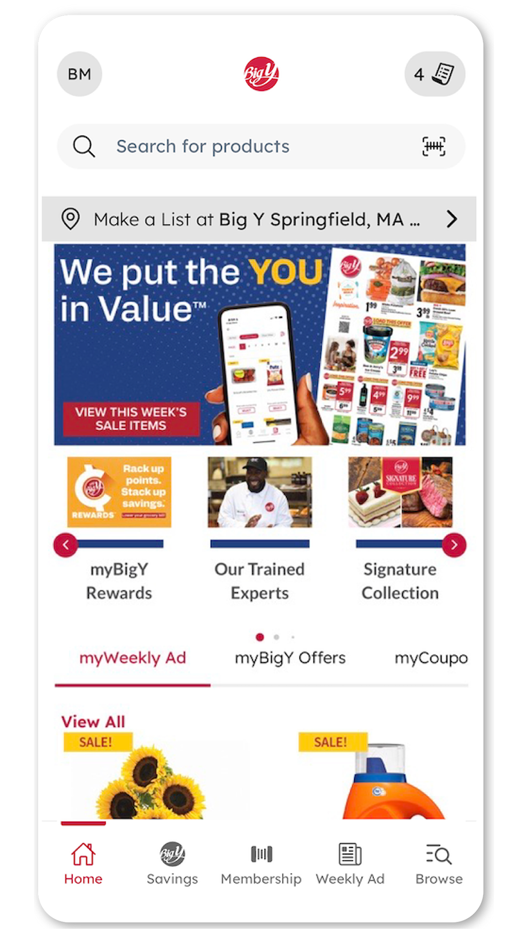 A tailored grocery shopping experience that suits your preferences. Utilize your myBigY account to discover products based on your past purchases and suggestions from the weekly advertisement. Look up items and compile a shopping list for your preferred store. Effortlessly add myBigY Rewards, Offers, and digital coupons. Explore recipes and discover ideal meal options.