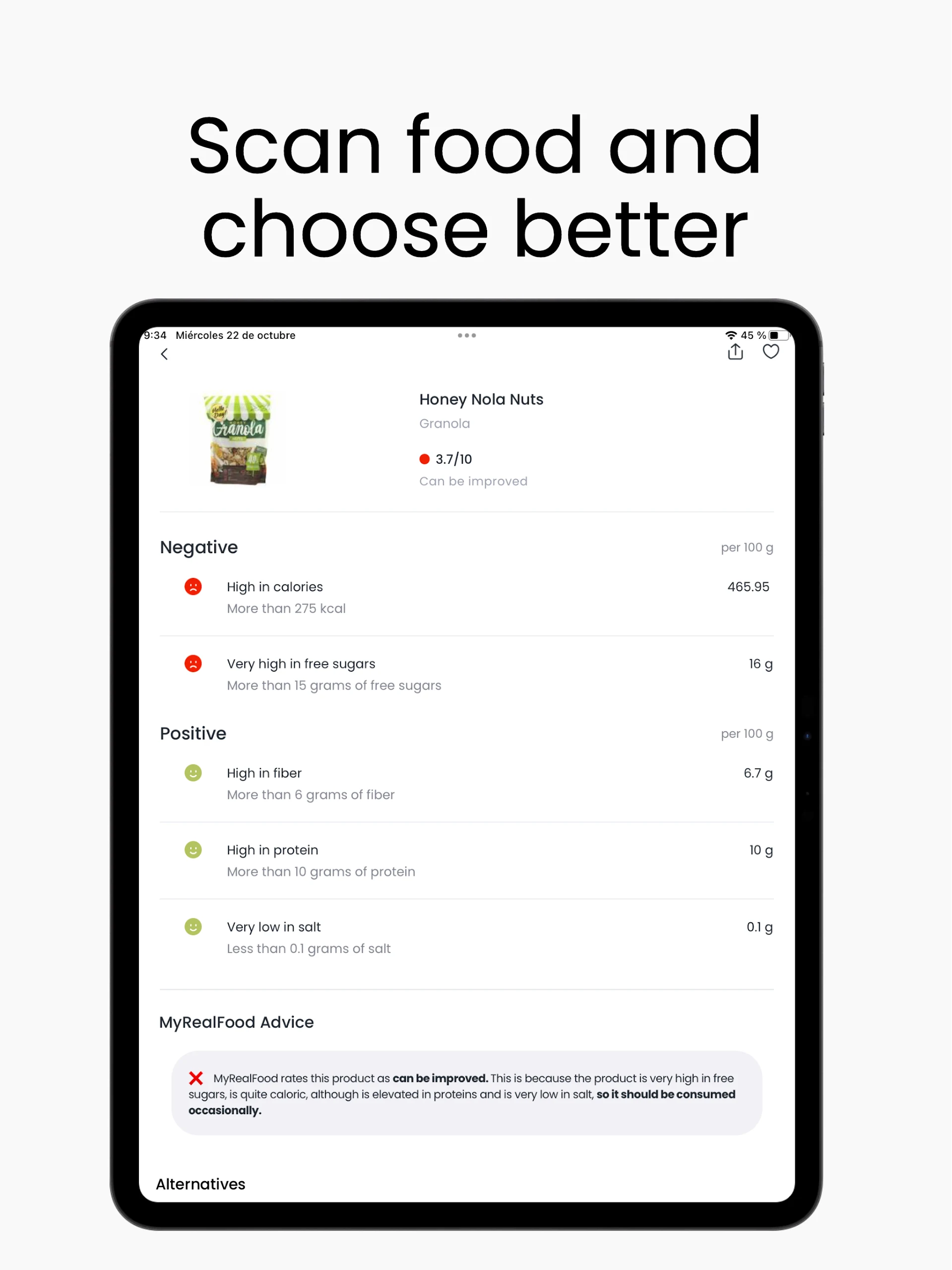 When you scan a product you will be able to see recommendations for healthier alternatives to the products you consume