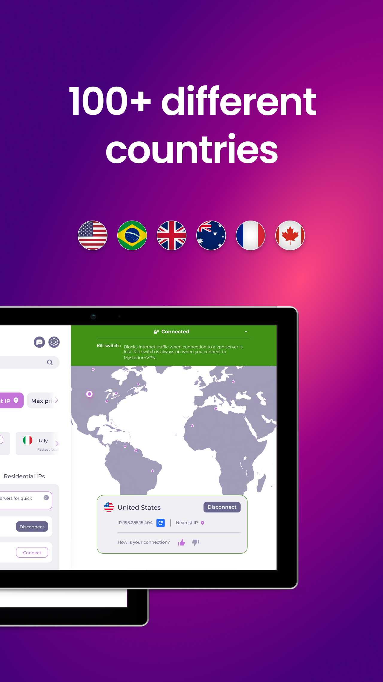 Maintain your online freedom and explore the internet without restrictions. Mysterium VPN is an effective, private, and secure application that offers a vast selection of residential IPs.