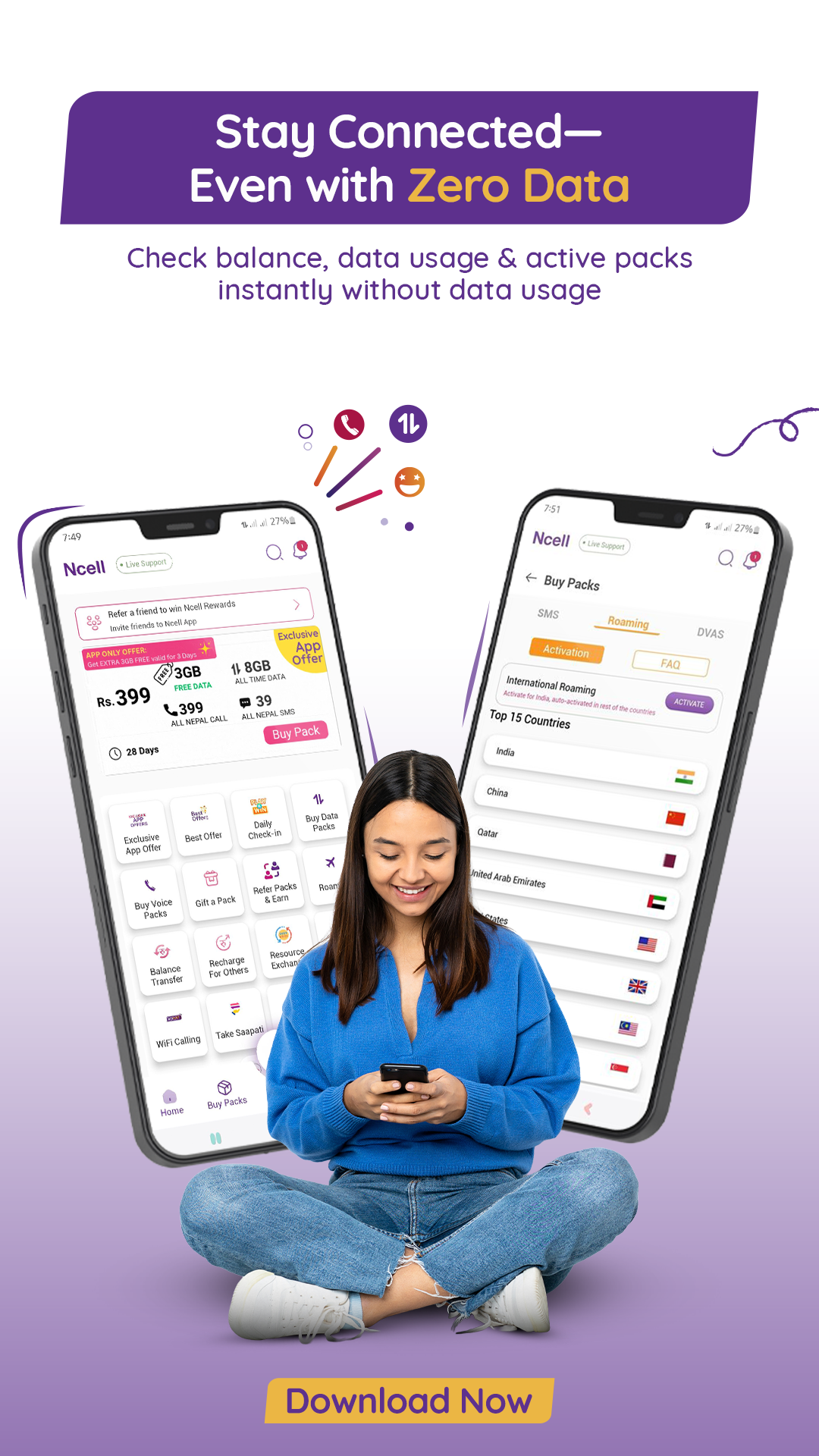 - Usage within the Ncell network is cost-free, while data charges are applicable outside Nepal or on other networks. Additional data charges will be incurred when using the Ncell Store Locator map and redirected pages.
