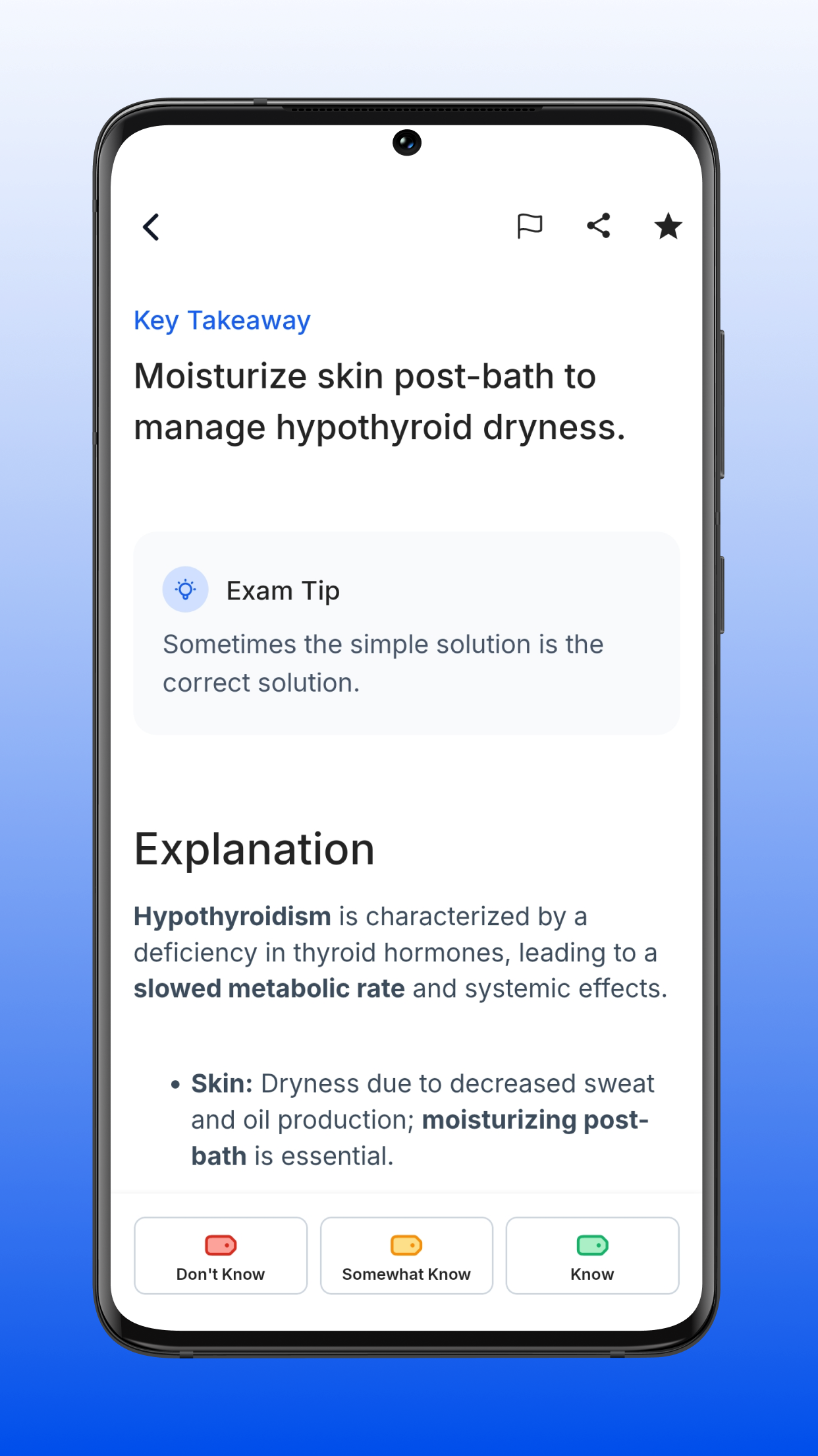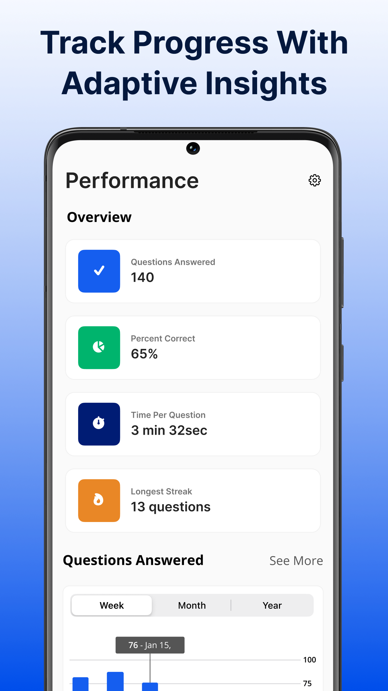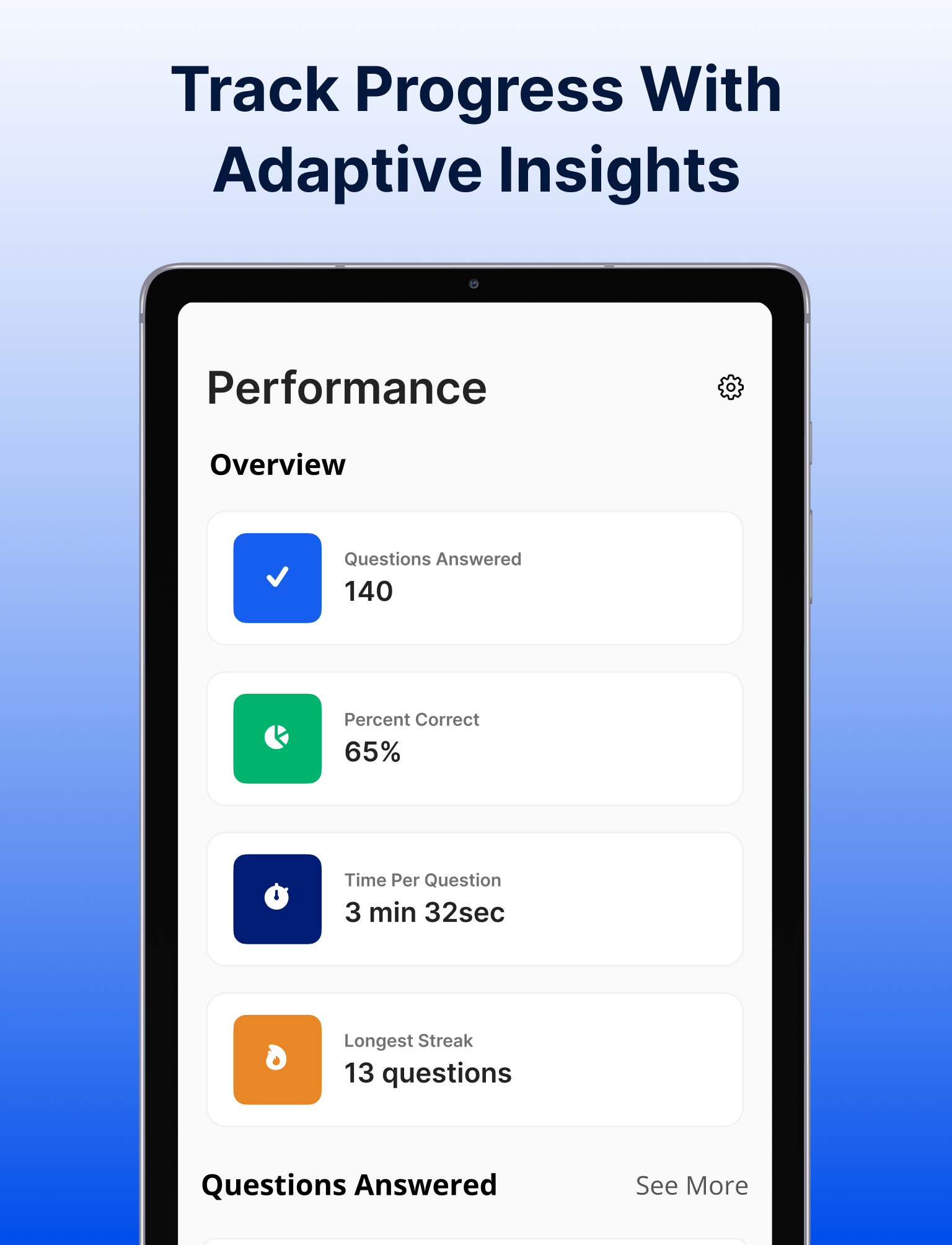 We use an adaptive learning engine in the Mastery Plan to personalize your study experience. As you answer questions, the app adjusts in real-time, delivering questions based on your performance. Correct answers prompt more challenging questions, while incorrect answers trigger easier ones to help reinforce your foundational knowledge. This approach ensures you're always working at the right level, targeting weak spots and maximizing study efficiency as you prepare for your exam.