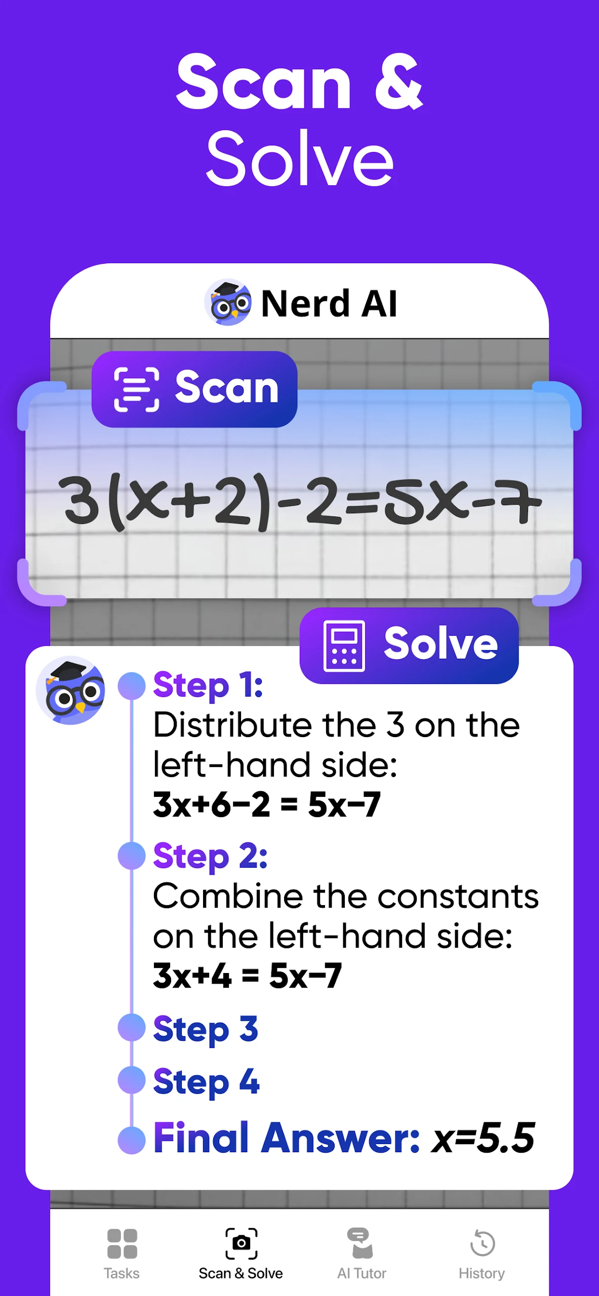 Scan and Solve Problems: Easily scan math problems using your phone's camera and get instant solutions.