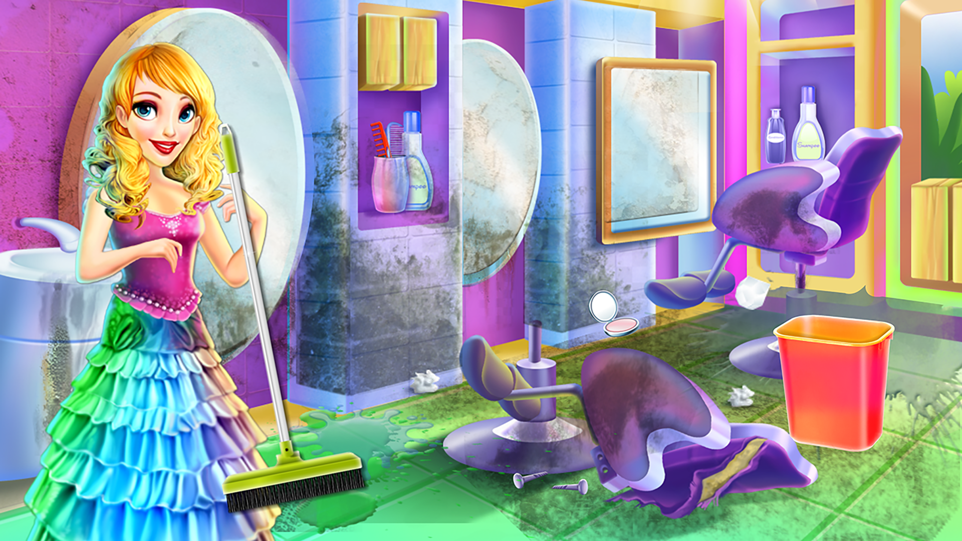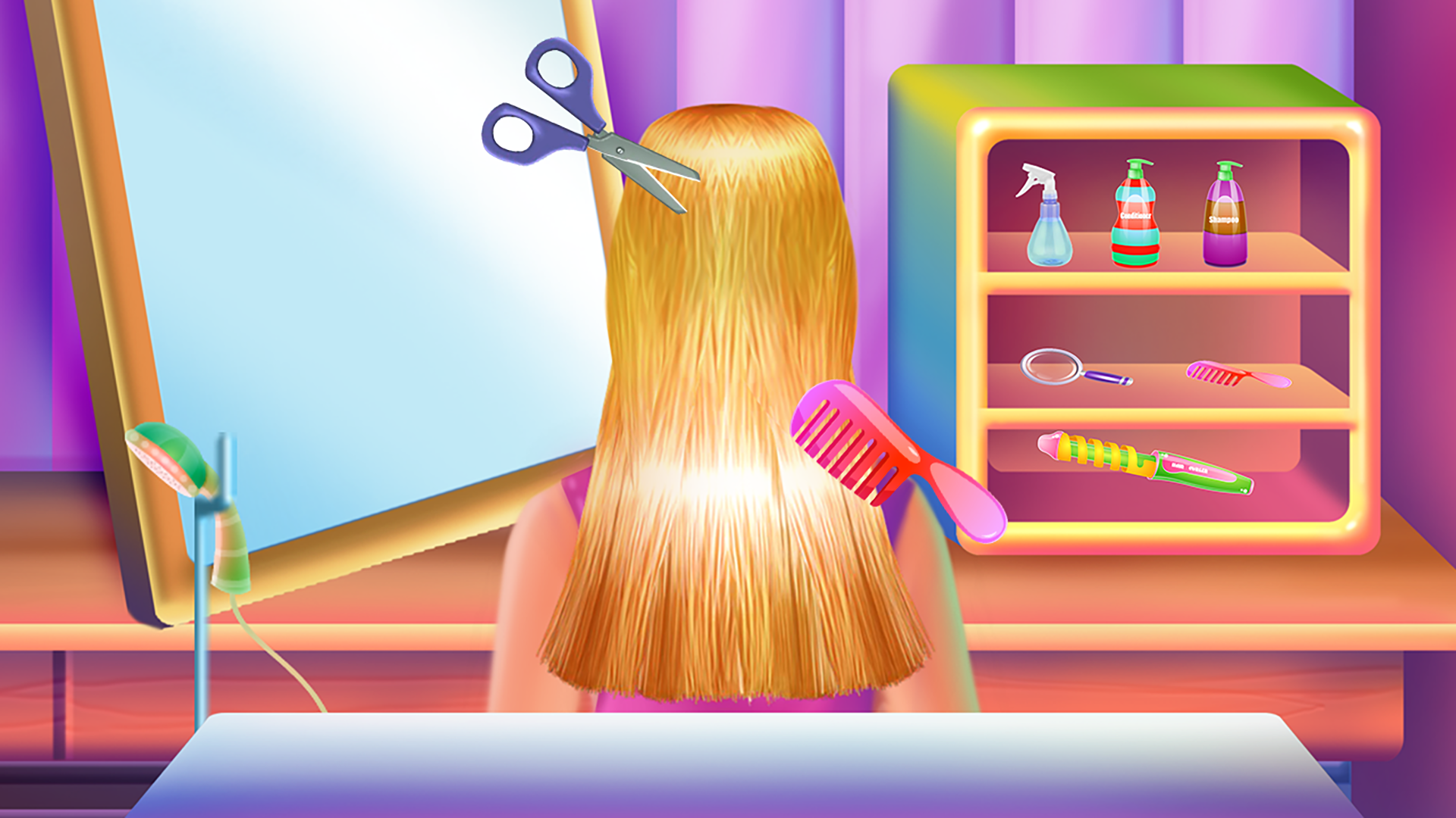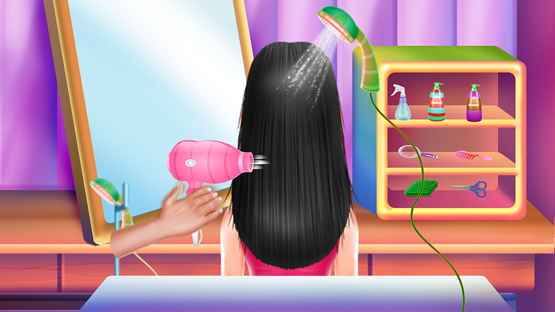 It's now effortless to look stylish even while at home with this makeover game, where you will learn how to create your own fashionable headdress through step-by-step instructions. Immerse yourself in vibrant colors and select countless hairstyles to try out. Whichever style you decide on, make sure to adhere to the outlined steps and guidelines. Start by preparing your workspace; tidy up your home salon to ensure a suitable environment. Make the floors shine, fix any broken items, refurbish the walls, and then proceed to the hairstyling stage. Let’s get creative with some wild looks. First, spray the hair to keep it smooth and tangle-free, then trim any stray parts. Wash the hair and apply moisturizer. If you're looking to change the hair color, use a special dye for that purpose. The hair’s texture can also be transformed. Utilize professional tools to achieve your desired look, whether it’s curls, sleek straight hair, or soft waves. When it comes time to wash the hair, apply the specialized shampoo and massage it in until it lathers completely. Rinse thoroughly, then dry using both a towel and a hairdryer to ensure it's properly done. Follow the hairstyle template provided and experiment with as many styles as you want by replaying the game. The final step involves a fashion challenge where you simply need to dress her up and enhance the overall look with dazzling accessories.